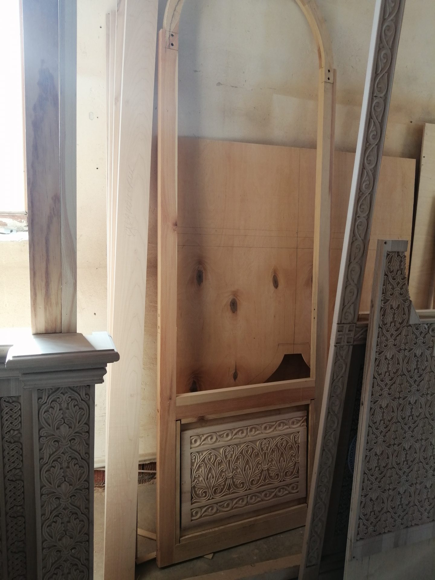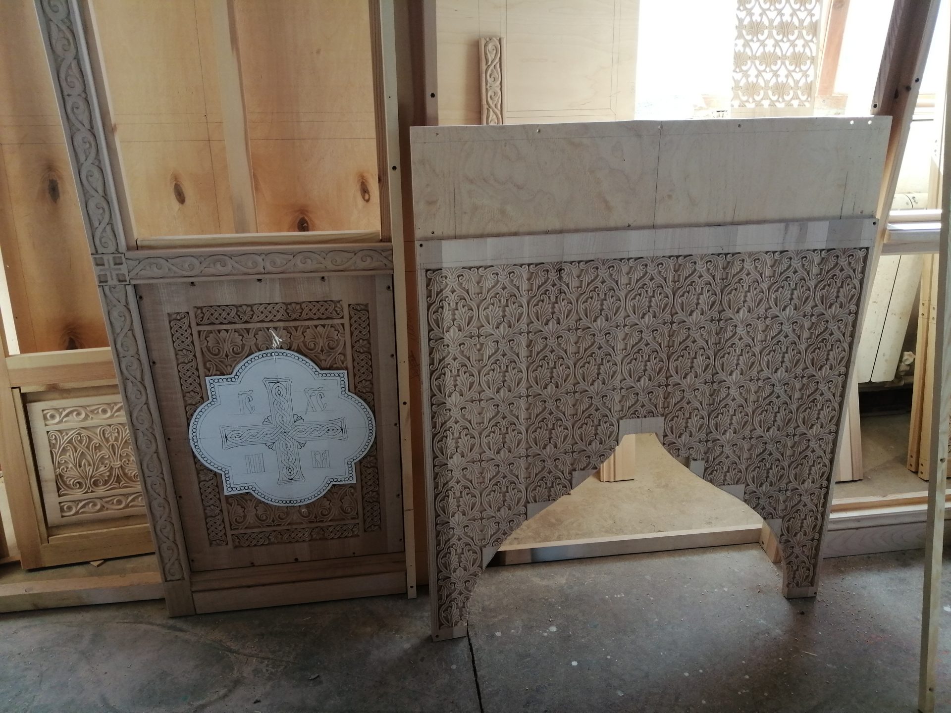 Также изготовлены киоты в стиле иконостаса в алтарь и храм. В дальнейшем планируется сделать все киоты  в едином стиле, который будет гармонично украшать небольшой сельский храм.