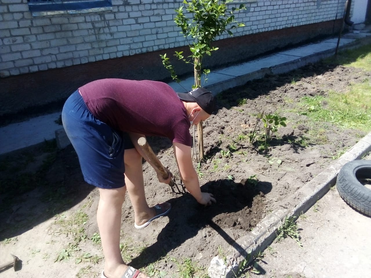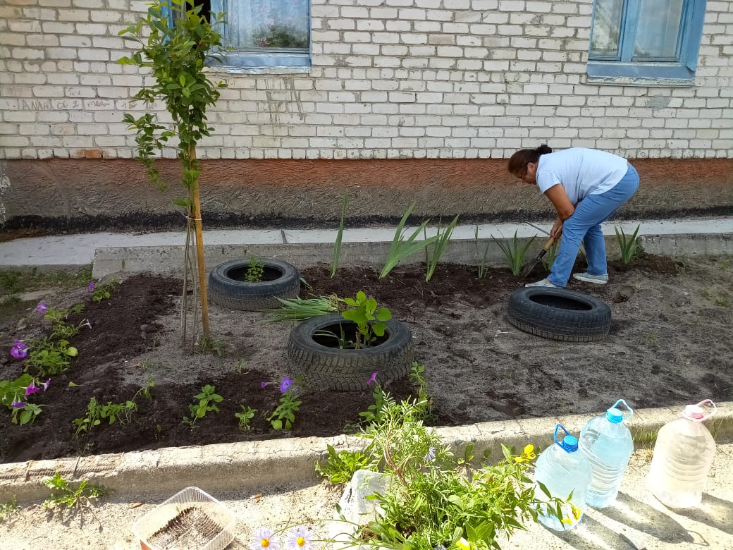 Силами добровольцев были посажены цветы во вскопанную клумбу. Ну и конечно же, приобретены и доставлены необходимые продукты.