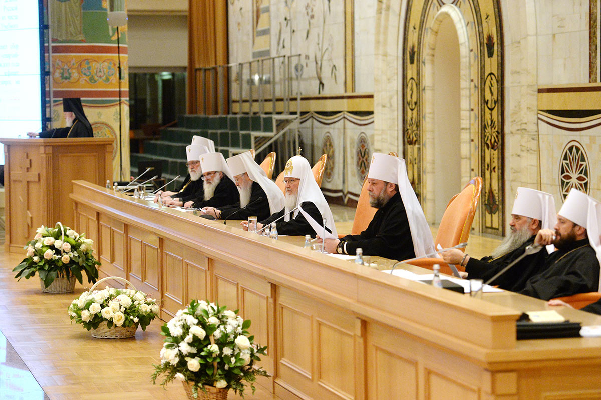 1. Участники Архиерейского Совещания, вознося благодарственную хвалу Пресвятой Троице за милости, явленные Церкви нашей, свидетельствуют о развитии ее жизни и служения во всех странах канонического присутствия Московского Патриархата и в диаспоре. Заслушав доклад Патриарха Московского и всея Руси Кирилла о деятельности Русской Православной Церкви, который лег в основу работы Совещания, его участники выражают благодарность Святейшему Патриарху Кириллу и Священному Синоду за труды, понесенные ими со времени Освященного Архиерейского Собора 2013 года, и поддержку всех их начинаний.