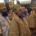 На малом входе Святейший Патриарх Кирилл возвел в сан митрополита епископа Ханты-Мансийского и Сургутского Павла в связи с назначением главой Ханты-Мансийской митрополии и епископа Читинского и Забайкальского Владимира в связи с назначением главой Забайкальской митрополии.