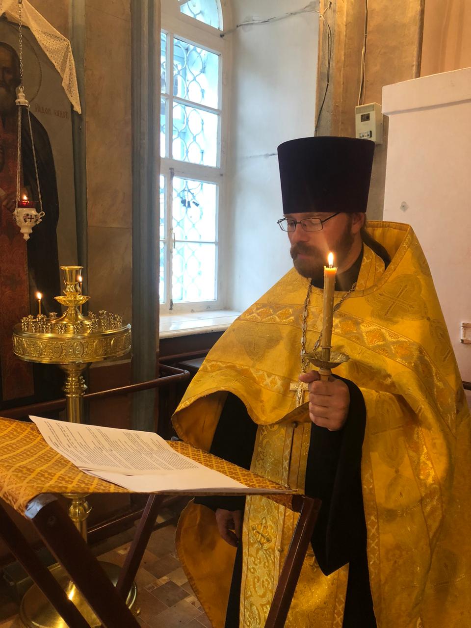 Накануне было отслужено всенощное бдение в приделе святителя Николая. Богослужение совершил иерей Тихон Худяков, настоятель храма Преображения Господня.