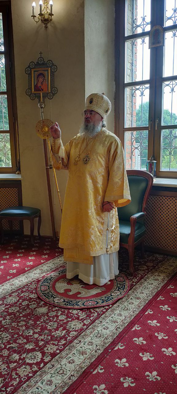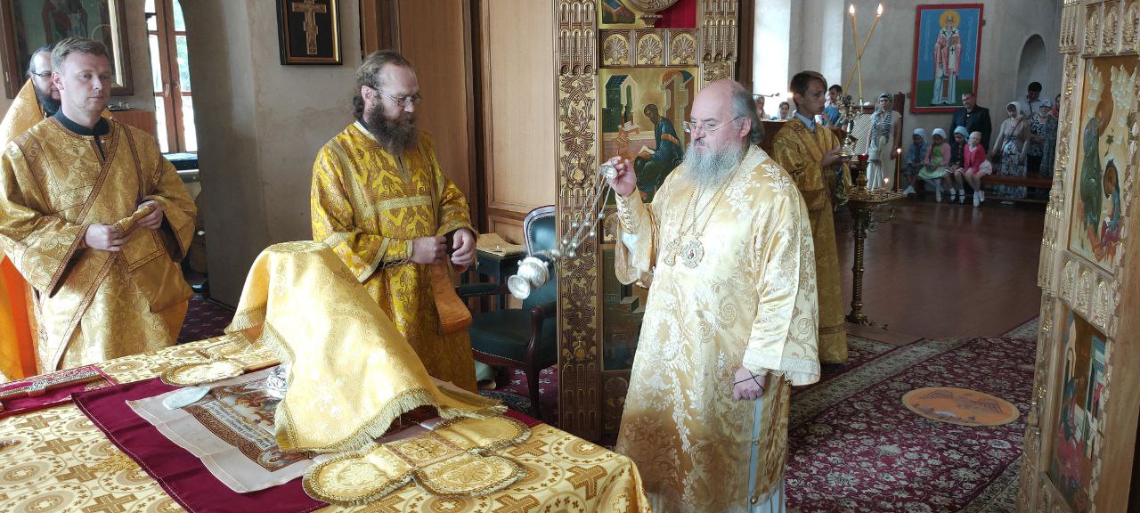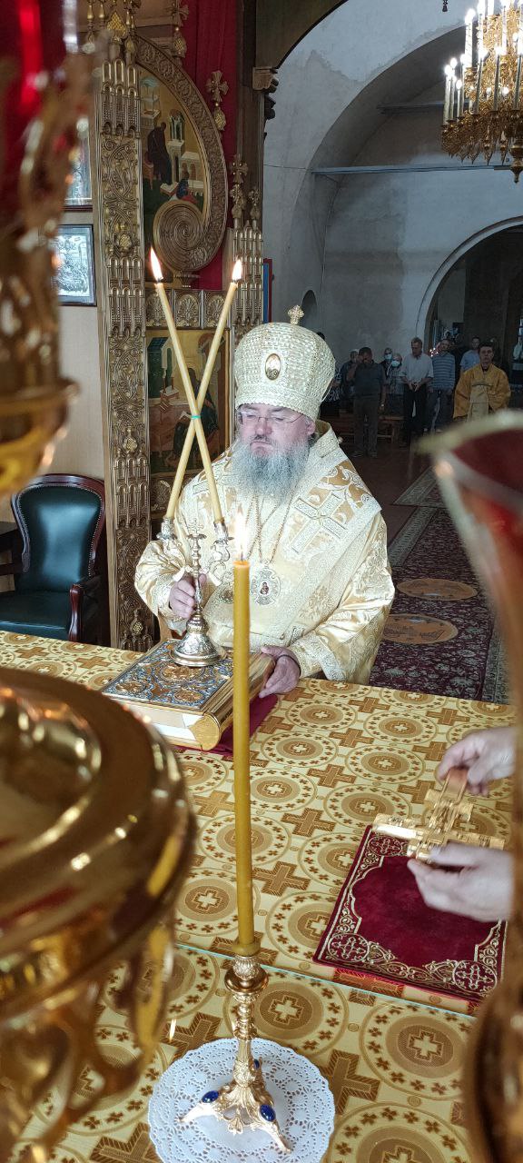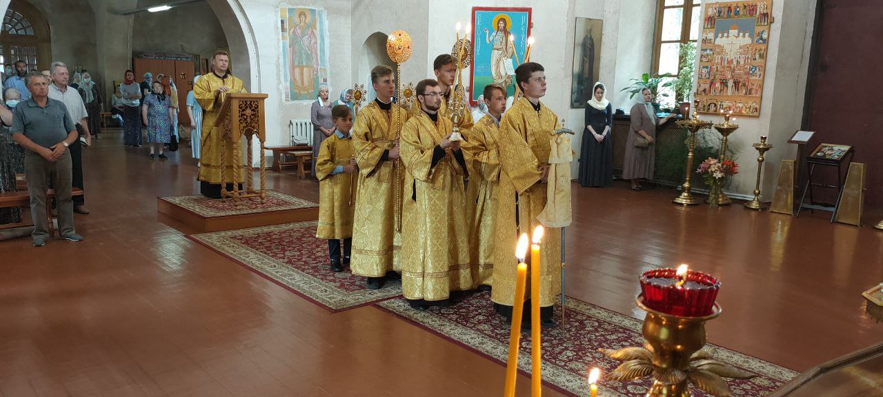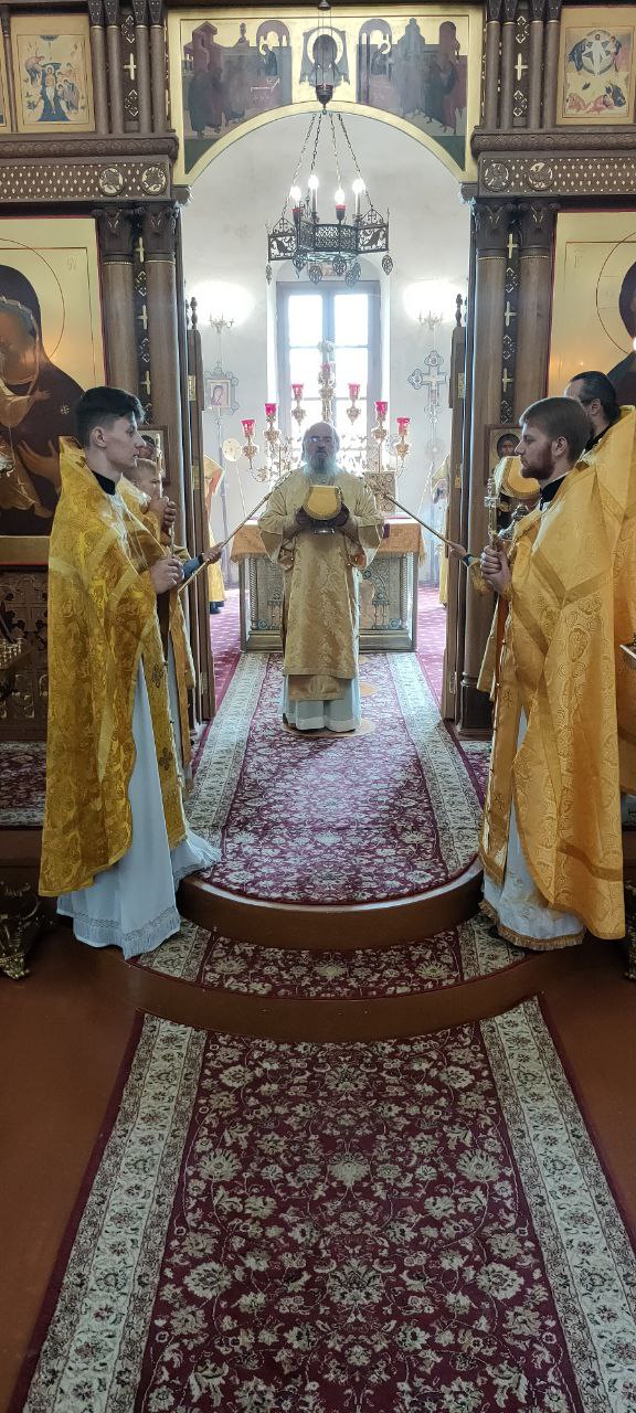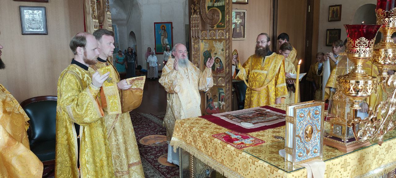 Архипастырю сослужили: иеромонах Паисий (Курмаз) – настоятель храма, протоиерей Антоний Хатунцев, иерей Елисей Тимофеев, иерей Филипп Лисенков, диакон Евгений Ковригин, диакон Дмитрий Лутков и иеродиакон Лука (Старостин).