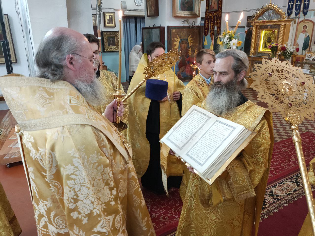 Преосвященному владыке сослужили: настоятель собора, духовник Козельской епархии митрофорный протоиерей Алексий Жиганов, протоиерей Антоний Хатунцев, иерей Алексий Сначев, диакон Евгений Ковригин и диакон Андрей Соколов.