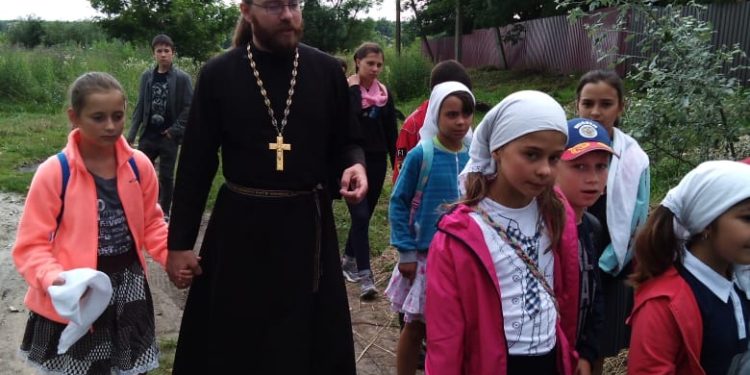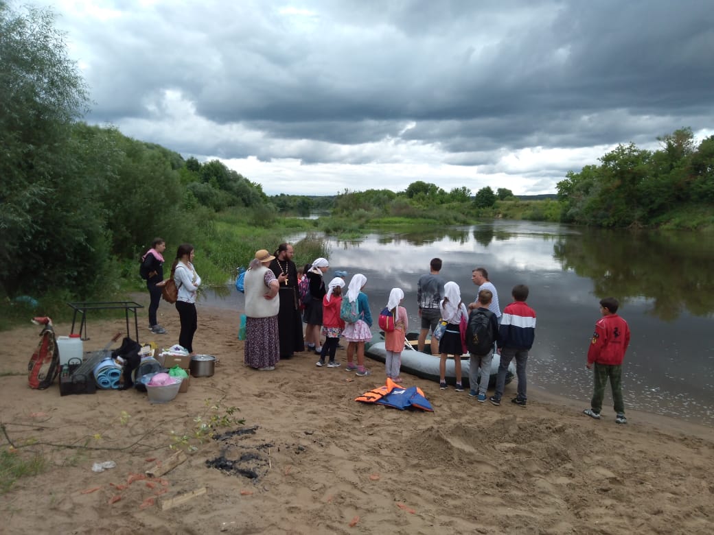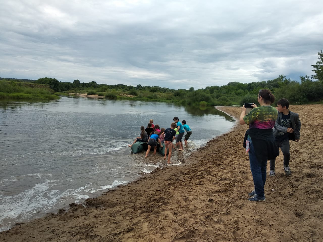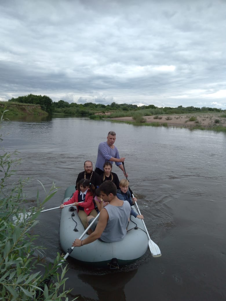 После беседы дети отправились с отцом Тихоном на реку Жиздру, переправились на другой берег, в луга, на лодке. Когда-то там гуляли и дети Константина Романова. Воспитанники Центра лакомились ягодами, играли, купались.