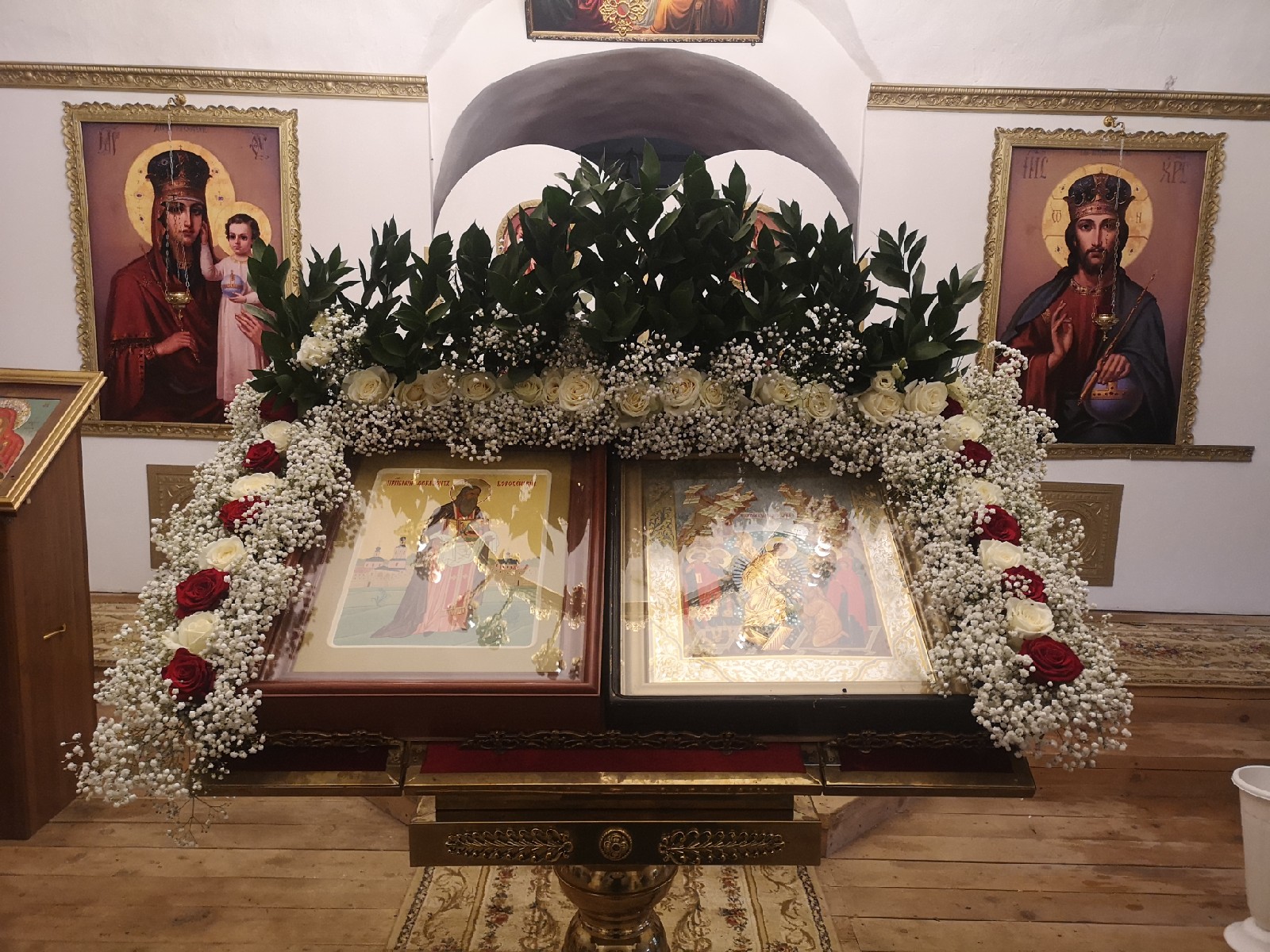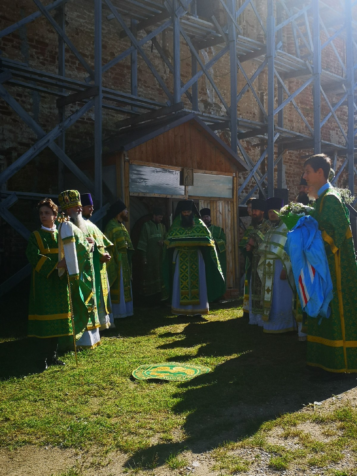После окончании Литургии был совершен крестный ход вокруг храма с молебным пением. По окончании богослужения архипастыри ознакомились с ходом восстановительных работ. Осмотрели храм и прилегающую территорию, посетили музей, поздравили присутствующих богомольцев с торжественным днем.