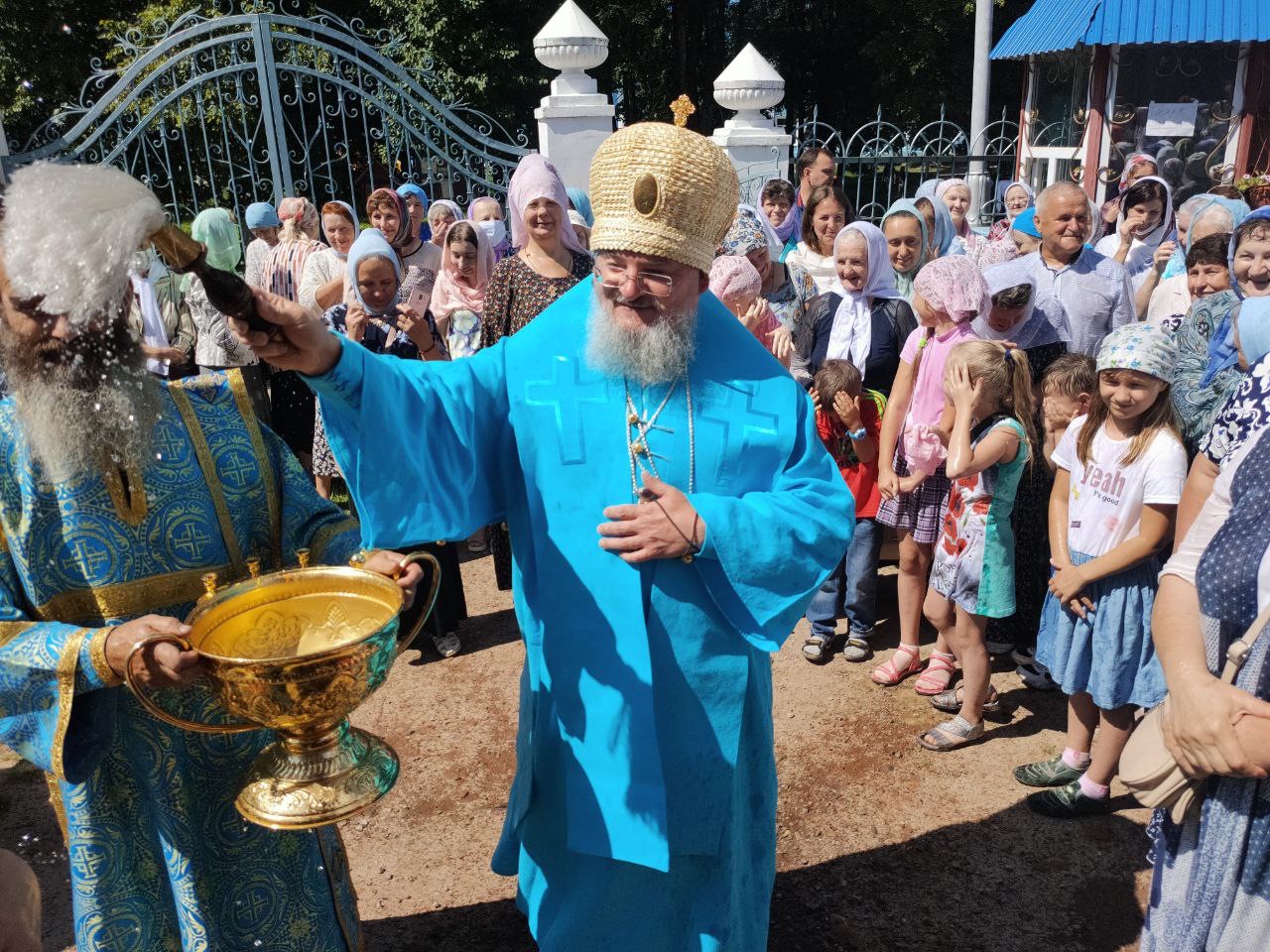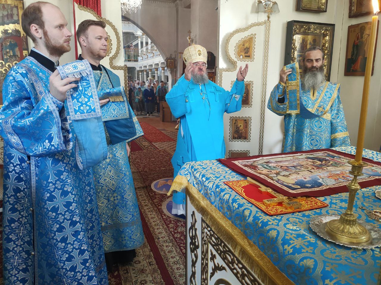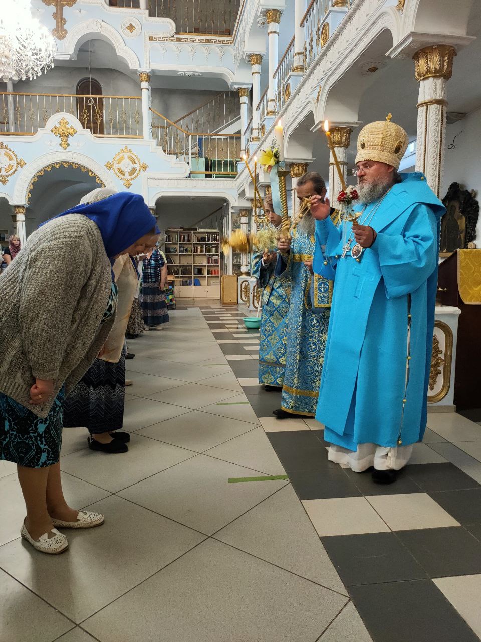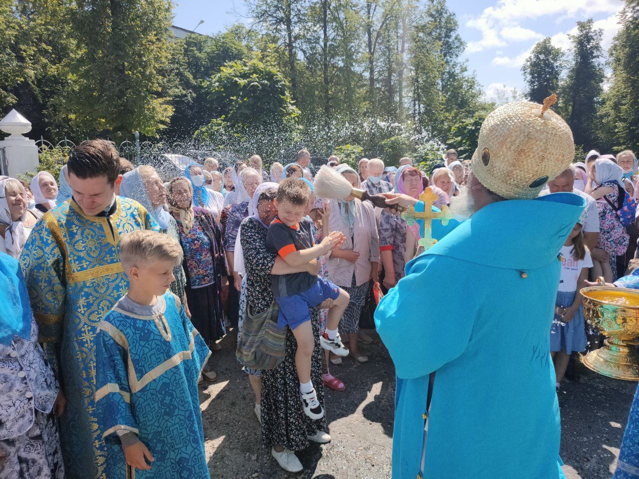 По окончании литургии состоялся праздничный крестный ход, в завершении которого, вознеся молитву Пресвятой Богородице, владыка обратился к богомольцам с проповедью.