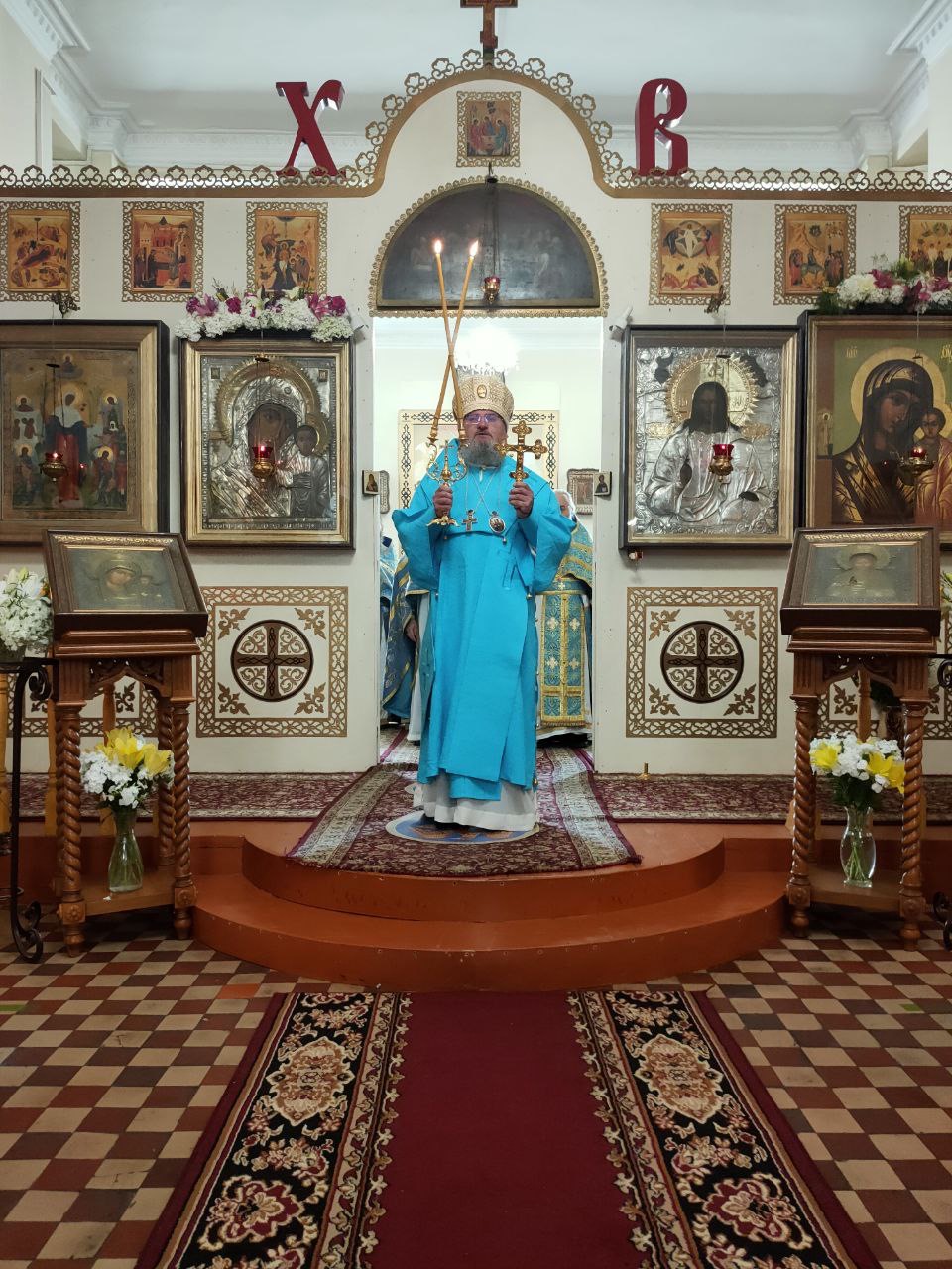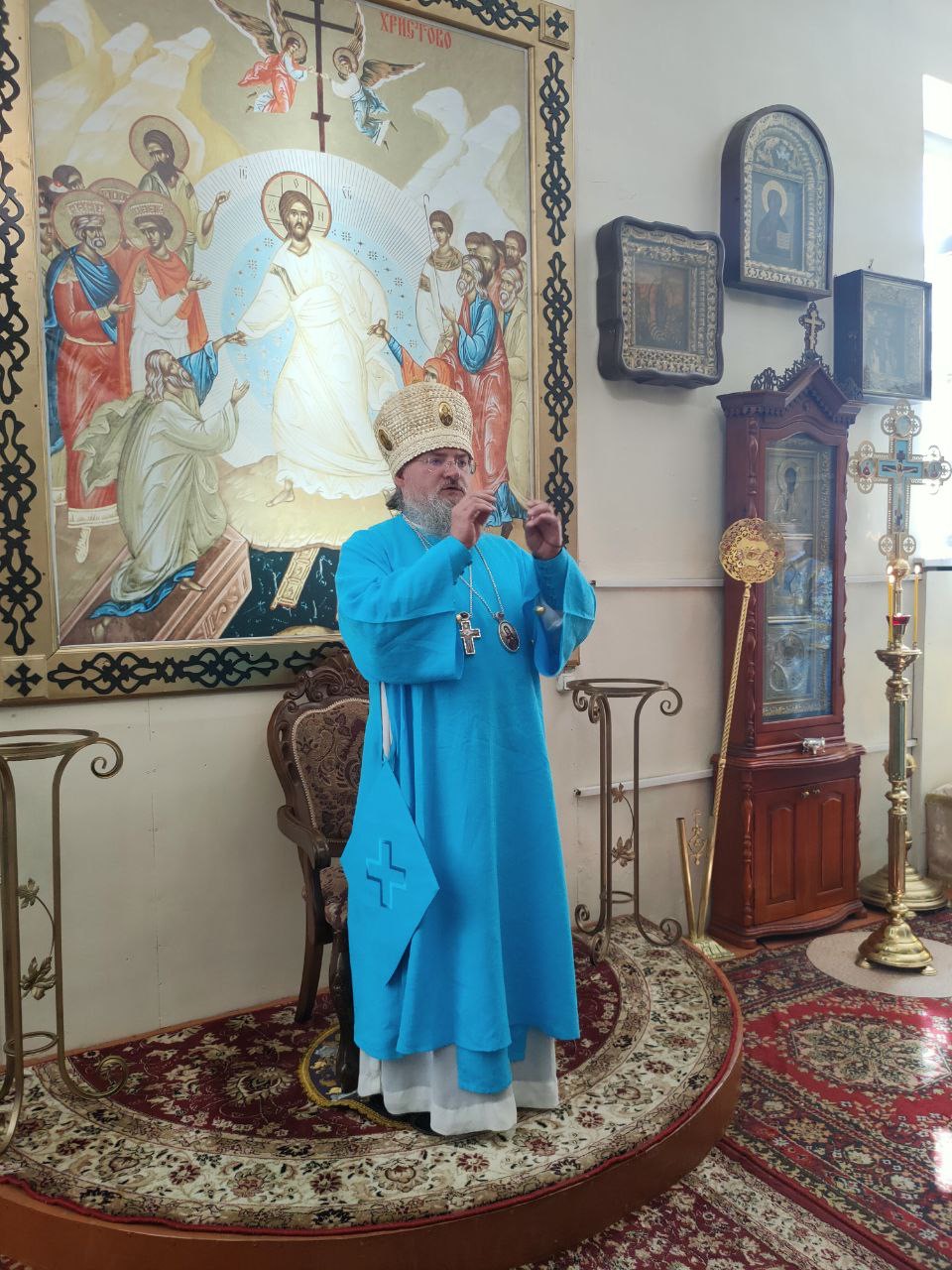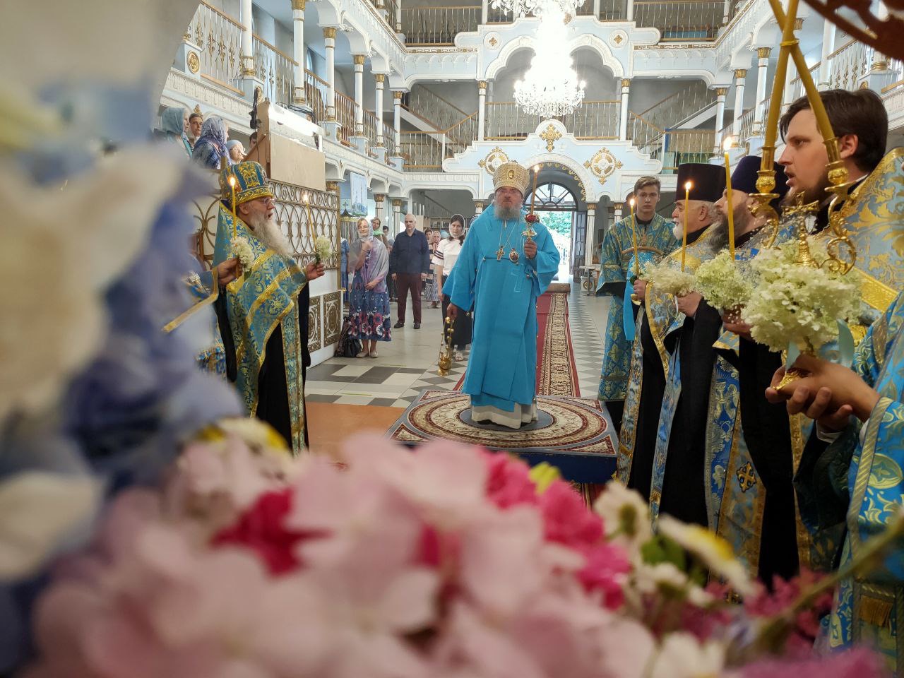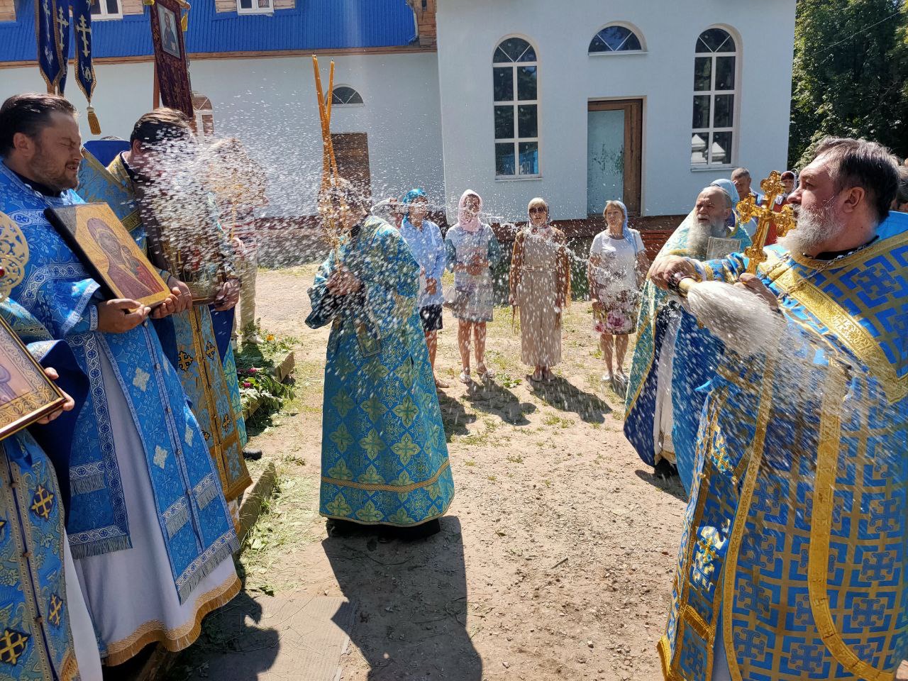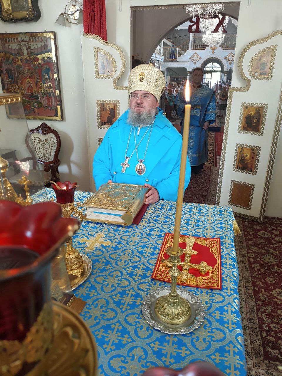 По окончании литургии состоялся праздничный крестный ход, в завершении которого, вознеся молитву Пресвятой Богородице, владыка обратился к богомольцам с проповедью.