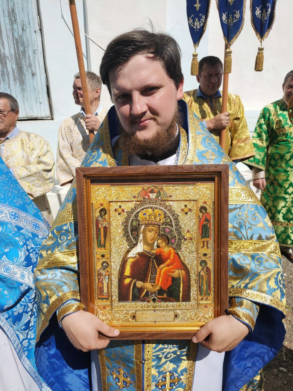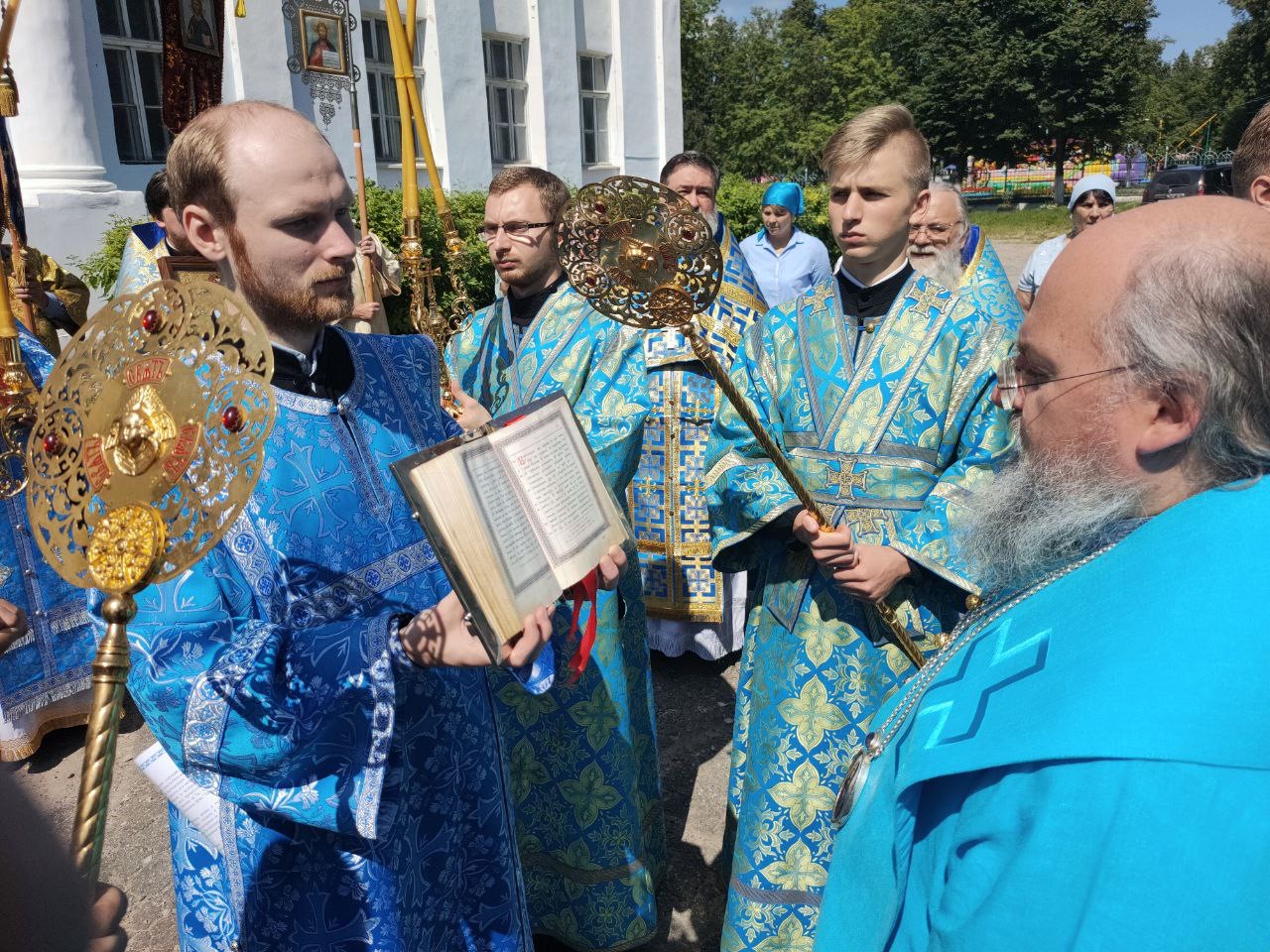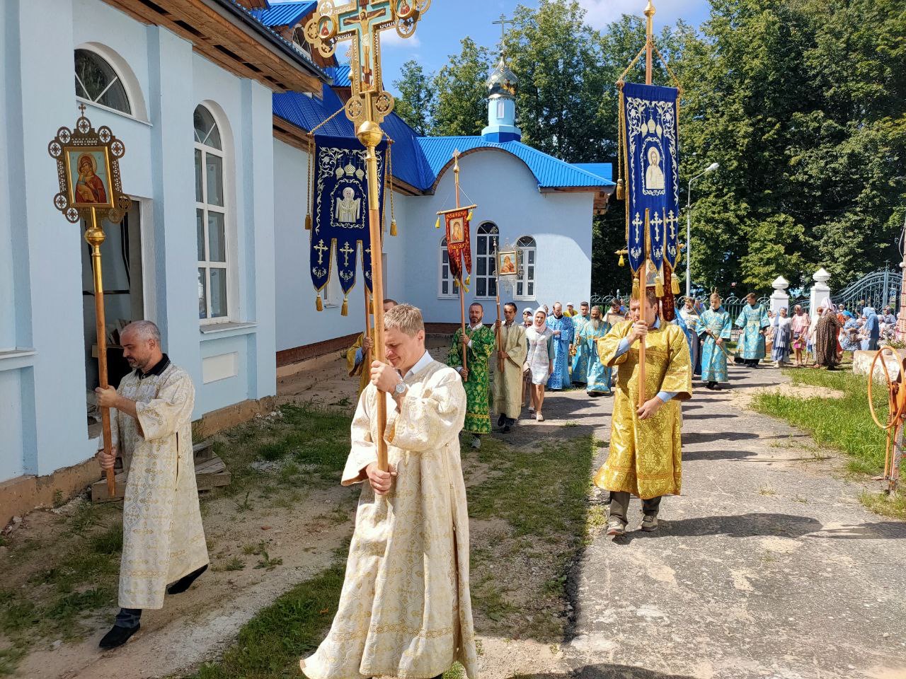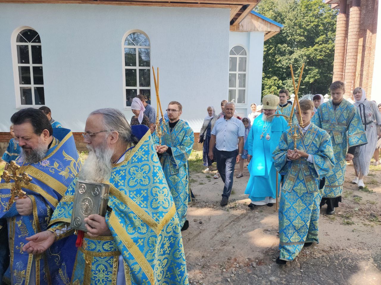 По окончании литургии состоялся праздничный крестный ход, в завершении которого, вознеся молитву Пресвятой Богородице, владыка обратился к богомольцам с проповедью.