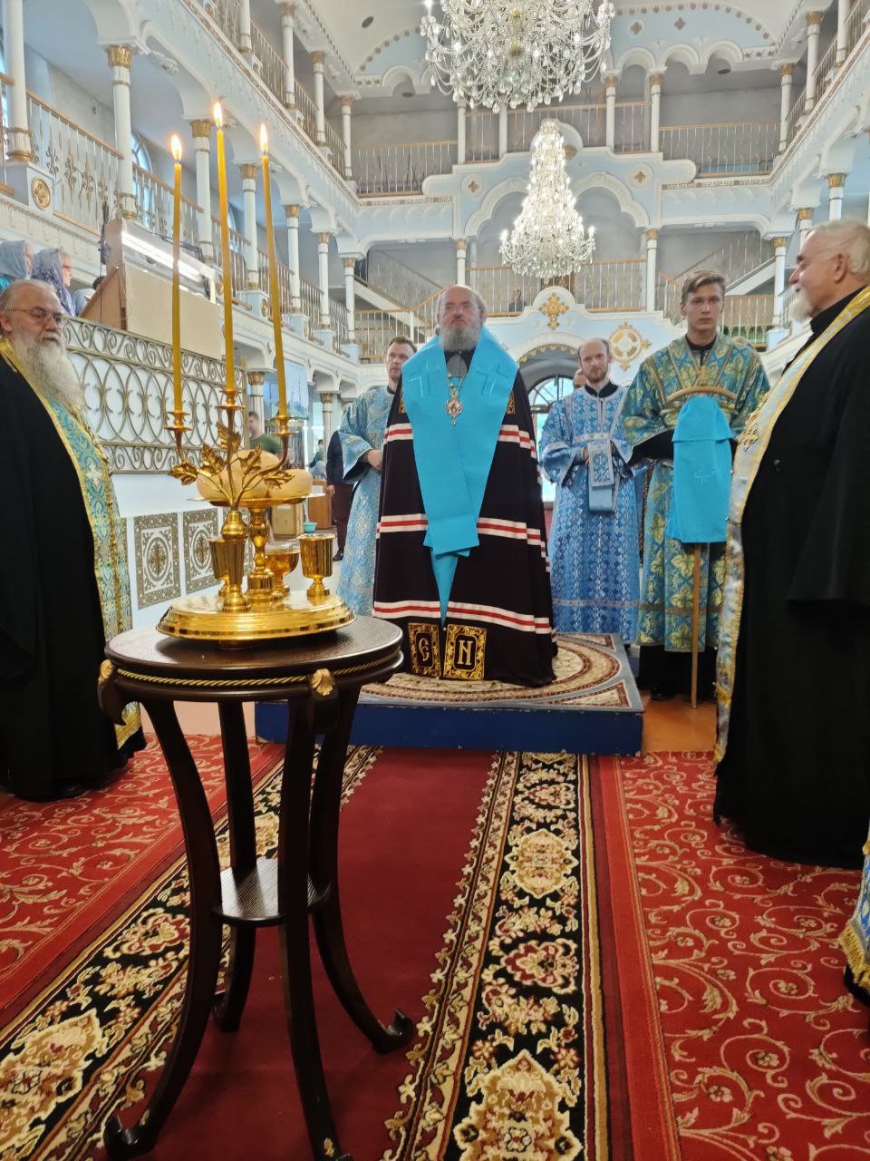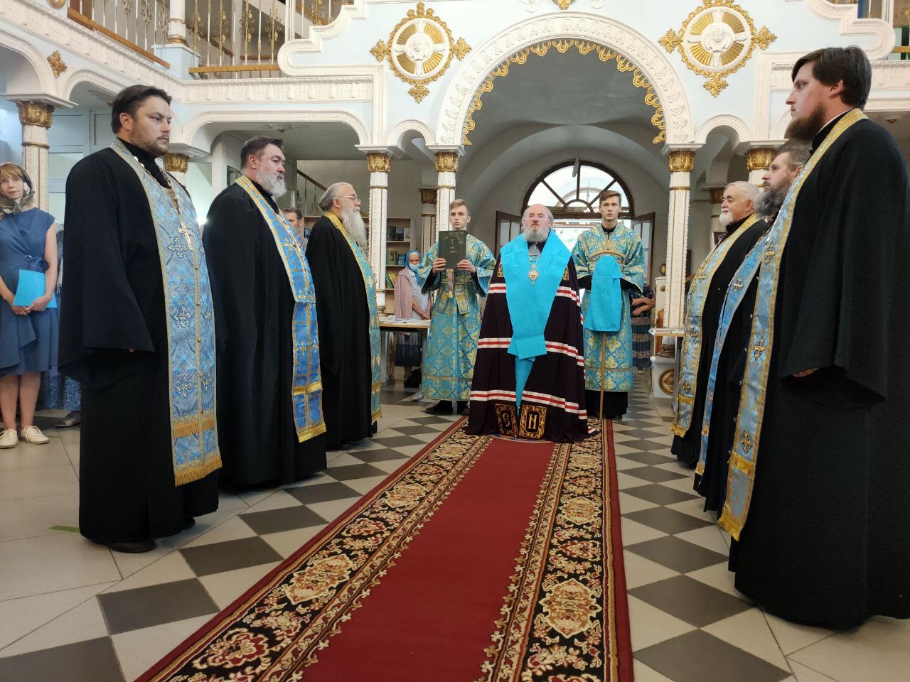 Преосвященному владыке сослужили: настоятель собора, духовник епархии митрофорный протоиерей Алексий Жиганов, протоиерей Василий Биляк – благочинный округа, протоиерей Дмитрий Губаль, протоиерей Михаил Карпенко, иеромонах Василий (Лукашев), протоиерей Антоний Хатунцев, иерей Иоанн Майоров, диакон Евгений Ковригин, диакон Андрей Соколов и иеродиакон Лука (Старостин).