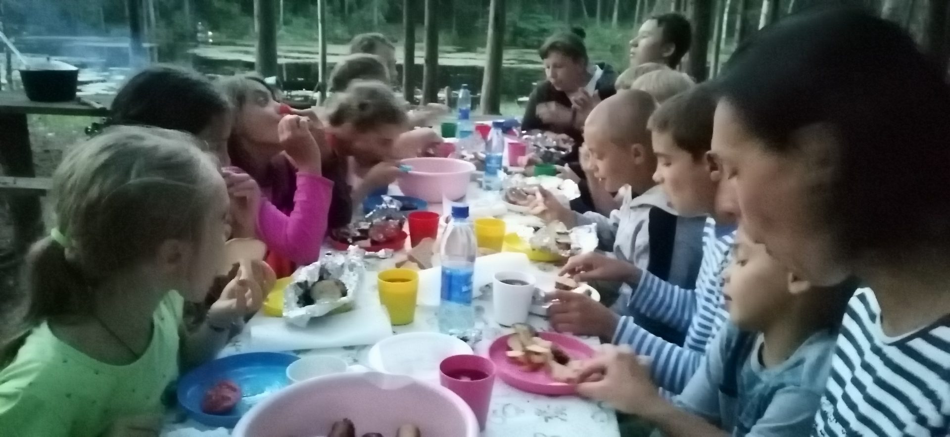 Но дети не только занимались знакомством с царской семьей. Было много интересного-двухдневный поход на озеро Серафима Саровского, с песнями, танцами у костра, с купанием в озере и поиском исчезнувшего древнего племени…