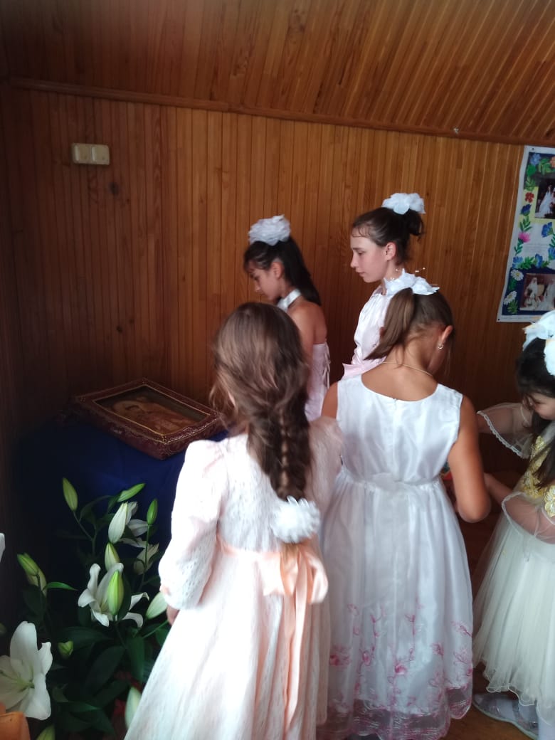 Заключительный день-это праздник, посвященный Царской семье. Была принесена мироточивая икона Царя Страстотерпца, после совместной молитвы все приложились к святыне. Подвели итог сделанному, показали, чему научились у хореографа Царевой Натальи и художника Пашковой Екатерины.