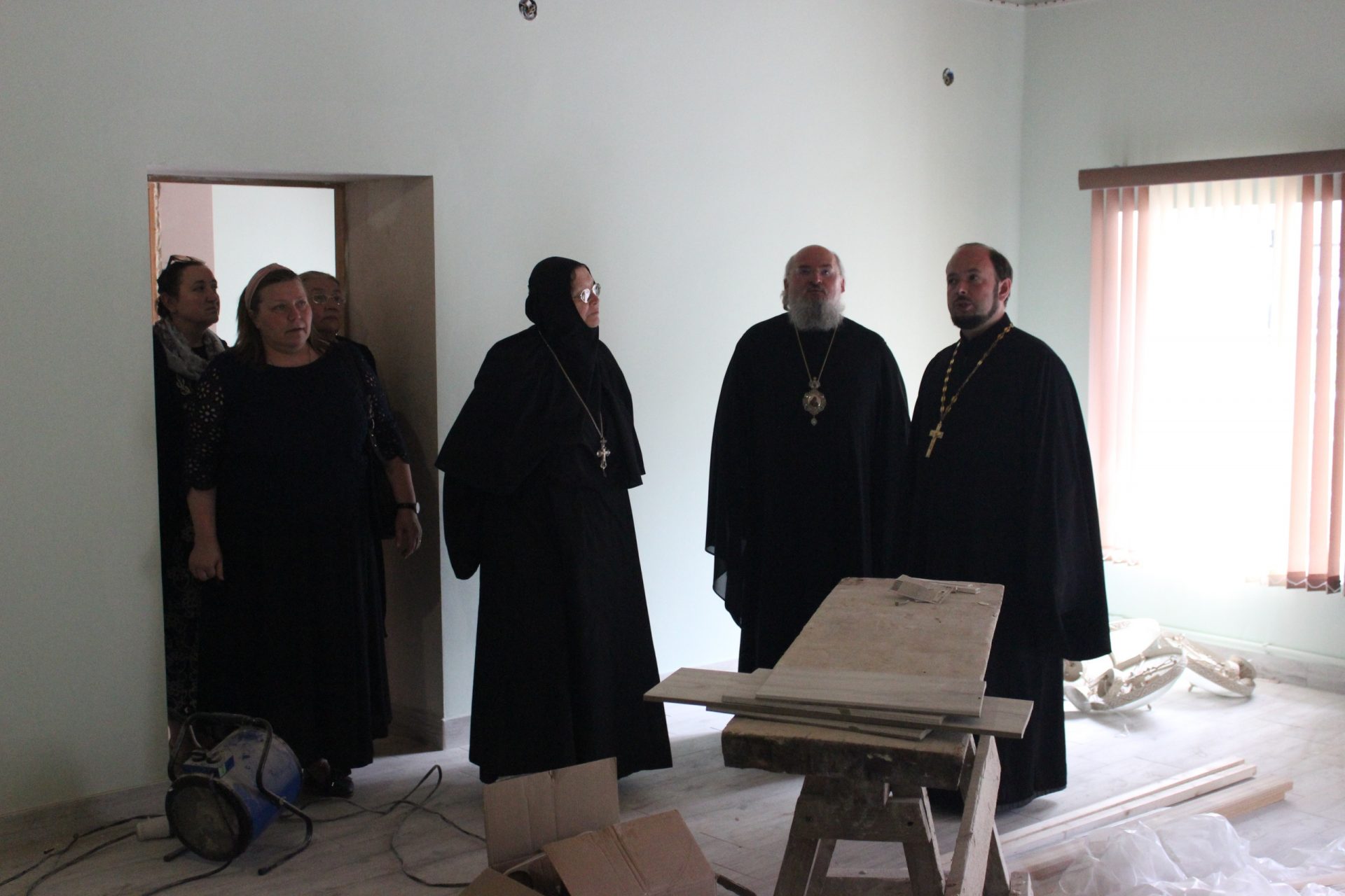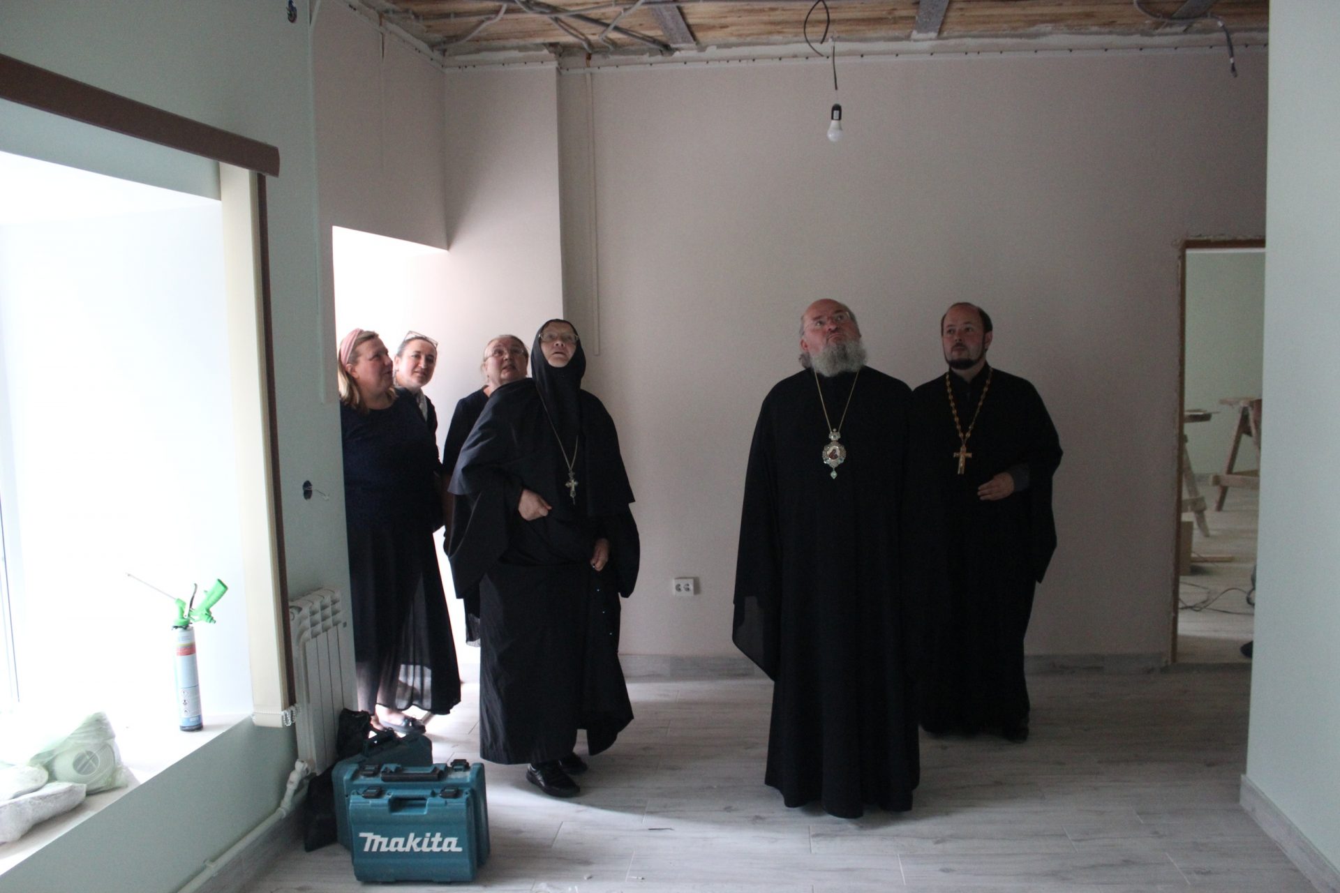 С ходом ремонтных работ председателя Комиссии — епископа Козельского и Людиновского Никиту и членов Комиссии: игумению Анастасию (Мордмиллович), протоиерея Антония Хатунцева, Куклину Марину Владимировну, а также секретаря Православной благотворительной Миссии «Милосердный самарянин» Никитину Алену Вячеславовну ознакомили: Секретарь Комиссии, руководитель отдела по церковной благотворительности и социальному служению протоиерей Алексей Пелевин и руководитель Центра «Материнский ковчег» Саунина Галина Борисовна.