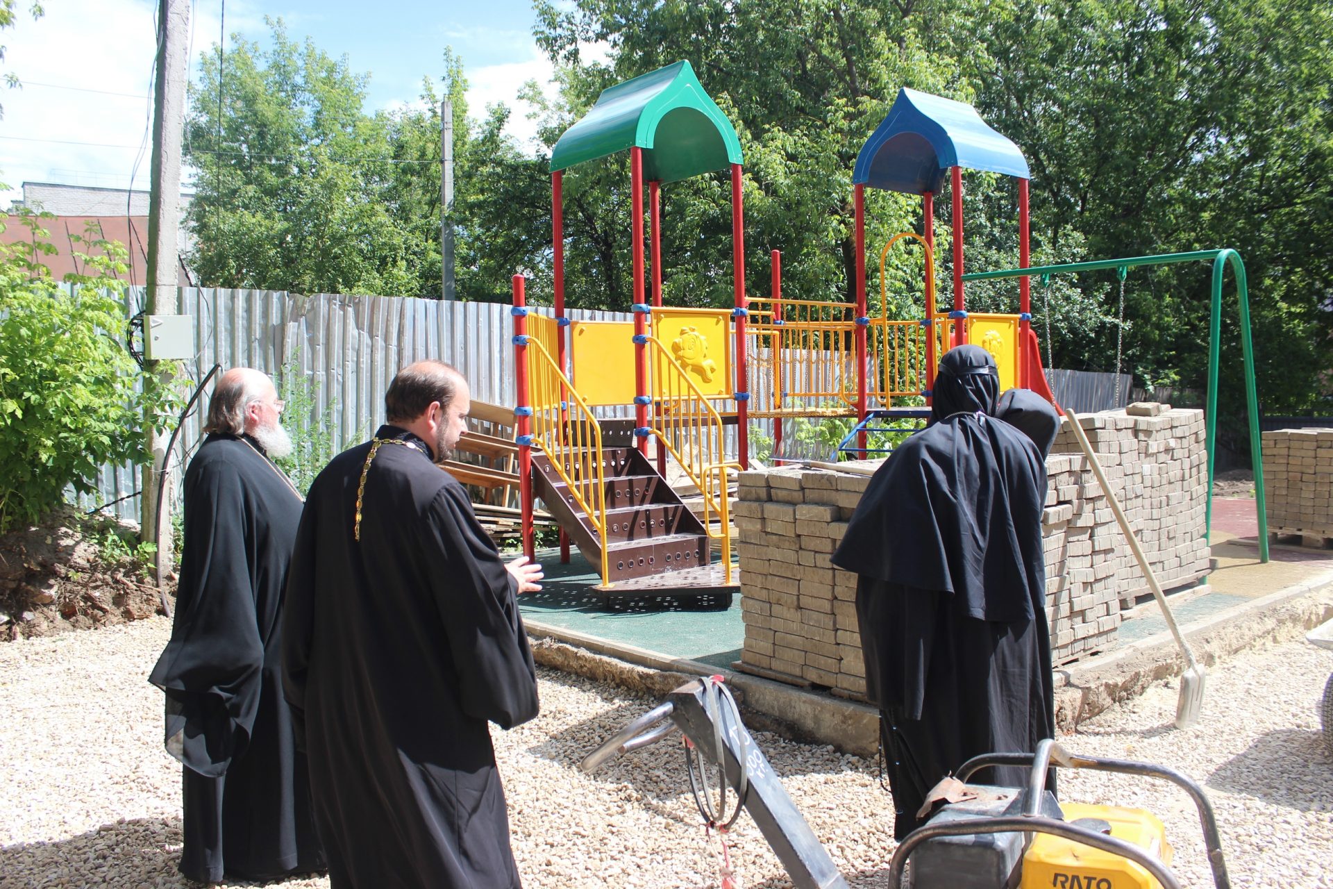 Кроме того, были осмотрены работы по благоустройству территории, где размещается детская площадка и продуктовый склад для оказания помощи людям в ТЖС.