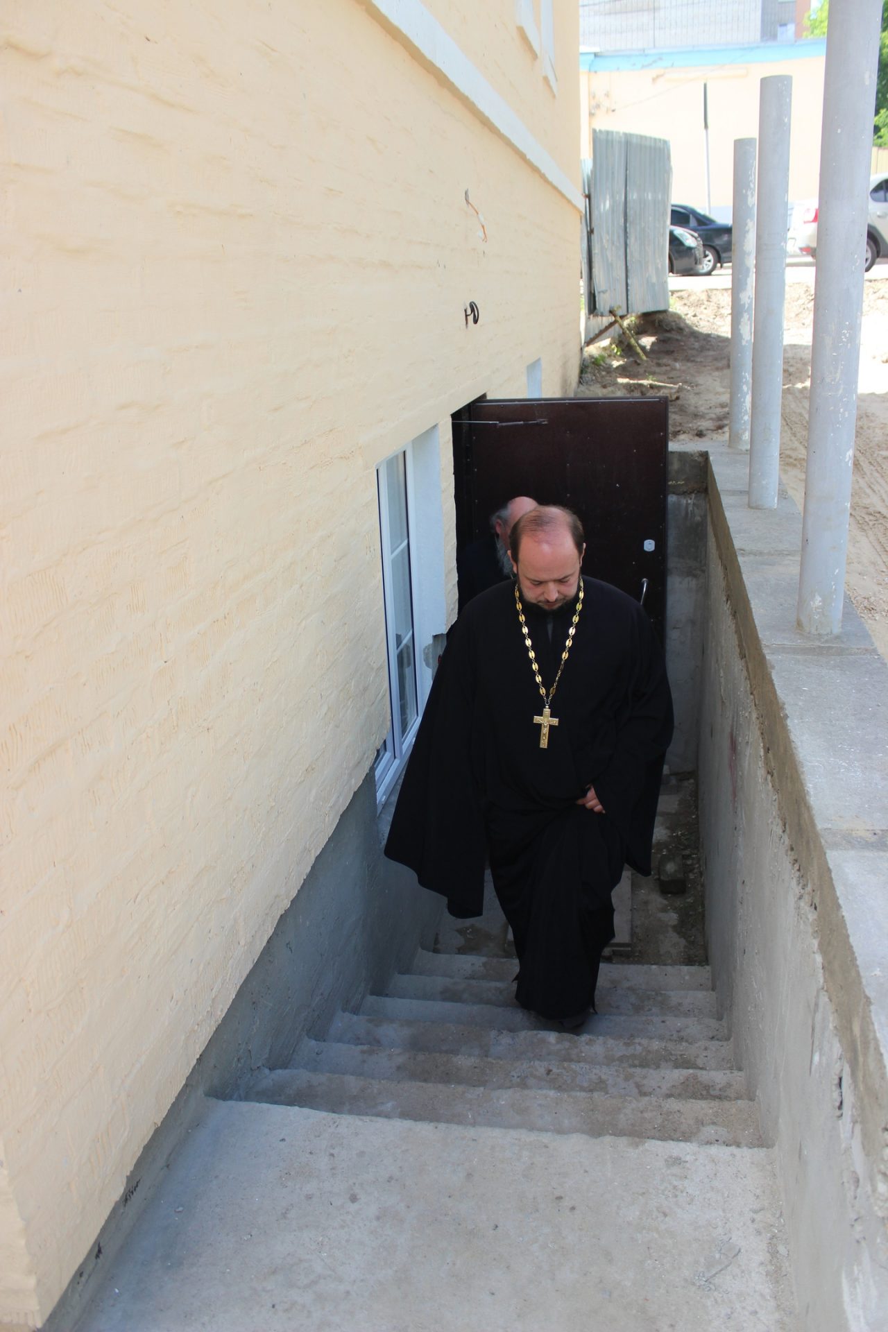Присутствующие осмотрели помещения 1-ого этажа, где разместятся актовый зал, игровая, комната первичного приема и прачечная, а также помещения 2-ого этажа, где располагаются комнаты для мам и детей (спальни), кухня, обеденная зона и молитвенное помещение.
