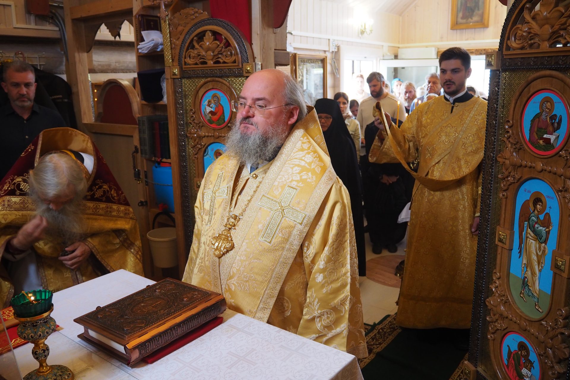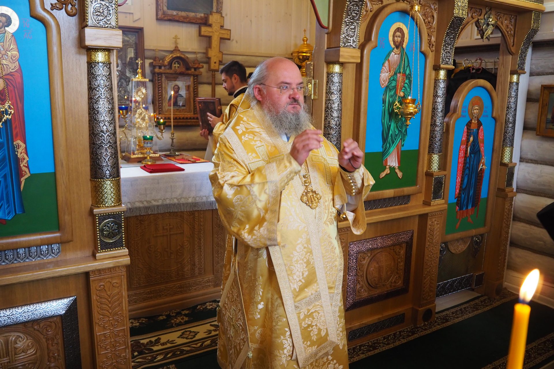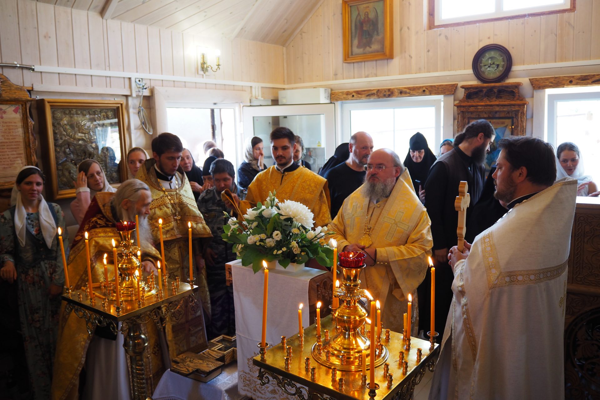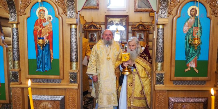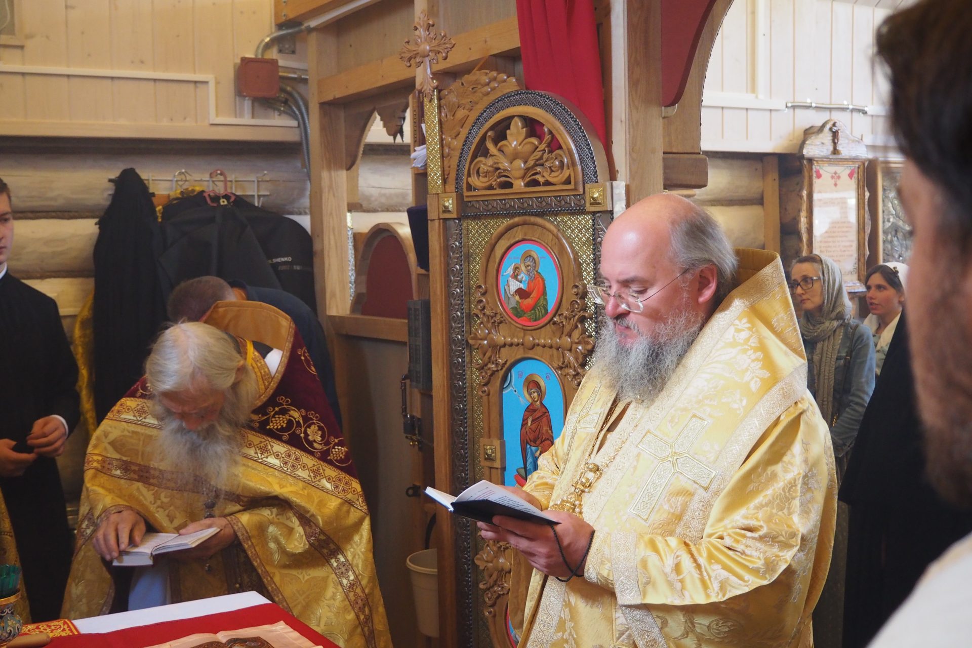Преосвященному владыке сослужили: схиархимандрит Илий (Ноздрин), протоиерей Антоний Хатунцев, иерей Евгений Мягков, диакон Евгений Васильев и иеродиакон Виталий (Павленко).