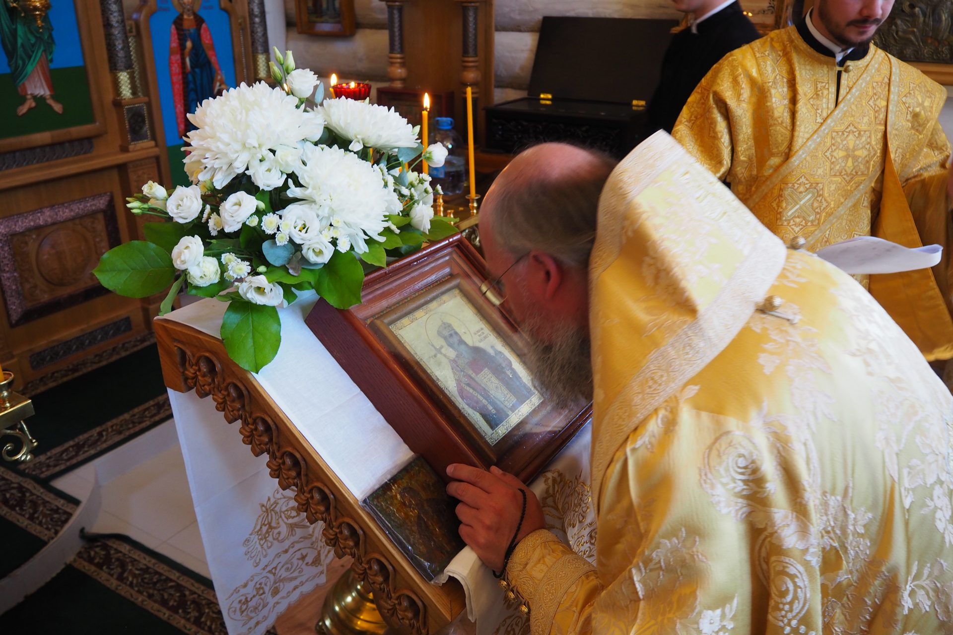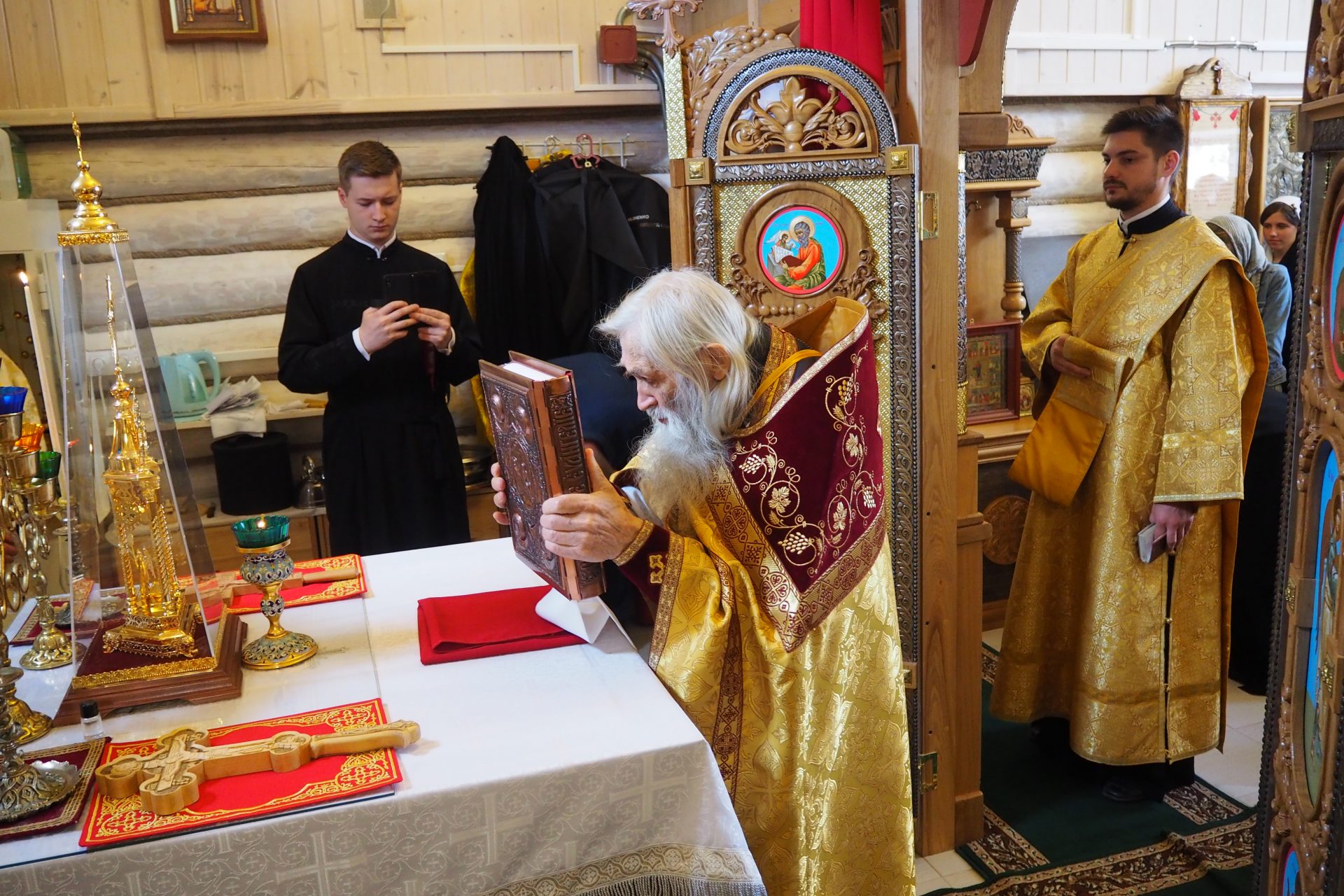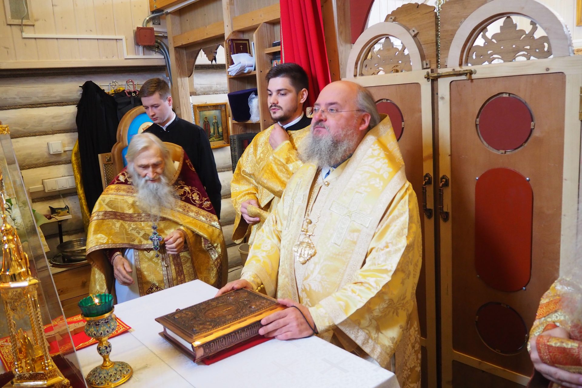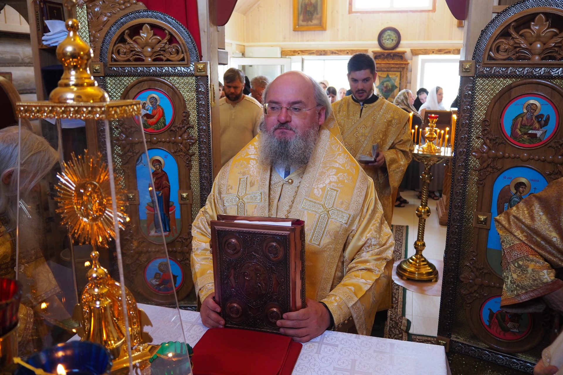 Преосвященному владыке сослужили: схиархимандрит Илий (Ноздрин), протоиерей Антоний Хатунцев, иерей Евгений Мягков, диакон Евгений Васильев и иеродиакон Виталий (Павленко).