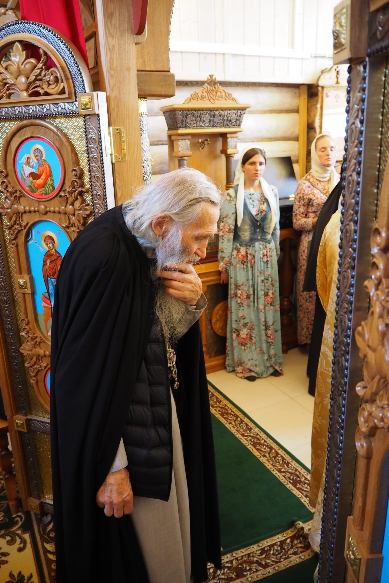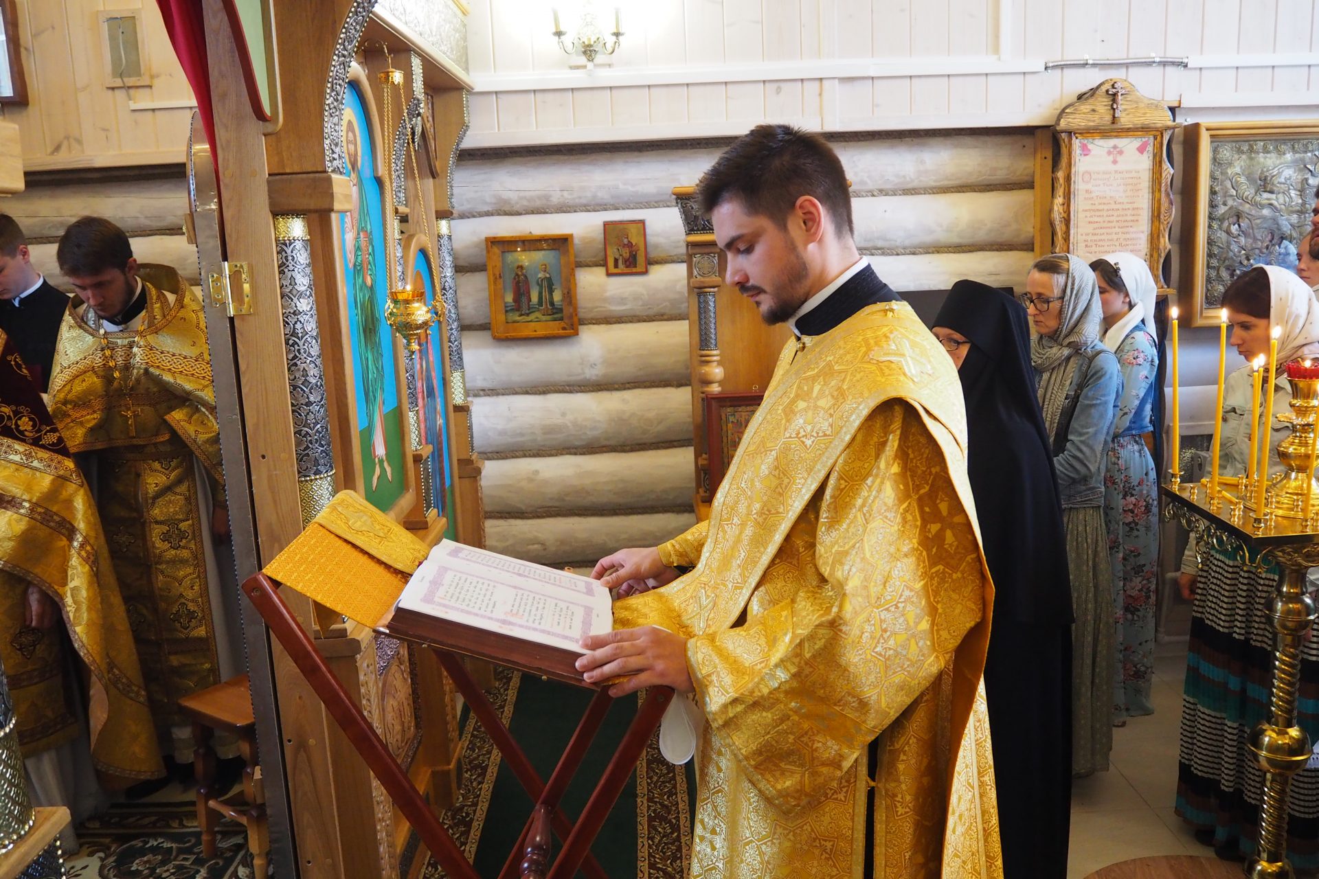 За богослужением молились старшая сестра общины монахиня Иоанна (Павлова) с сестрами и паломниками.