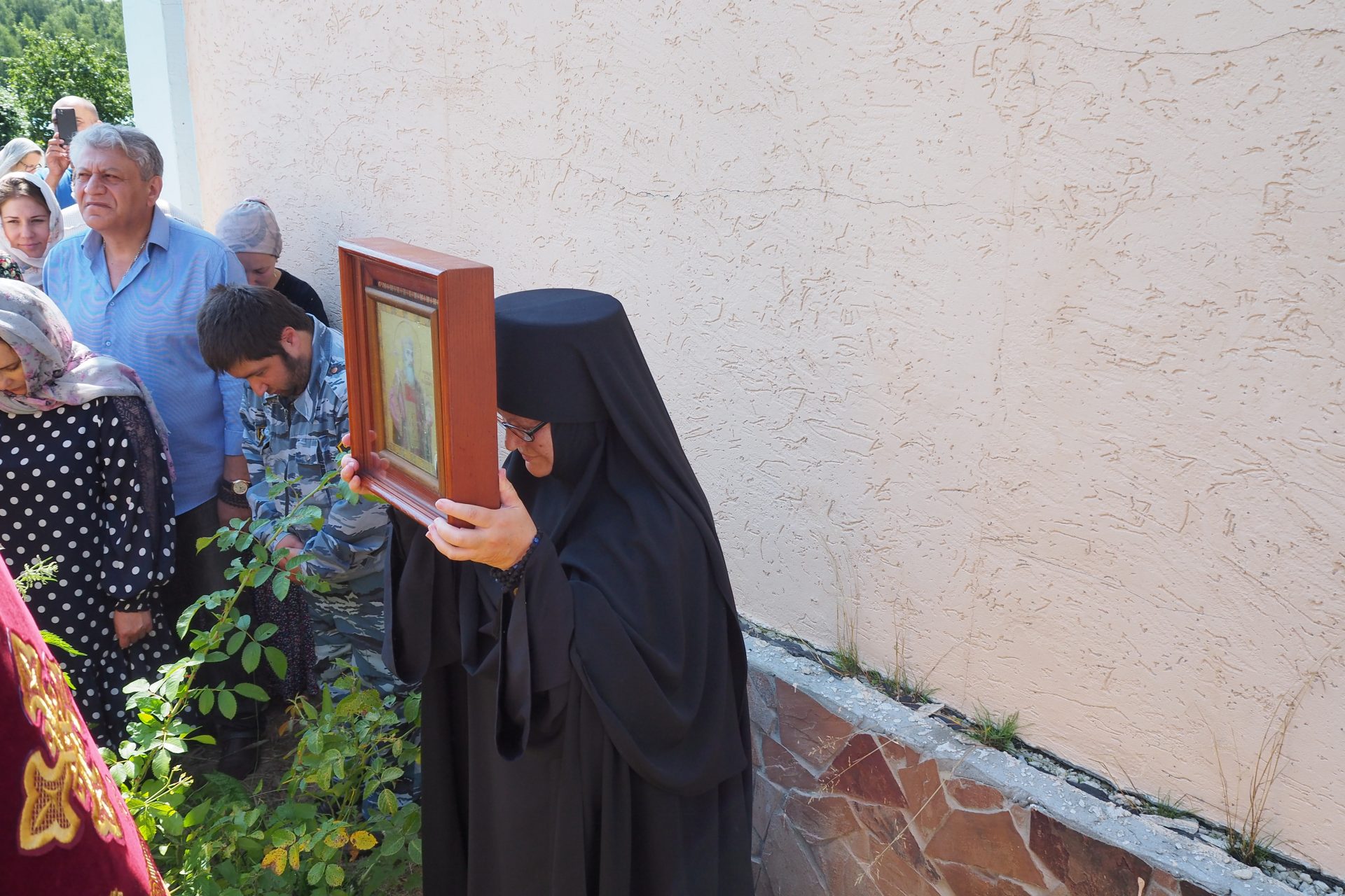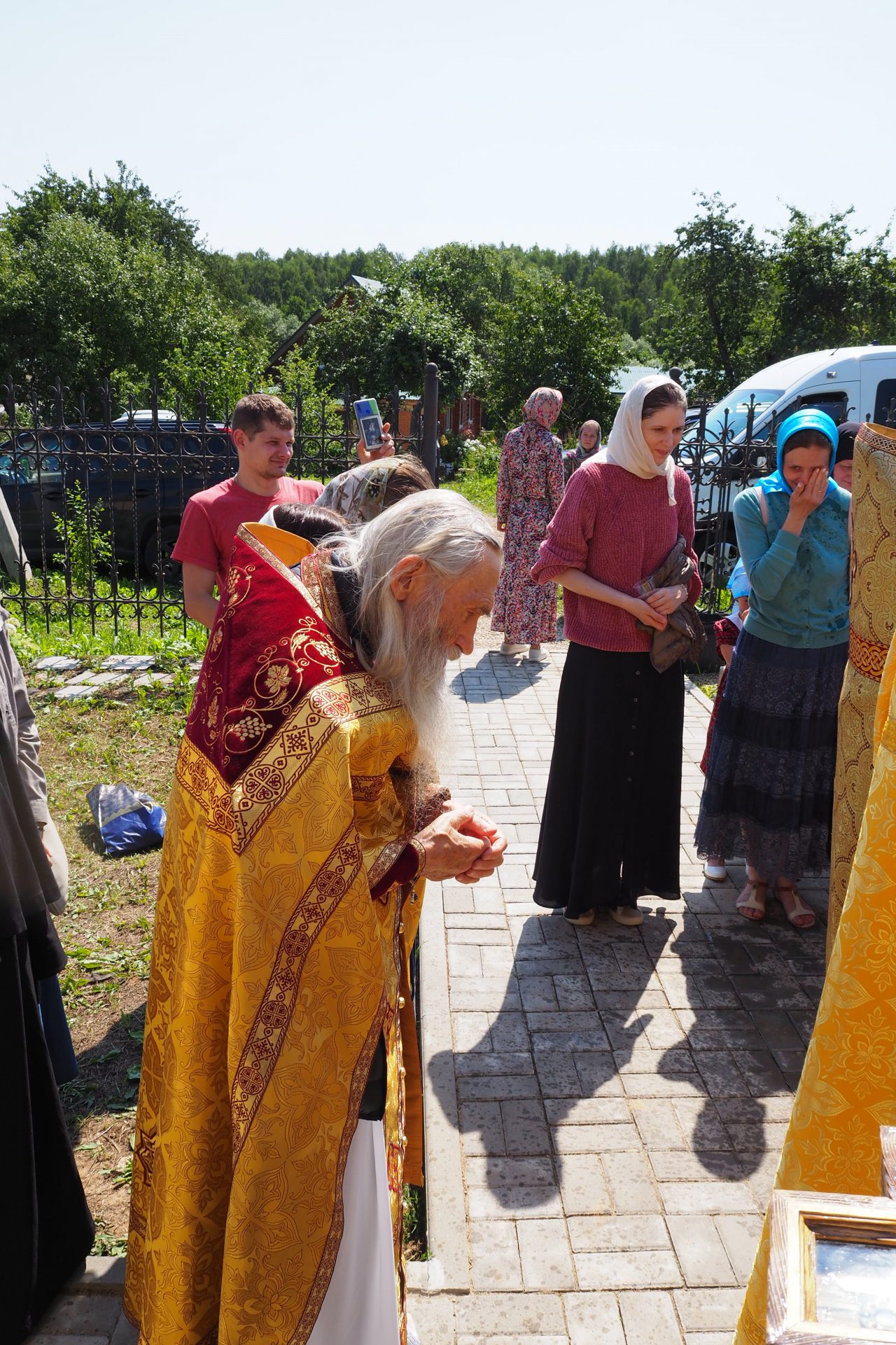 По отпусте литургии священнослужители совершили молебное пение в воспоминание Крещения Руси и крестный ход вокруг храма.