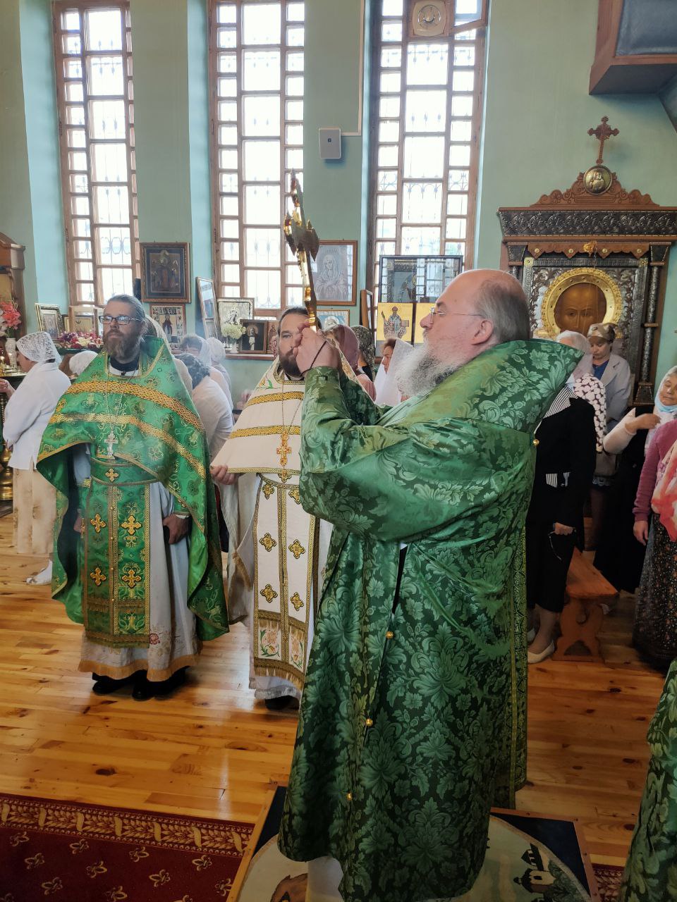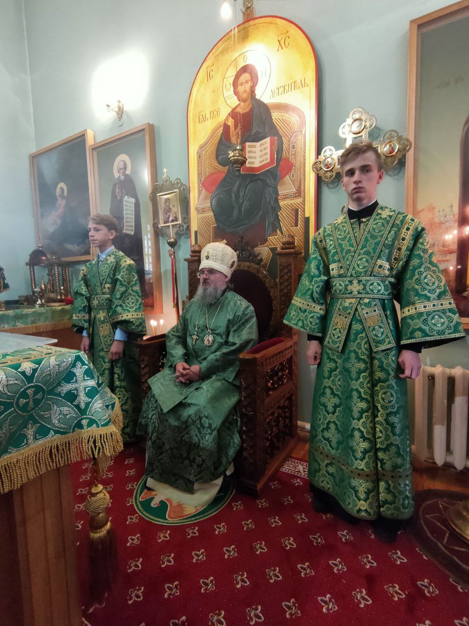 Преосвященному владыке сослужили: настоятель храма протоиерей Владимир Бахаев, протоиерей Антоний Хатунцев, иерей Алексий Боков, иерей Константин Илющенко, диакон Евгений Васильев и иеродиакон Лука (Старостин).