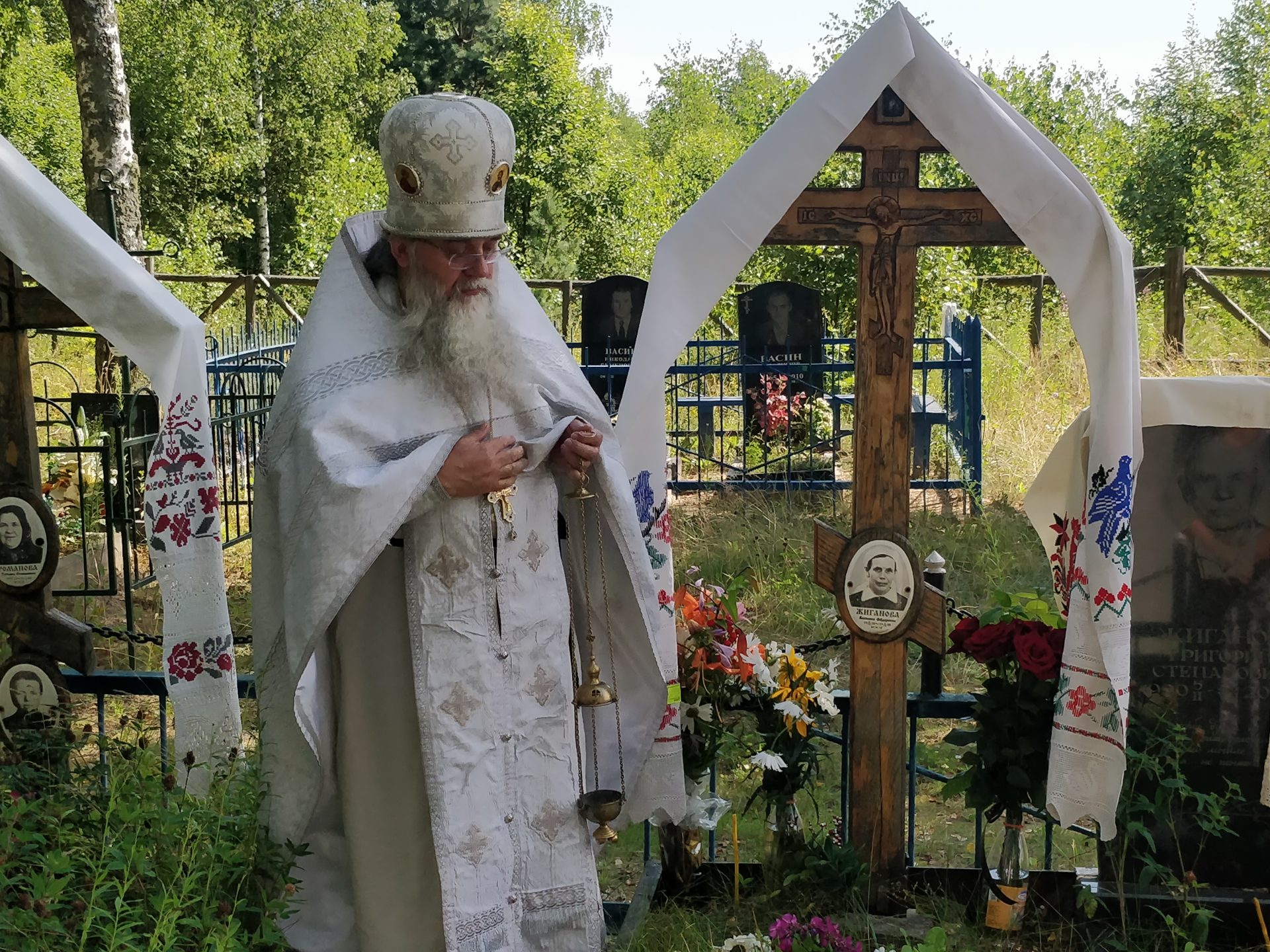 Раба Божия Васса преставилась 6 июля 1988 года. А в первом новопостроенном и освященном на Людиновской Земле после 1917 года храме каждый год 7 июля, в день главного престольного праздника – Рождества Иоанна Предтечи, совершается Божественная Литургия! Каждый может стать участником богослужения, помолиться о своих близких, живых и мертвых. Вечная память Василисе Федоровне – простой русской крестьянке, дорогой для детей маме, дорогой для внуков и правнуков бабушке, и всем покоящимся на кладбище у Предтеченской церквушки православным христианам!