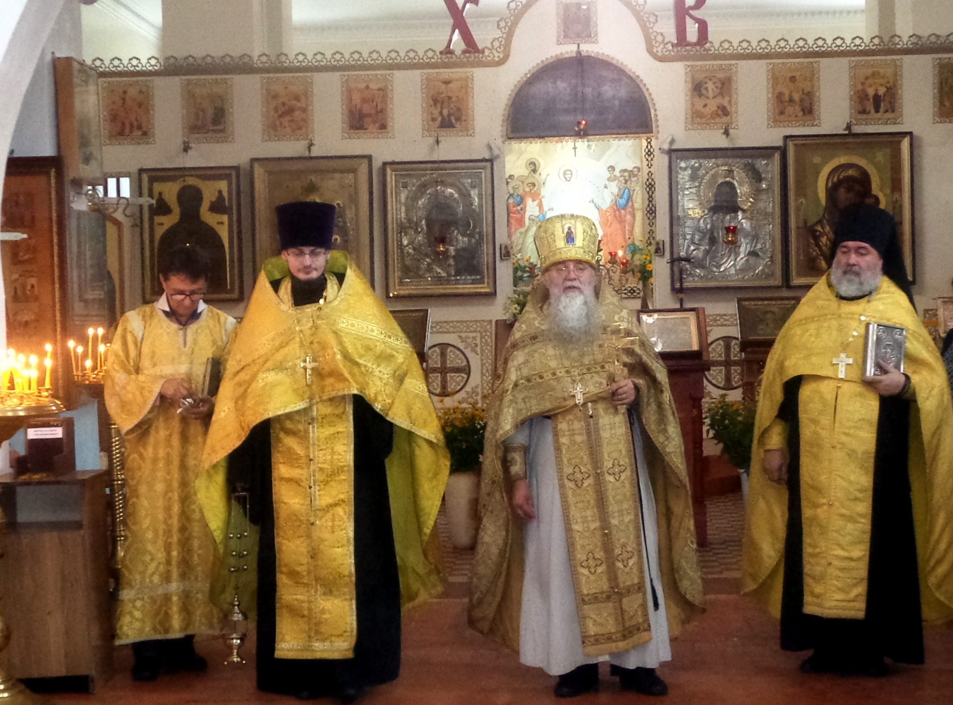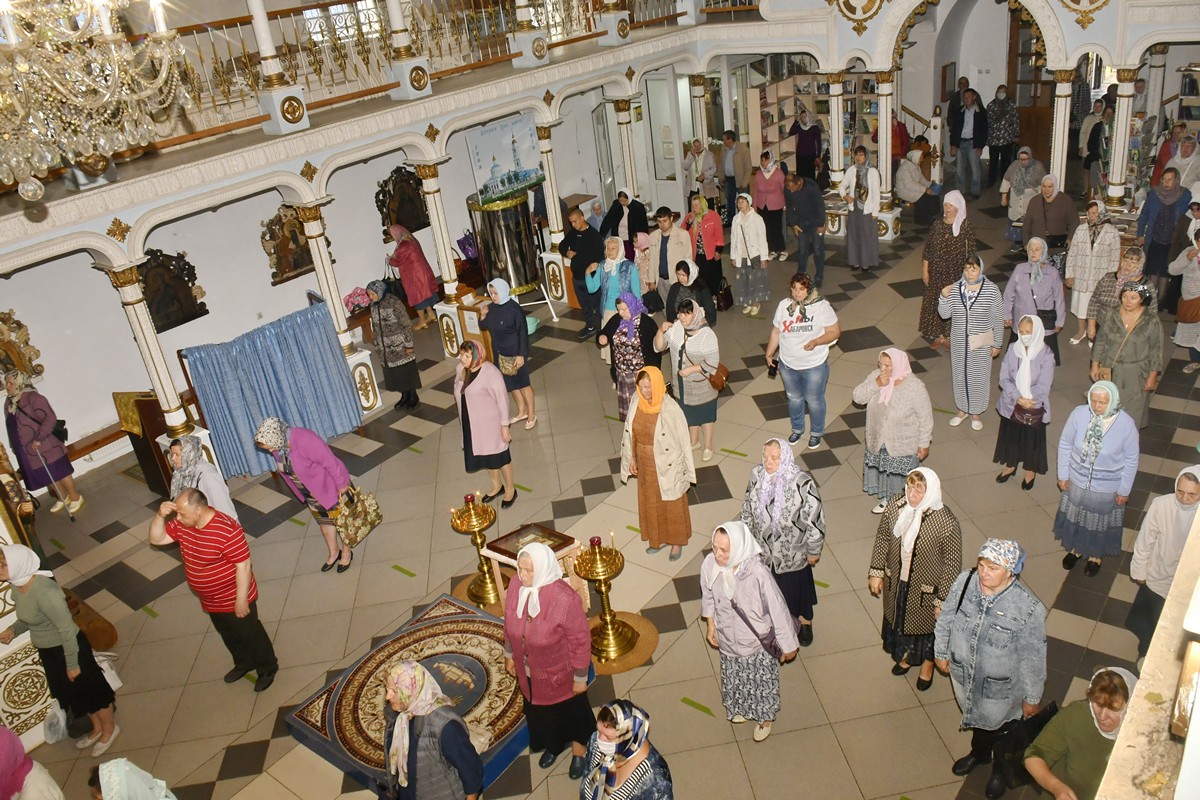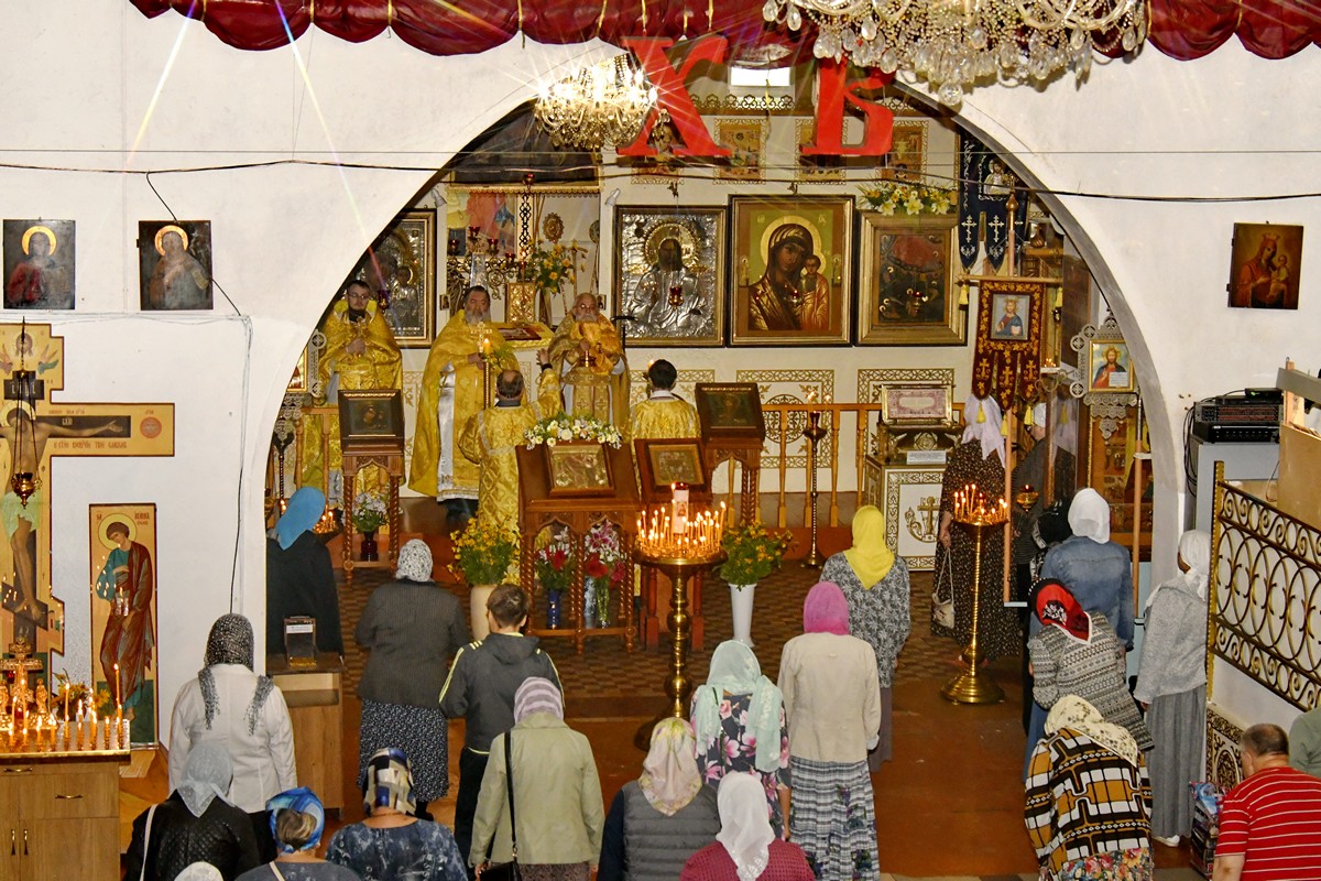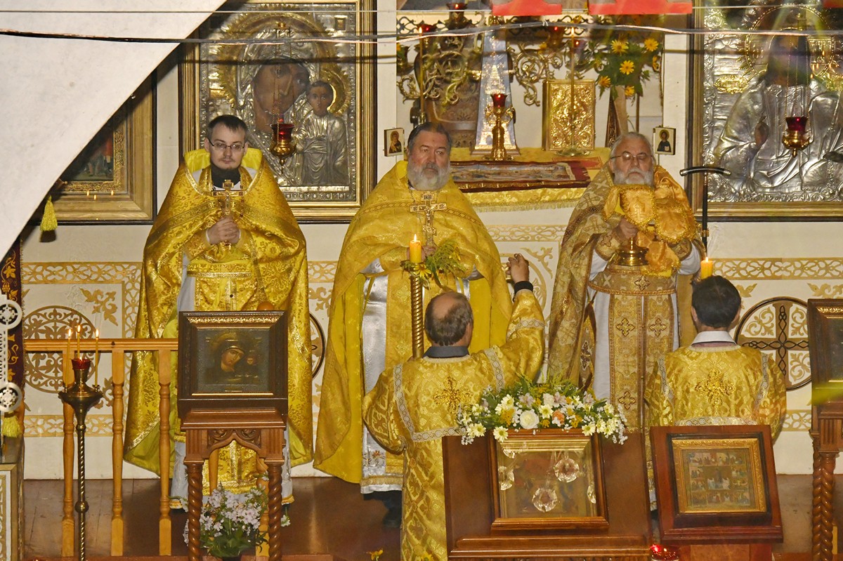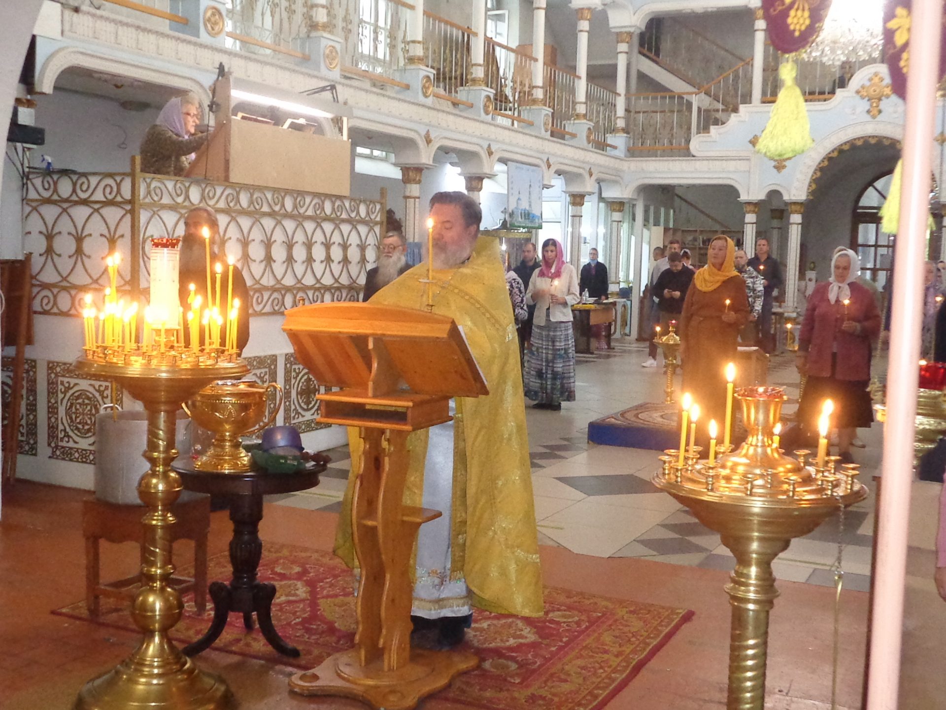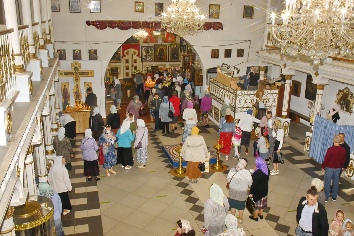 Богослужение совершил настоятель собора протоиерей Алексий Жиганов в сослужении иеромонаха Василия (Лукашева) и клирика собора иерея Алексия Сначева.