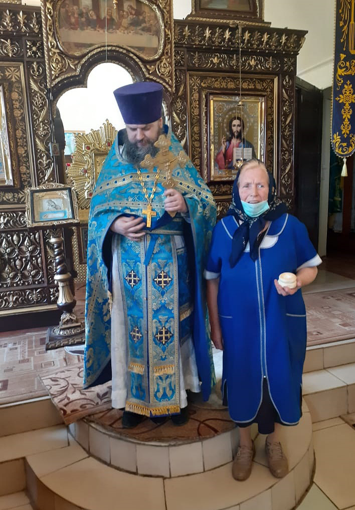 По завершении богослужения, по случаю дня рождения, теплые слова поздравлений от настоятеля принимала свечница храма Апокина Татьяна Григорьевна. Священник поблагодарил именинницу за многолетние труды, за активное участие в жизни прихода и преподнёс ей в дар святую просфору.