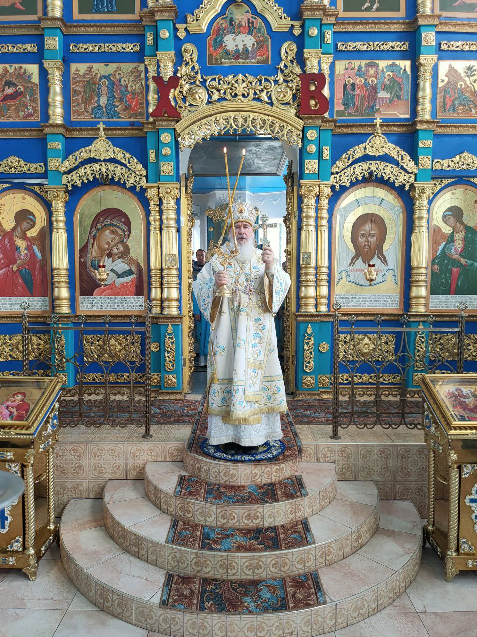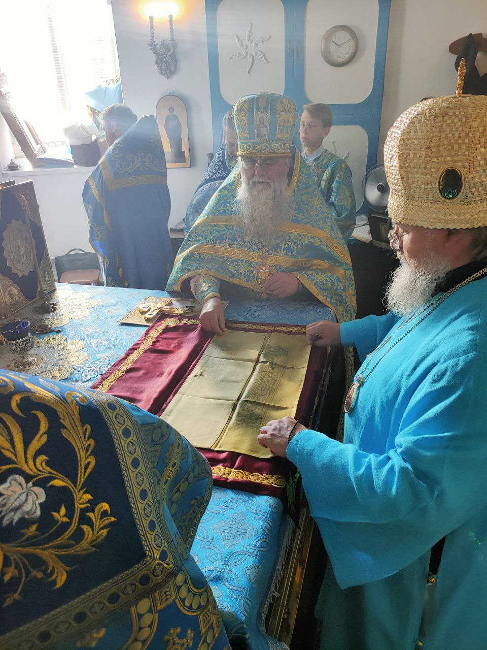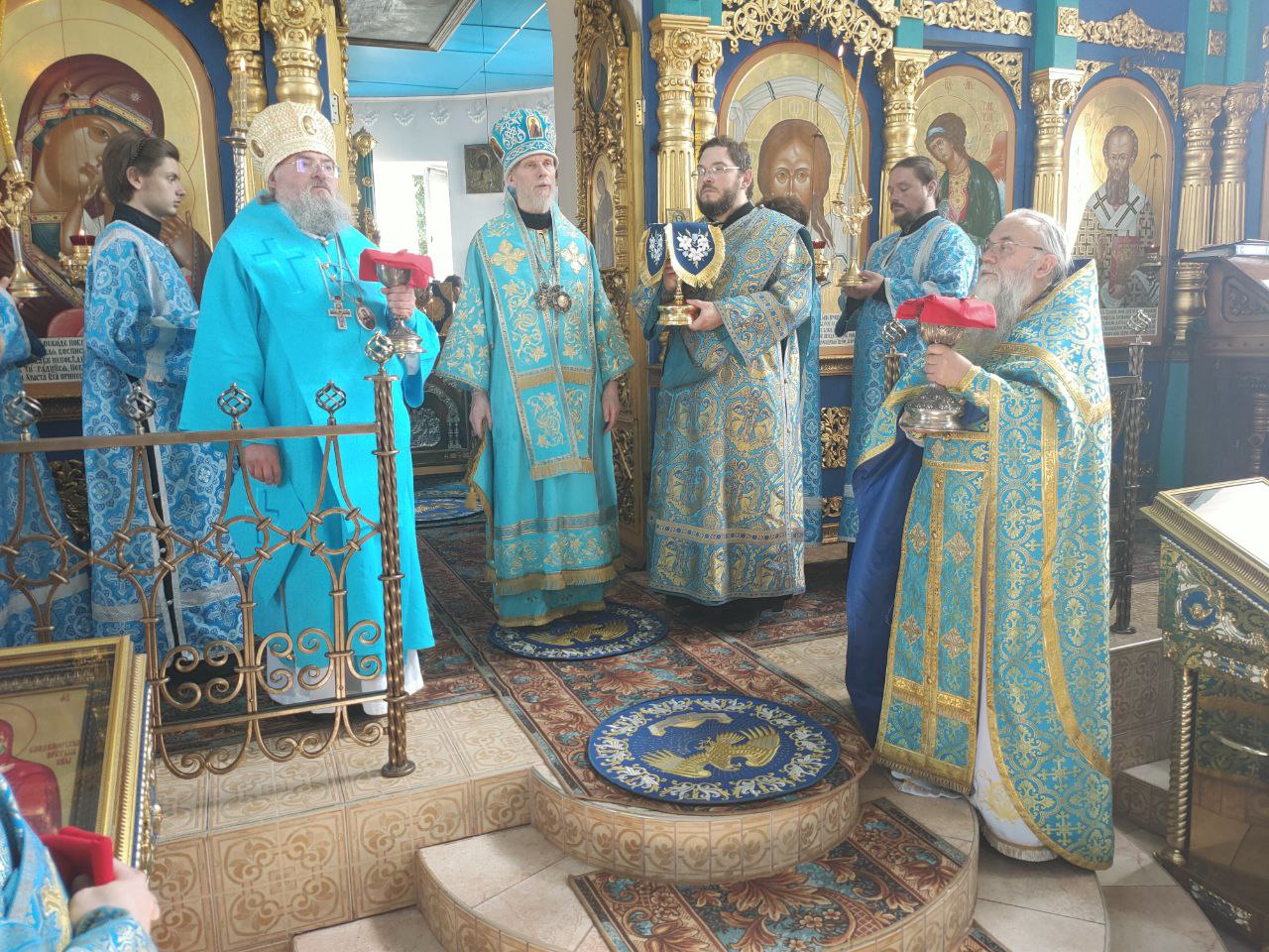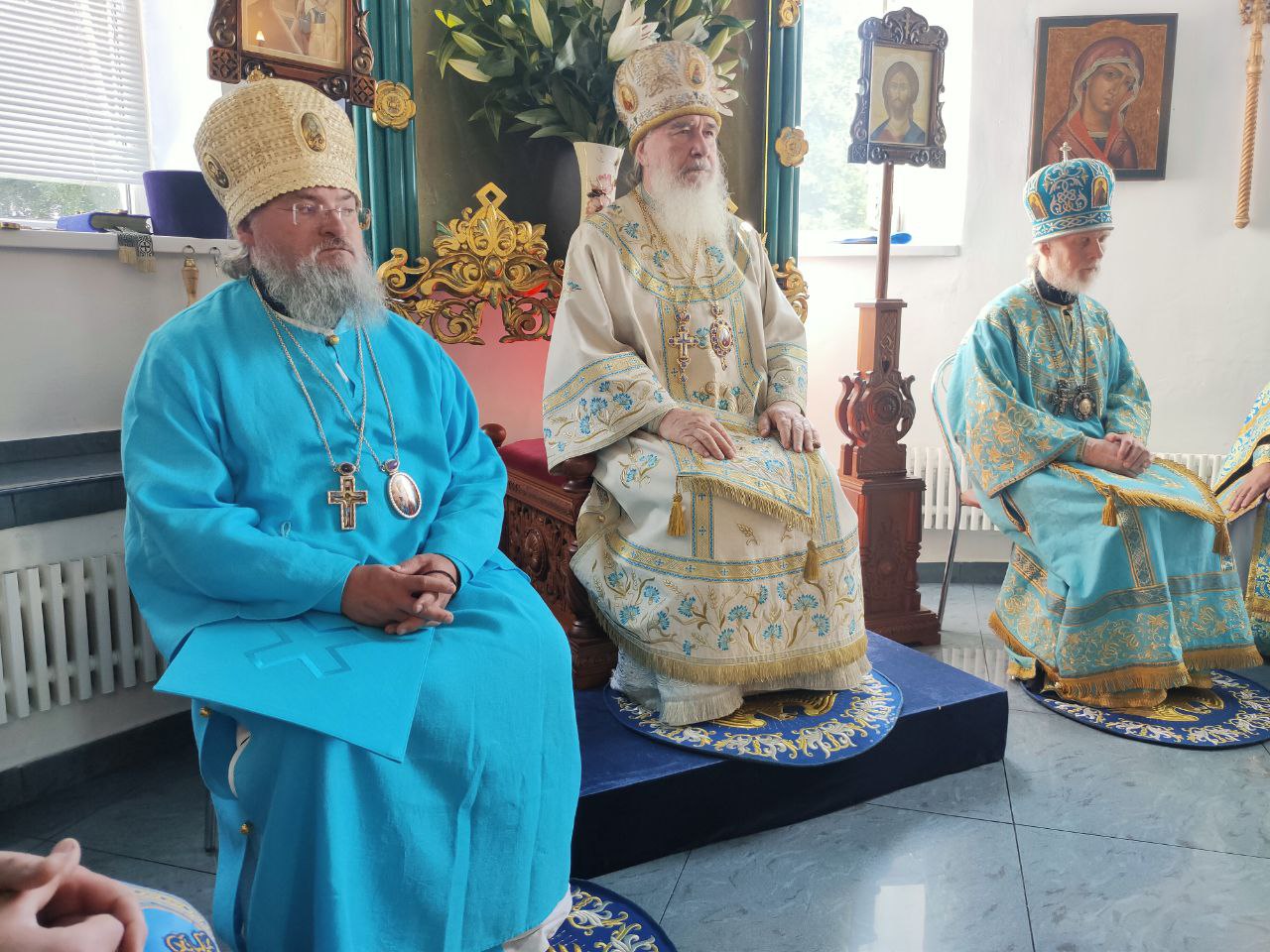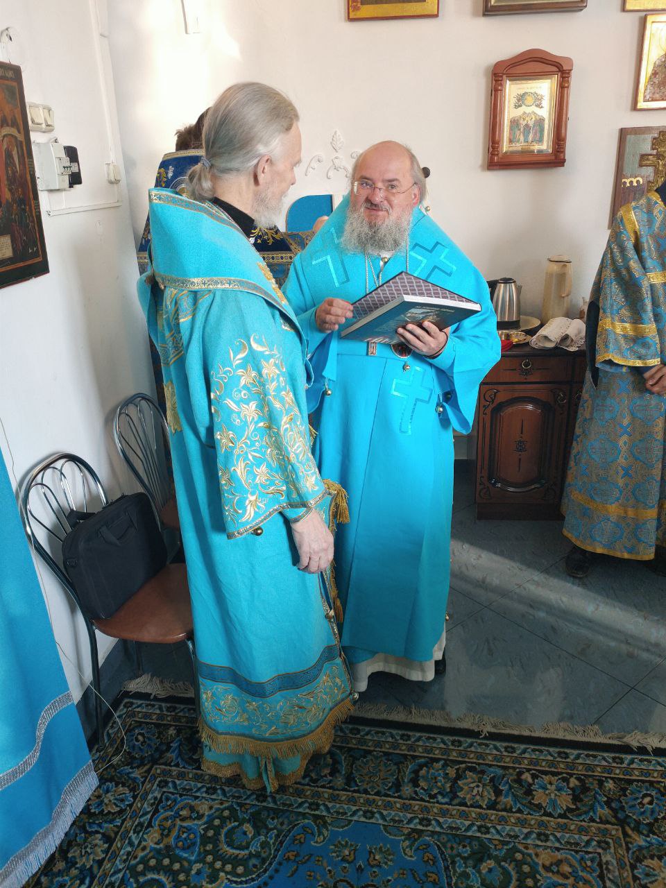 В завершении богослужения епископ Никита обратился с приветственным словом к прибывшим на торжество архипастырям и преподнес им на молитвенную память о празднике картины с изображением Смоленского храма.