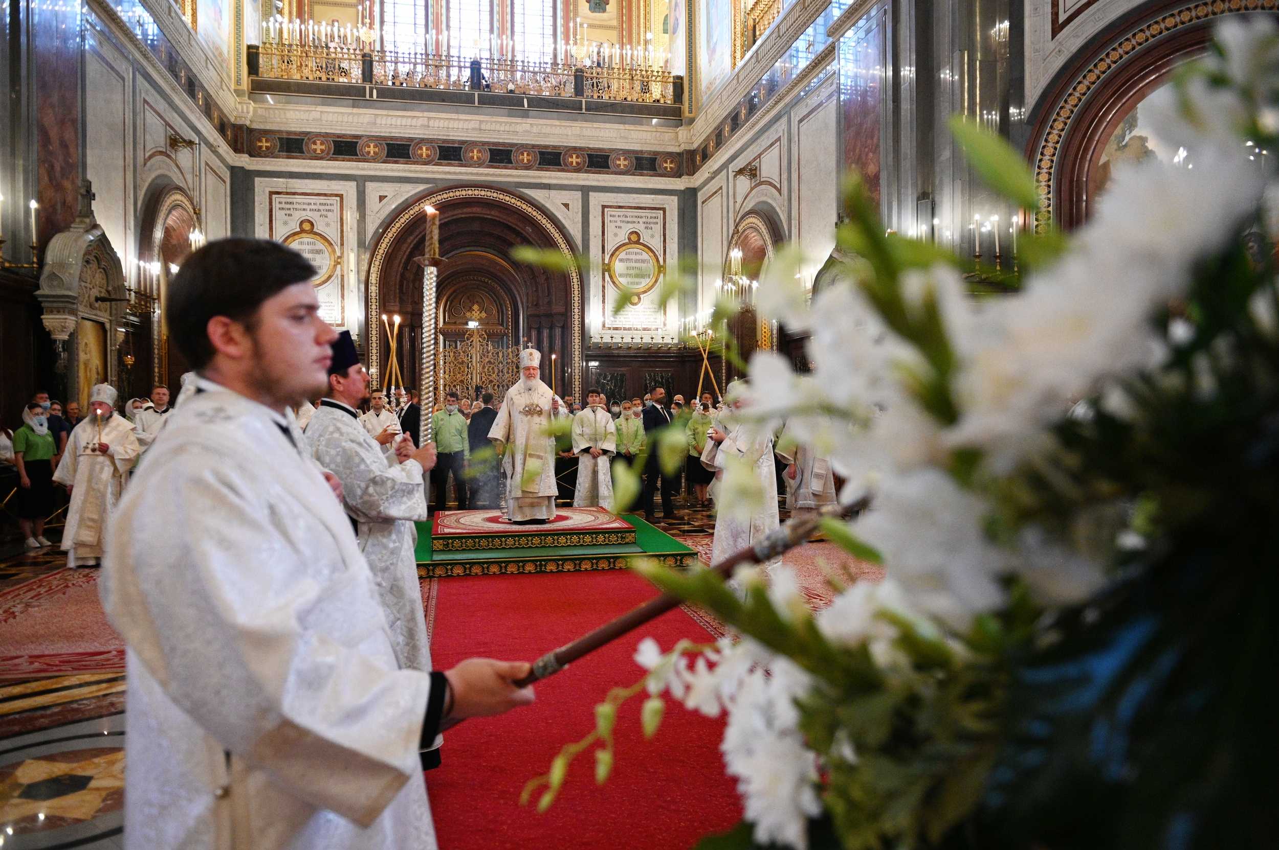 Прямую трансляцию богослужения осуществляли телеканалы «Союз» и «Спас».