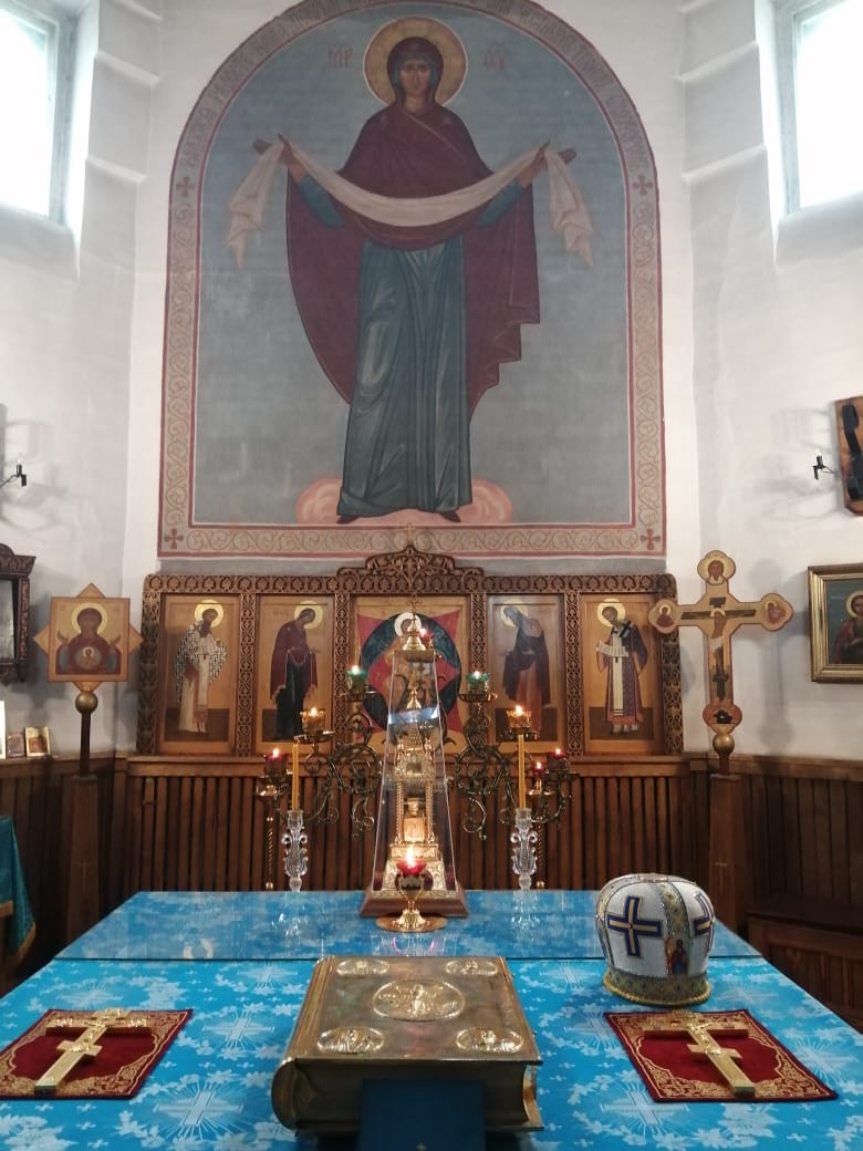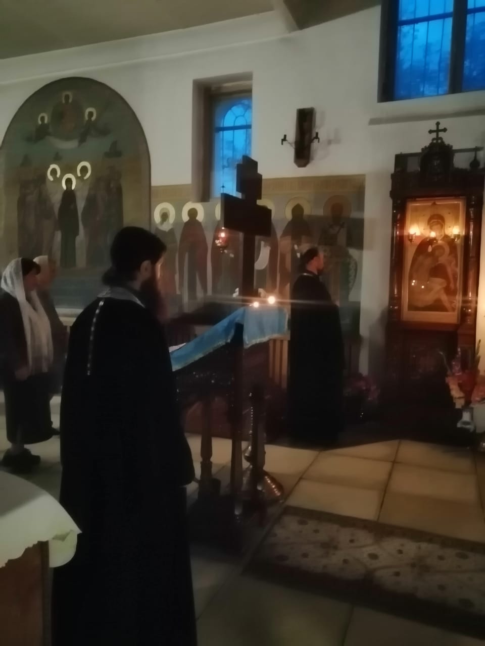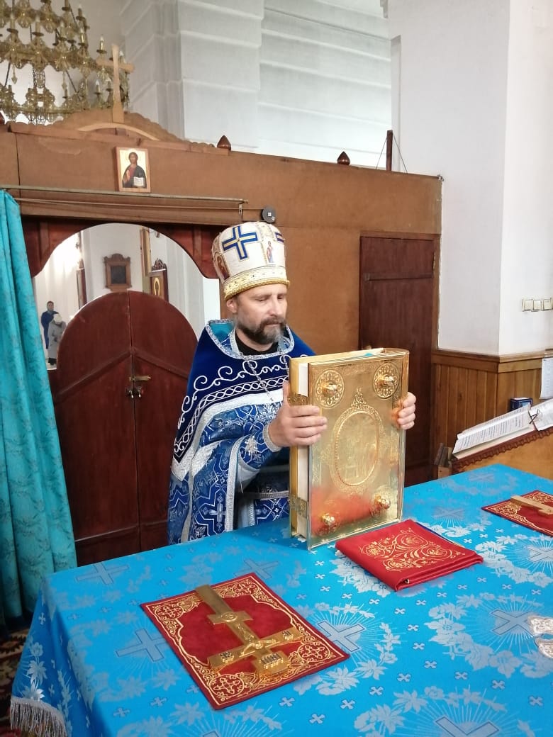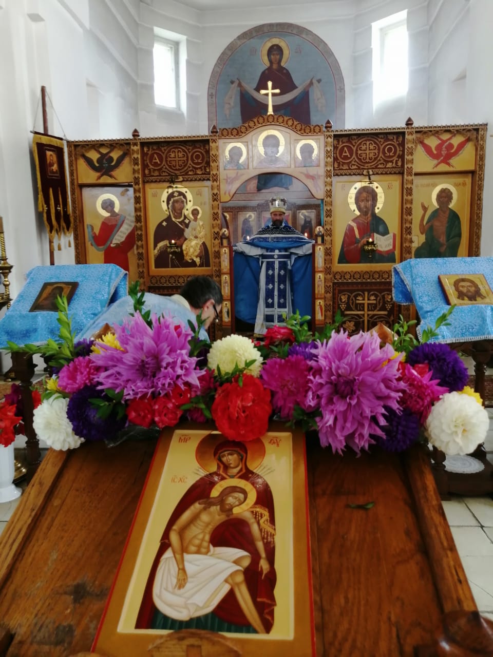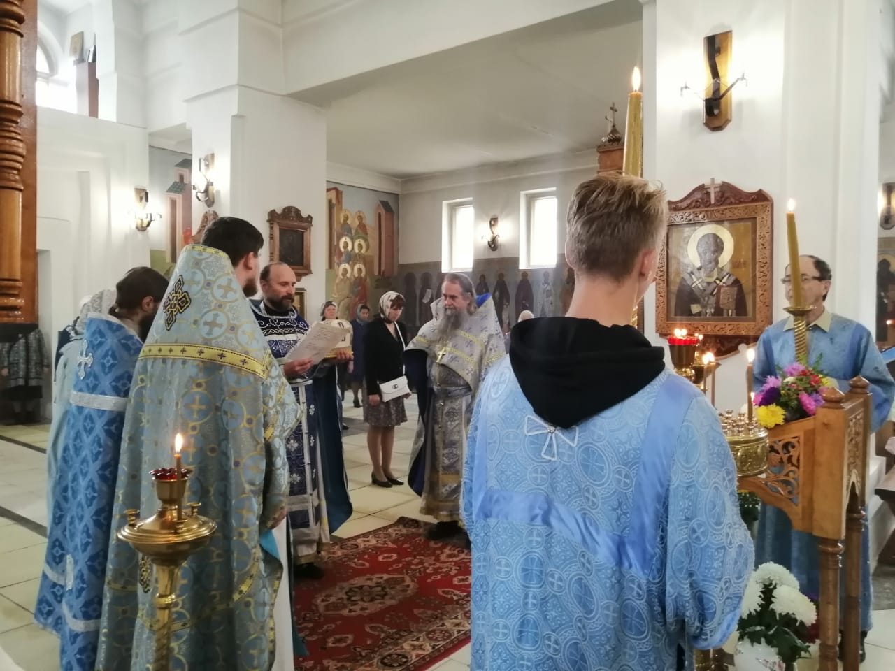 По отпусте Литургии священнослужители совершили славление Пресвятой Богородице пред Ее чудотворным образом. Затем настоятель храма протоиерей Константин обратился к богомольцам с праздничным словом.