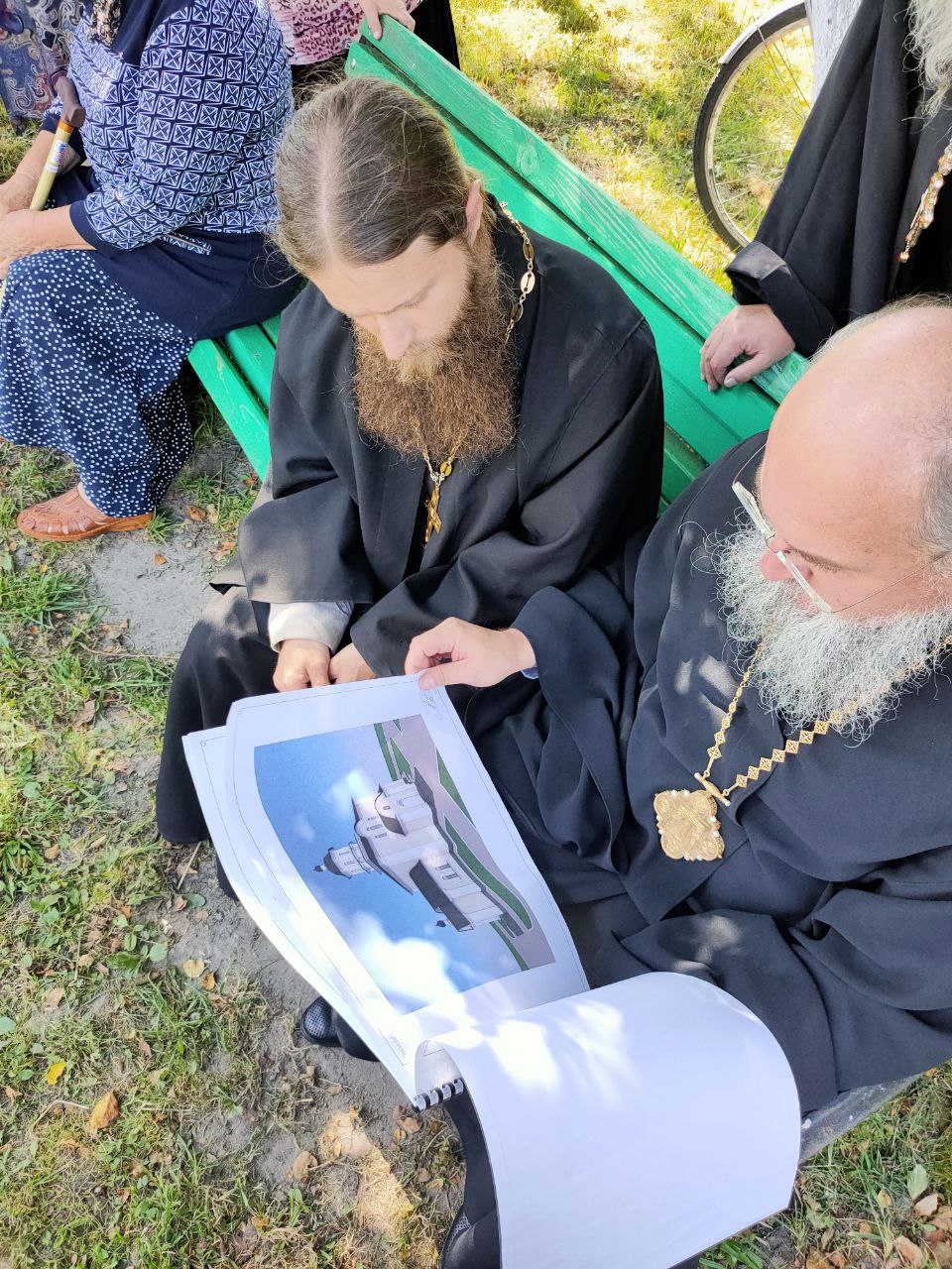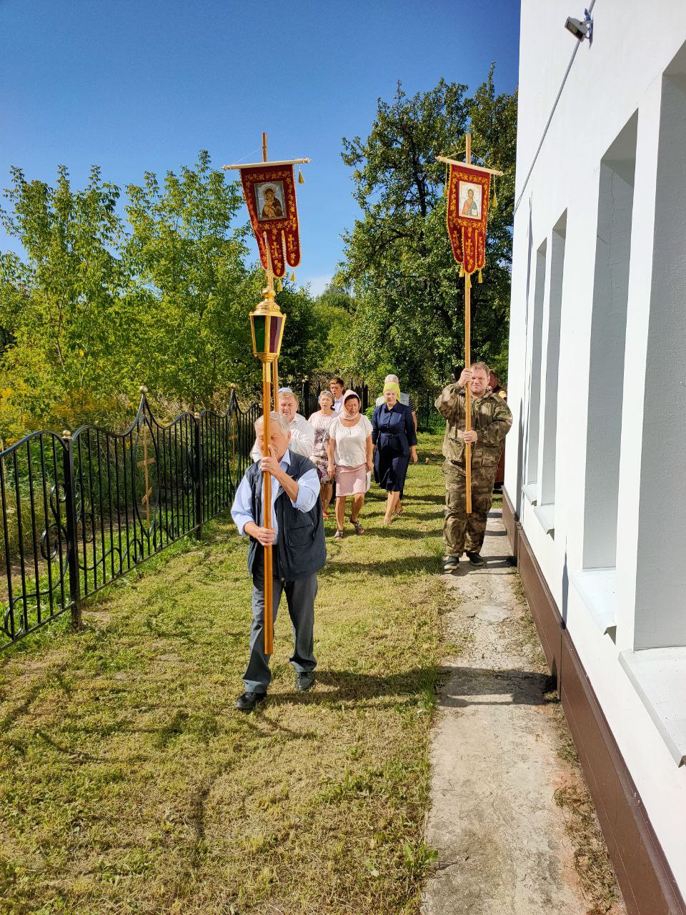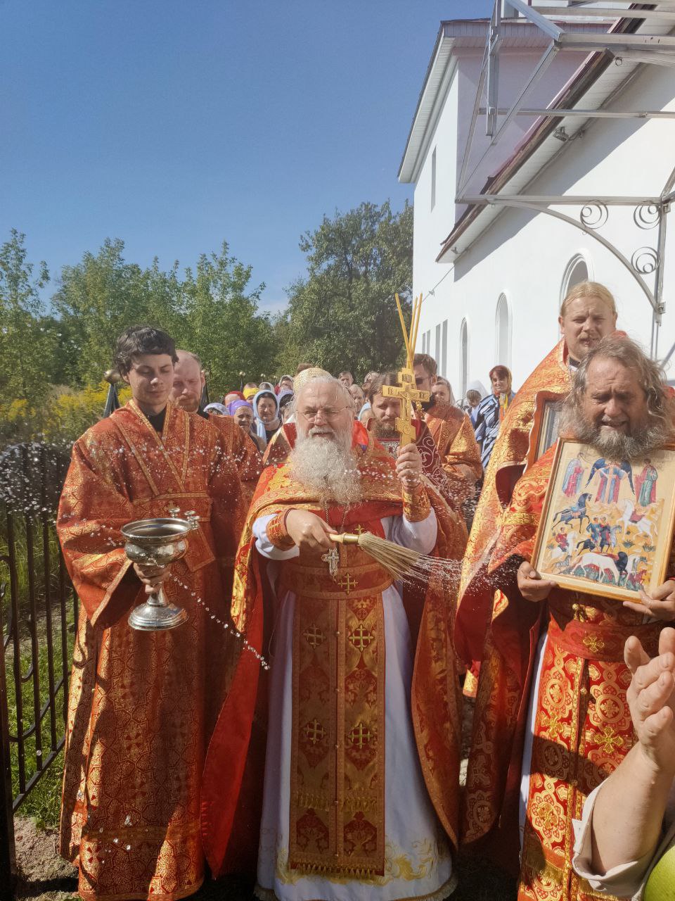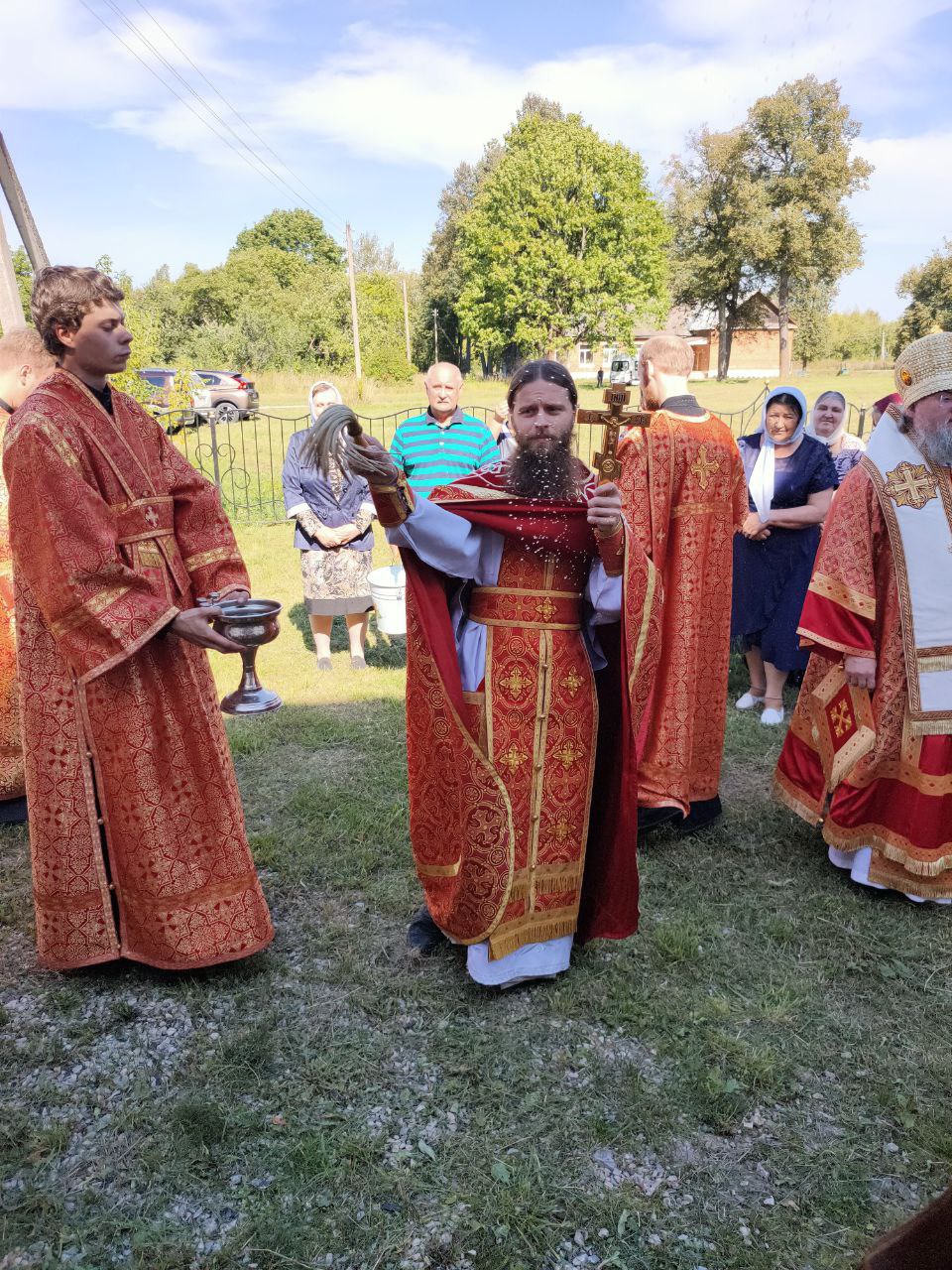 По отпусте литургии священнослужители совершили праздничный молебен святым мученикам Фролу и Лавру и крестный ход вокруг храма, в завершении которого, вознеся молитву угодникам Божиим, владыка обратился к богомольцам с проповедью.