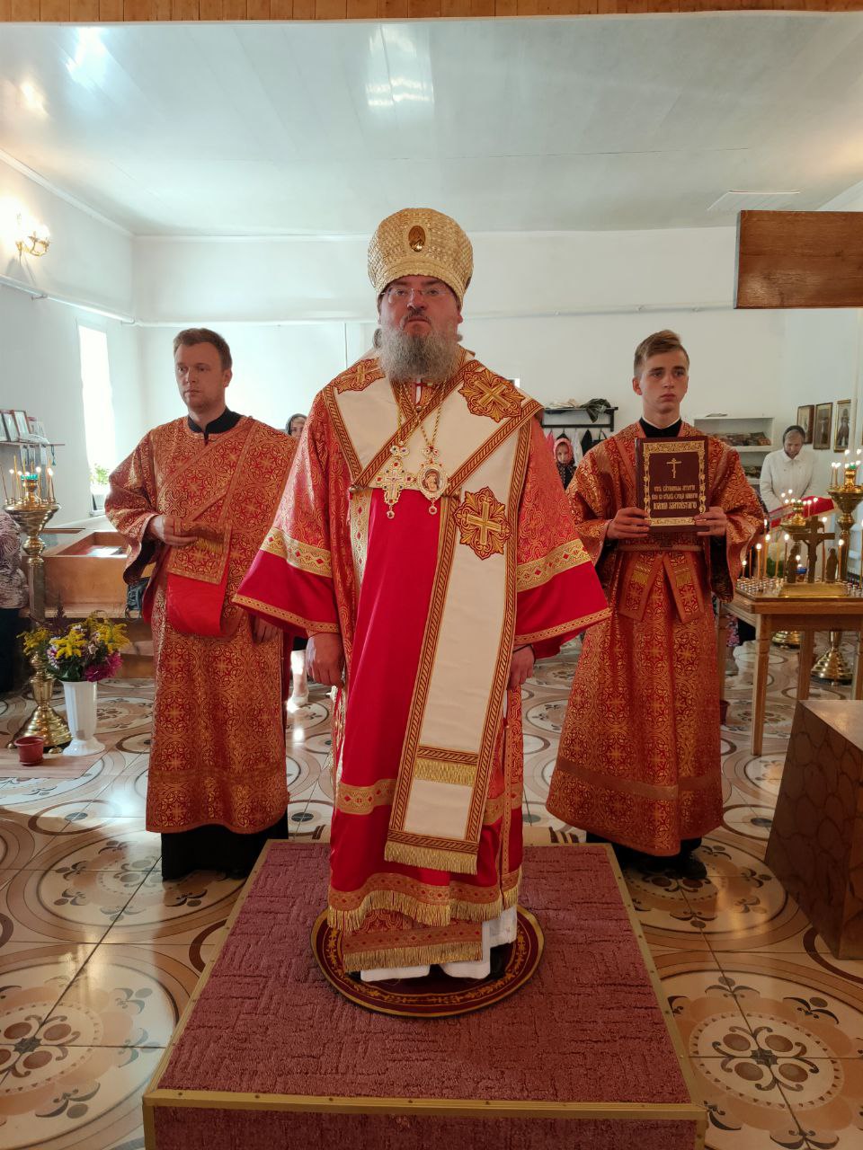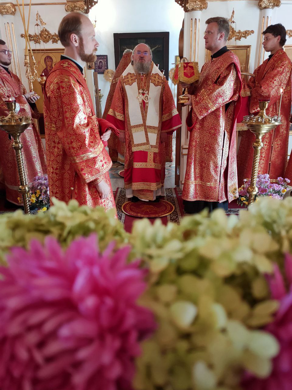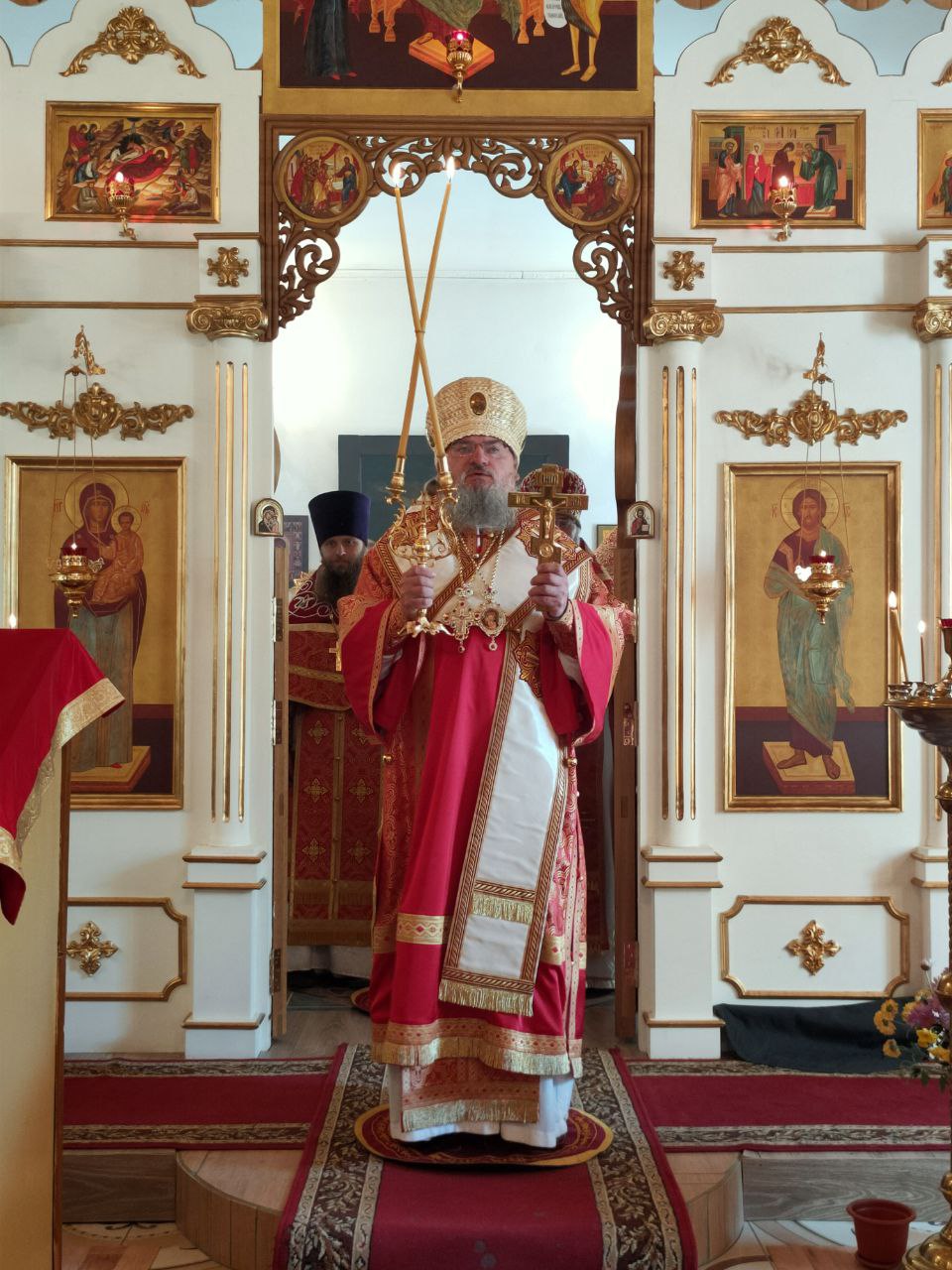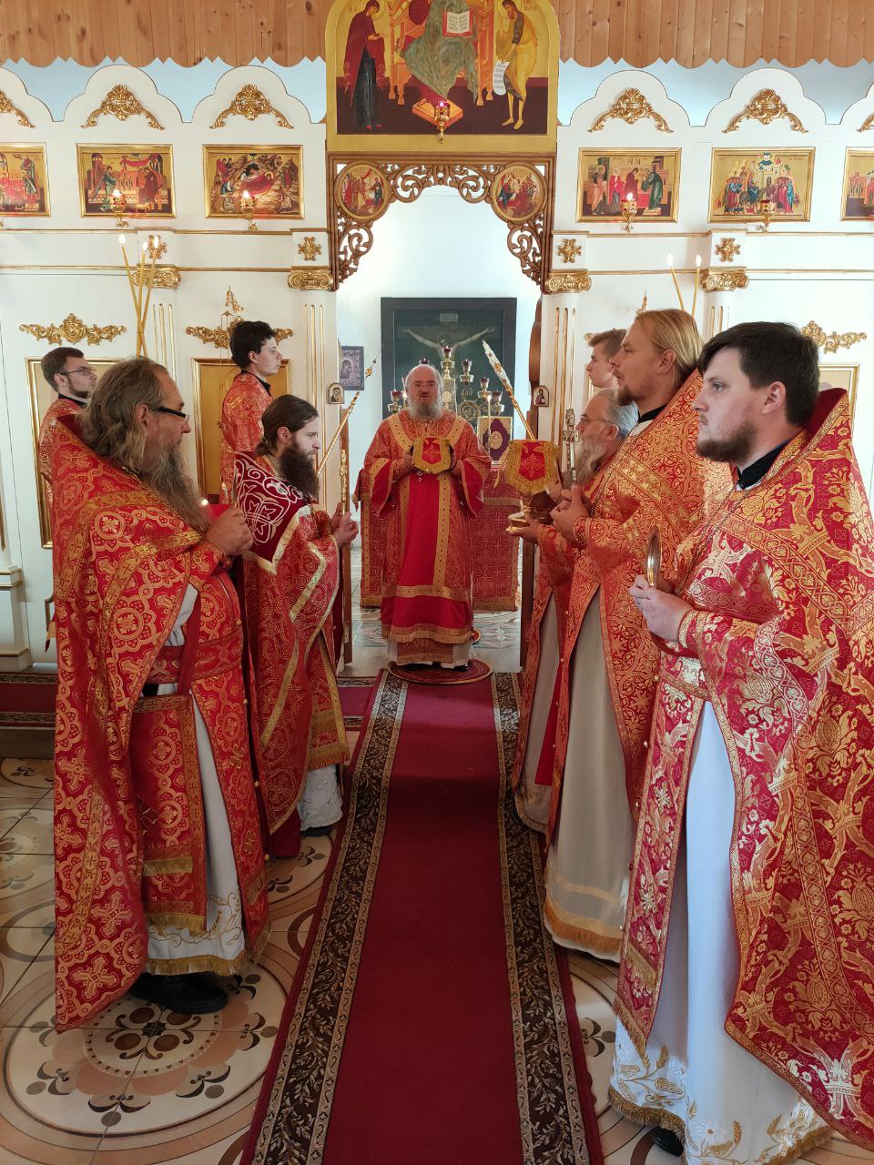 Преосвященному владыке сослужили: протоиерей Алексий Жиганов, иерей Алексий Ефименков – благочинный округа, иерей Сергий Барыкин, иеромонах Сергий (Тимофеев) – настоятель храма, иерей Иоанн Майоров, диакон Евгений Ковригин и иеродиакон Лука (Старостин).