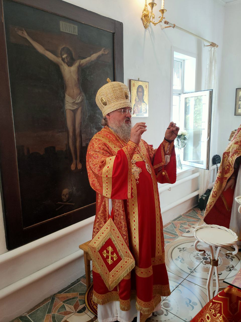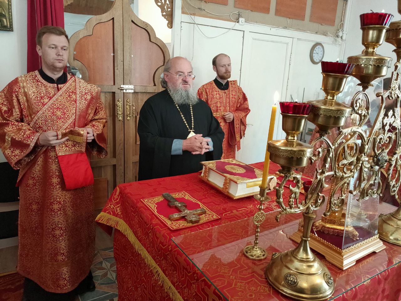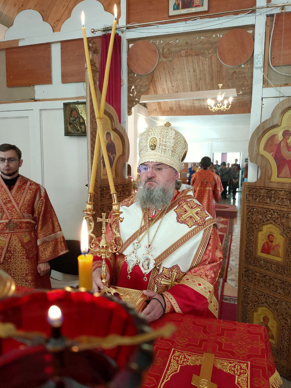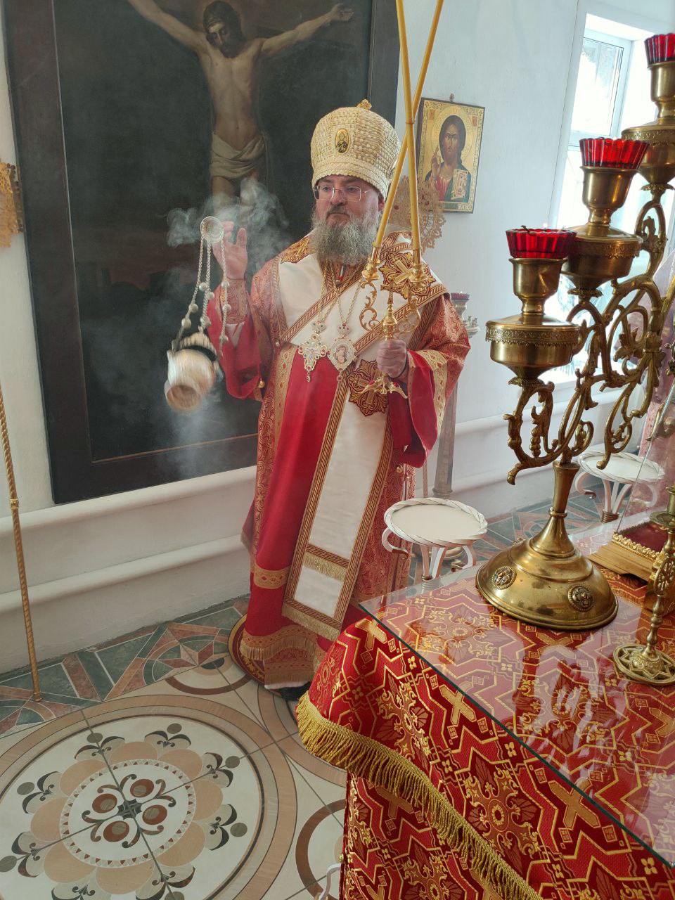 Преосвященному владыке сослужили: протоиерей Алексий Жиганов, иерей Алексий Ефименков – благочинный округа, иерей Сергий Барыкин, иеромонах Сергий (Тимофеев) – настоятель храма, иерей Иоанн Майоров, диакон Евгений Ковригин и иеродиакон Лука (Старостин).