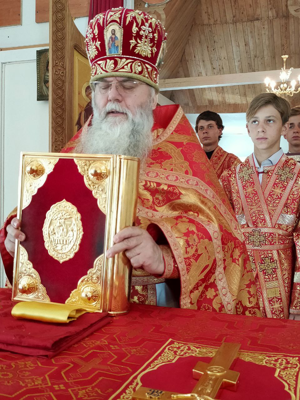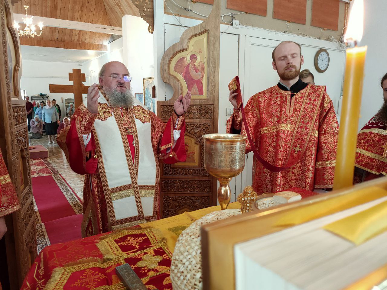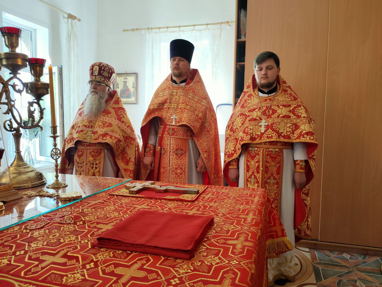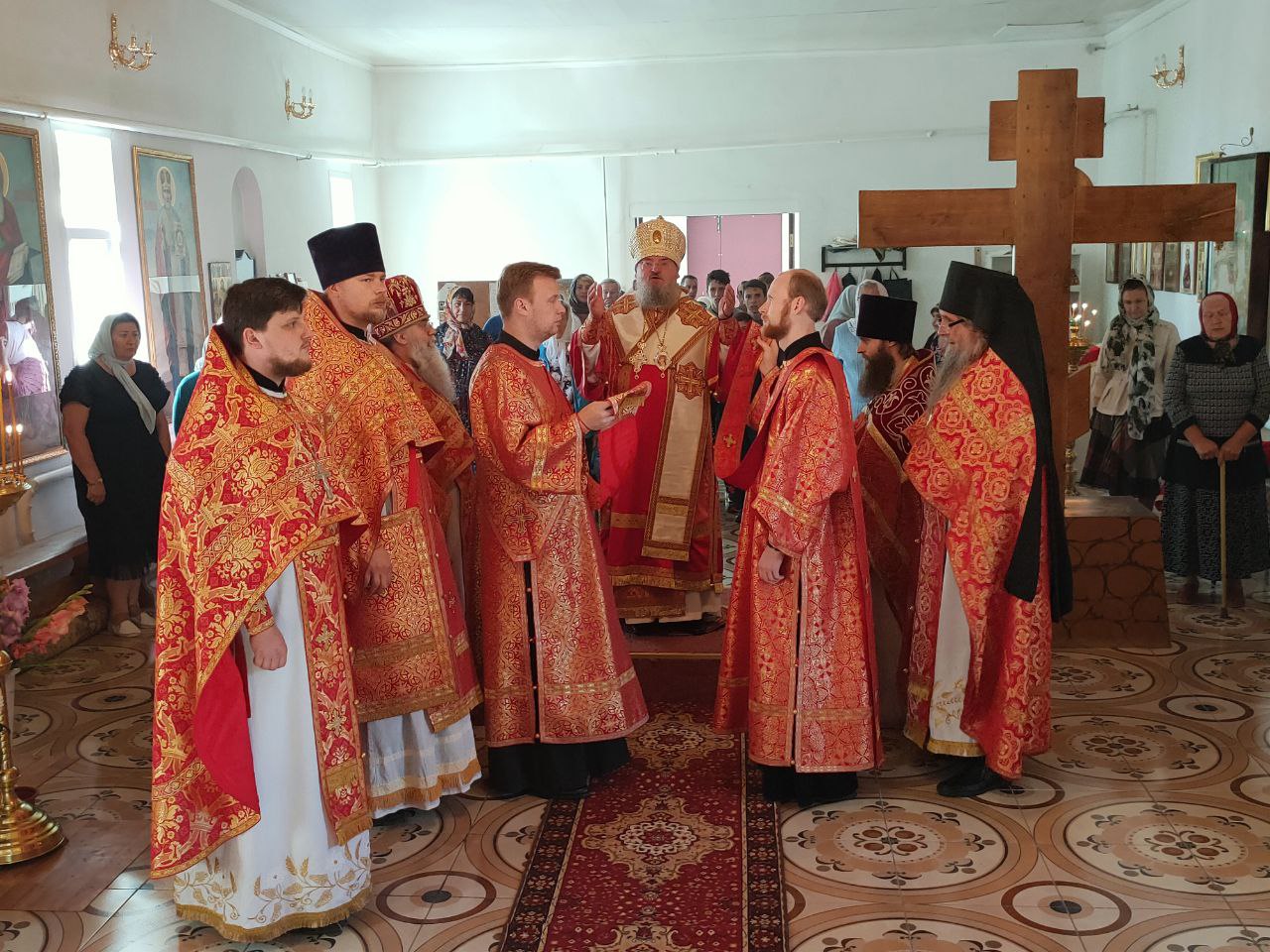 Преосвященному владыке сослужили: протоиерей Алексий Жиганов, иерей Алексий Ефименков – благочинный округа, иерей Сергий Барыкин, иеромонах Сергий (Тимофеев) – настоятель храма, иерей Иоанн Майоров, диакон Евгений Ковригин и иеродиакон Лука (Старостин).