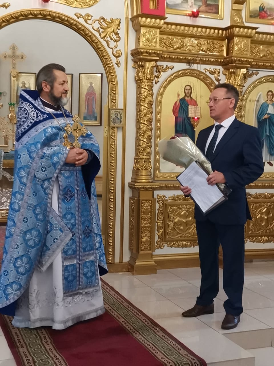 Многое было сделано Вами за годы пастырского служения в Думиничском районе Калужской области. Вашему попечению была вверена забота о строительстве храм в п. Думиничи и именно Вашими трудами был воздвигнут сей великолепный храм. Являясь настоятелем храма, Вы ревностно и с любовью исполняете пастырский долг, Вы прилагаете немало усилий к тому, чтобы приход хранил «единство духа в союзе мира» (Еф. 4, 3).