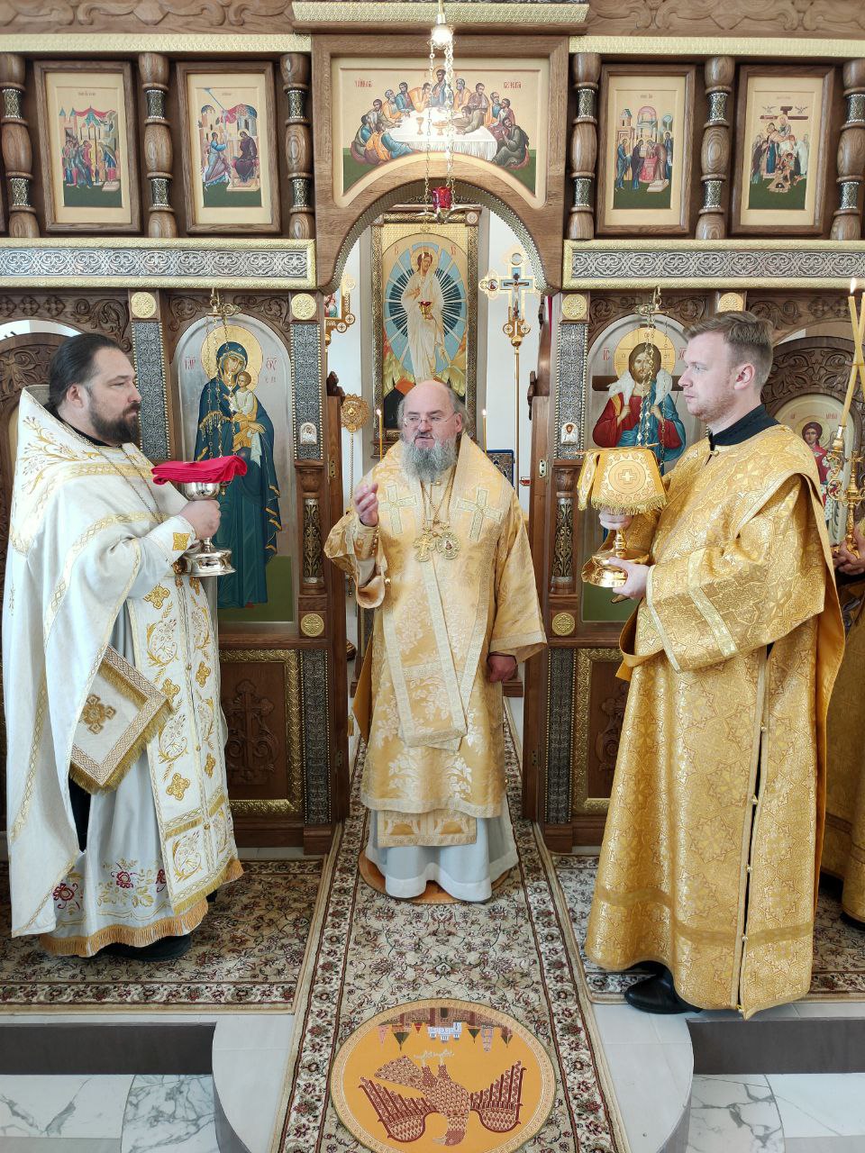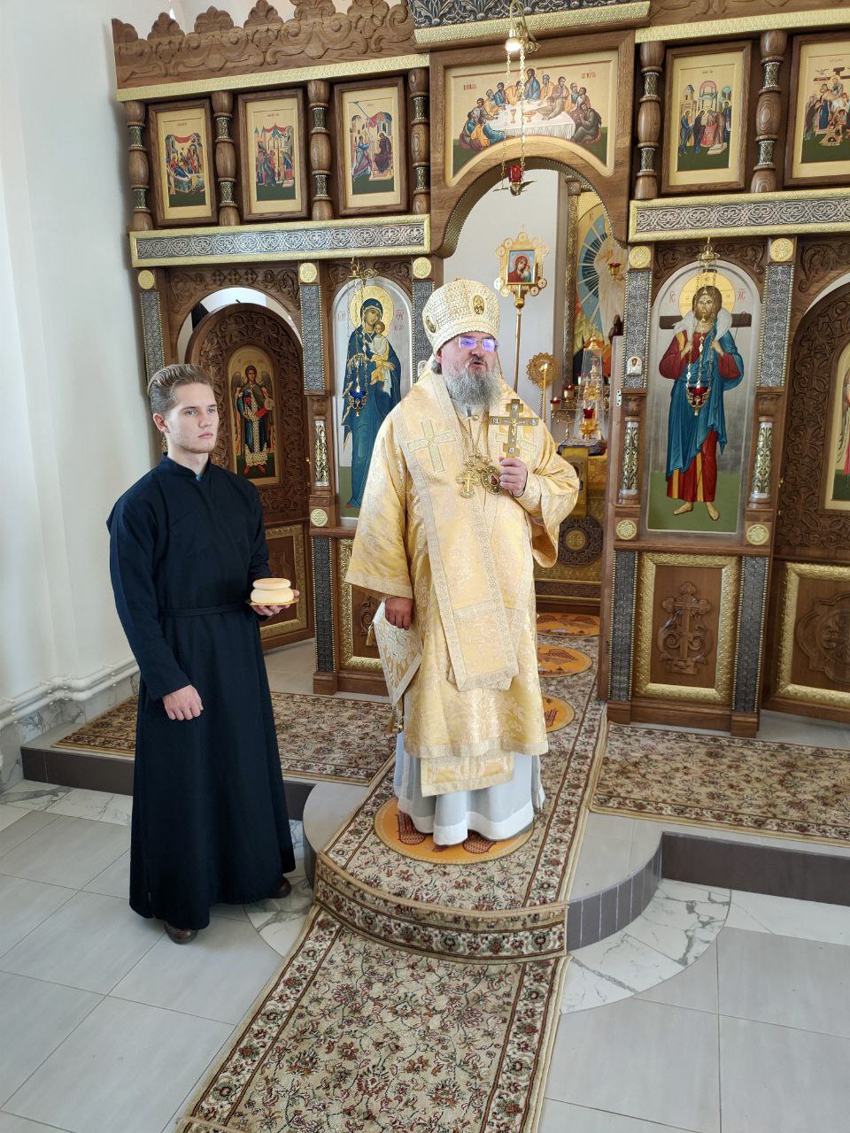 Преосвященному владыке сослужили: протоиерей Владимир Бахаев – благочинный округа, протоиерей Антоний Хатунцев, диакон Евгений Ковригин и иеродиакон Лука (Старостин).
