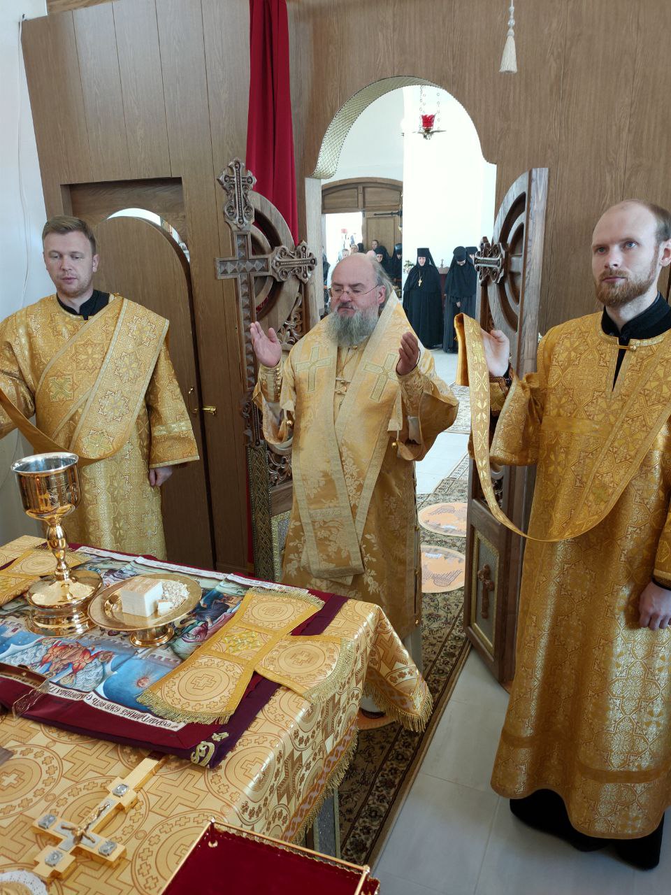 Епископ Козельский и Людиновский Никита совершил Чин малого освящения храма и первую Божественную литургию в северном приделе в честь Рождества Пресвятой Богородицы Успенского соборного храма женского монастыря Успенская Феклина пустынь в селе Сенино Козельского района.