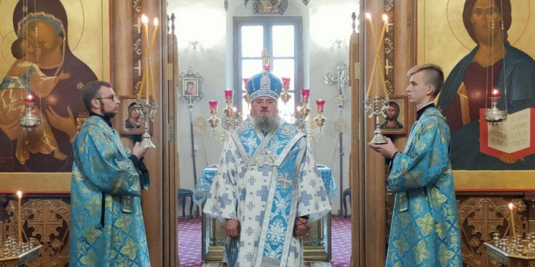 20 сентября епископ Козельский и Людиновский Никита совершил всенощное бдение великого двунадесятого праздника Рождества Пресвятой Богородицы в Успенском кафедральном соборе города Козельска.