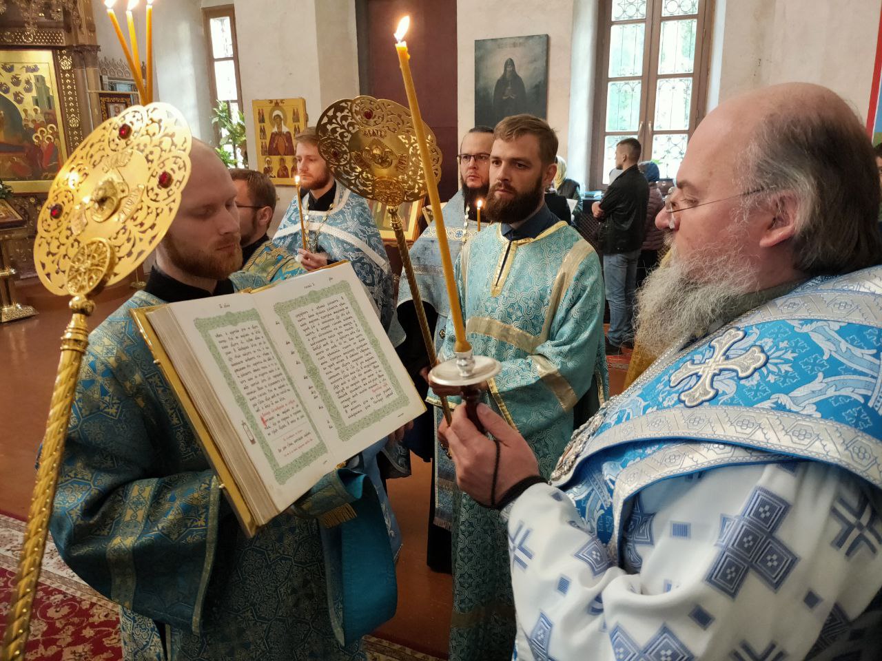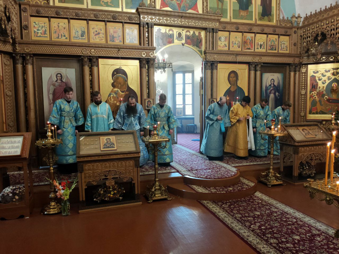Архипастырю сослужили: протоиерей Антоний Хатунцев, иеромонах Паисий (Курмаз) – настоятель собора, иерей Елисей Тимофеев, иерей Филипп Лисенков, диакон Евгений Ковригин, диакон Дмитрий Лутков, иеродиакон Виталий (Павленко) и иеродиакон Лука (Старостин).