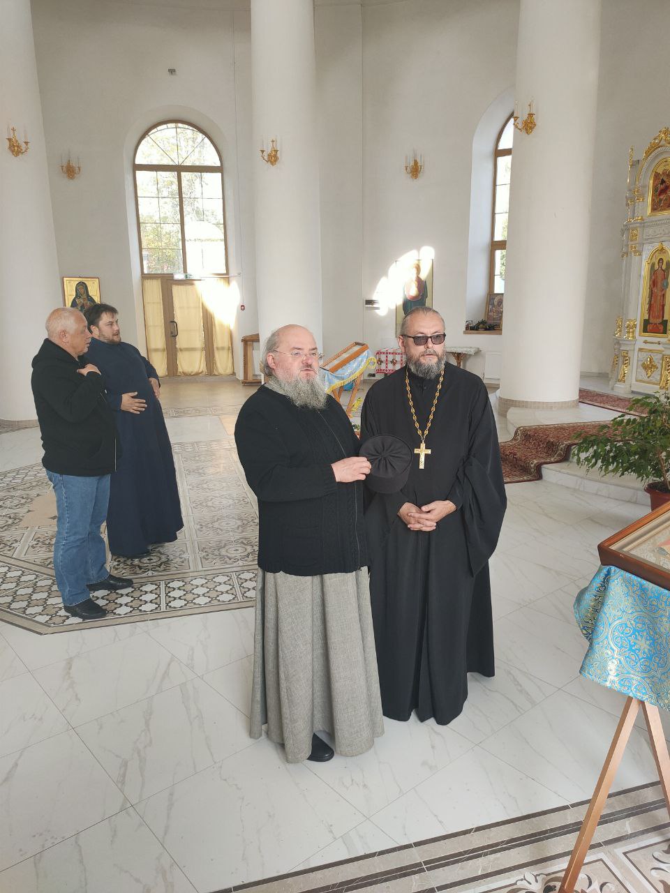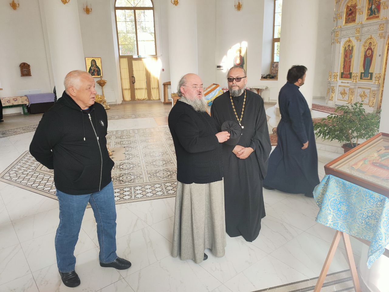 Владыку сопровождали ктитор храма Юрий Алексеевич Ширманкин и ответственный за строительство священник Дмитрий Гаврилов.