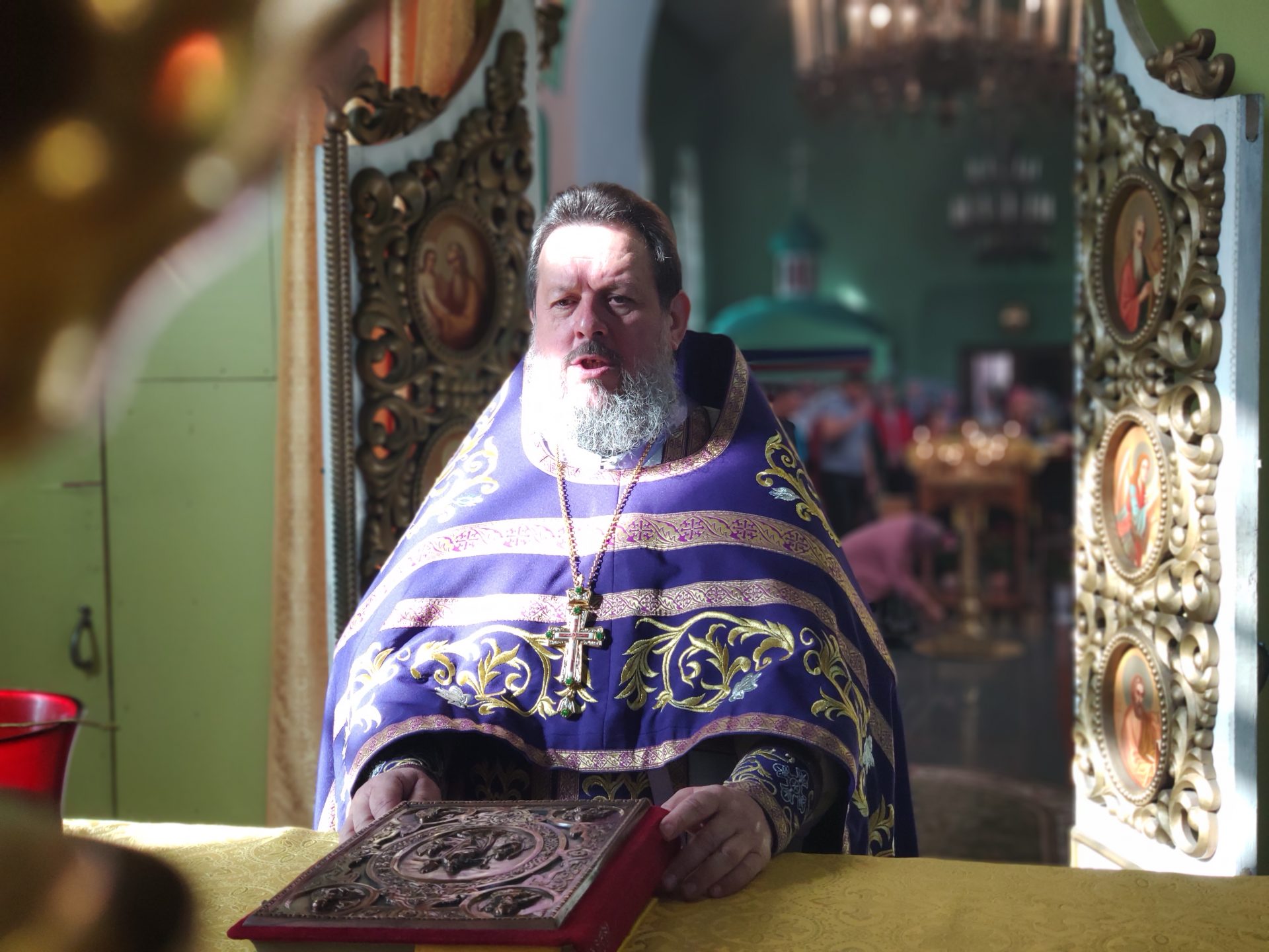В завершении службы отец Василий в своей проповеди поздравил всех прихожан с праздником, рассказал об его истории. «Сегодня мы празднуем Воздвижение Честного и Животворящего Креста Господня. Святая равноапостольная царица Елена отправилась в дальний путь из Константинополя в Иерусалим для того, чтобы обрести Честной и Животворящий Крест Господень. Она предприняла исследования и раскопки для того, чтобы найти Крест. И Господь увенчал успехом её труды. Она нашла Древо Креста. А святитель Макарий, патриарх Иерусалимский, воздвиг Честной Крест, для того чтобы все могли видеть это Священное Древо. Мы поклоняемся не дереву, не материалу. Мы поклоняемся не форме, не соотношению перекладин. Мы поклоняемся орудию нашего спасения. Давайте возьмём свой крест так, как Господь нас призывает: “Если кто хочет идти за Мною, отвергнись себя, и возьми крест свой, и следуй за Мною”. Бог зовёт нас взять свой крест, то есть наши скорби, болезни, тяготы греховные, несчастья, – взять и нести их, не отказываясь от этой ноши. И вот, с благоговением взирая сегодня на Крест Господень, вспомним, что мы благословляем не только Тот Крест, Который предлежит нам на аналое, но прежде всего – свой собственный крест. Вот мы сейчас собрались в храме и этим как бы говорим Господу: “Господи, всё, что Ты посылаешь нам, всё нам во спасение: и радость, и горе, и болезнь, и обида, и счастье, и оскорбления ближних, и изобилие плодов земных, и насмешка, – всё это нам во спасение. Всё это может стать способом нашего спасения. Дай нам только сил правильно понять это, дай нам сил не отказаться от креста, дай нам сил принять Крест Твой, чтобы прославиться с Тобою во Царствии Твоём.»