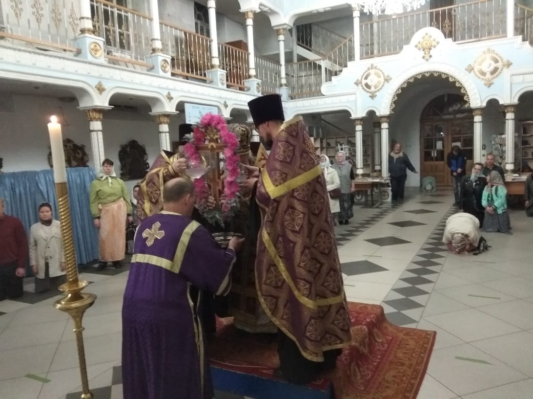 По окончании богослужения протоиерей Алексий Жиганов обратился к верующим с пастырским словом. Отец Алексий поздравил с праздником, пожелал верующим твердости и решимости в исполнении заповедей, а также помощи Божией в борьбе со страстями.