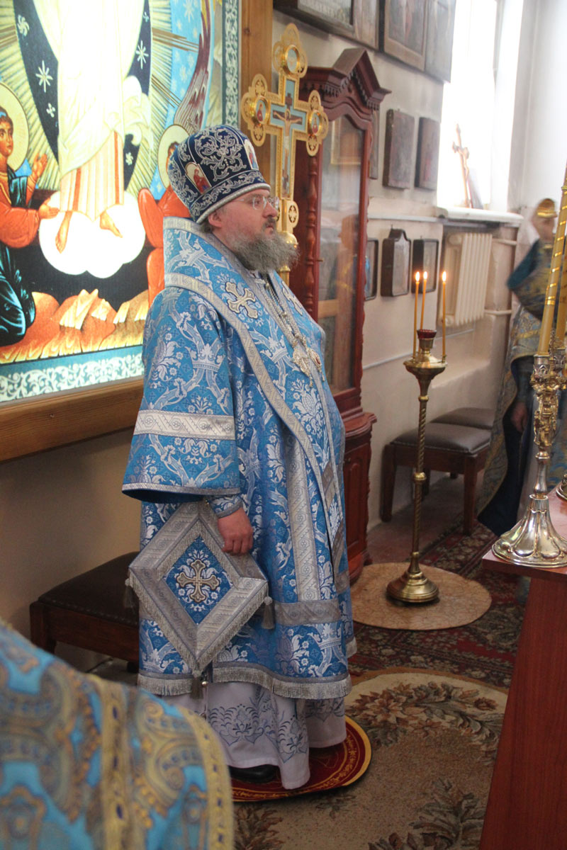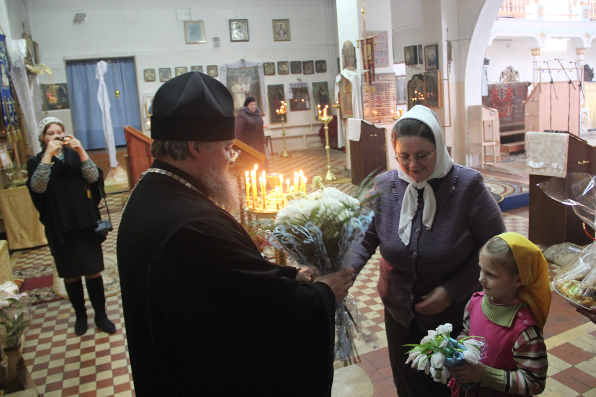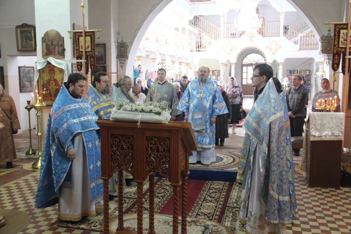 После отпуста литургии священнослужители совершили славление пред чудотворным образом Пресвятой Богородицы, а затем владыка поздравил молящихся с праздником и произнес проповедь.