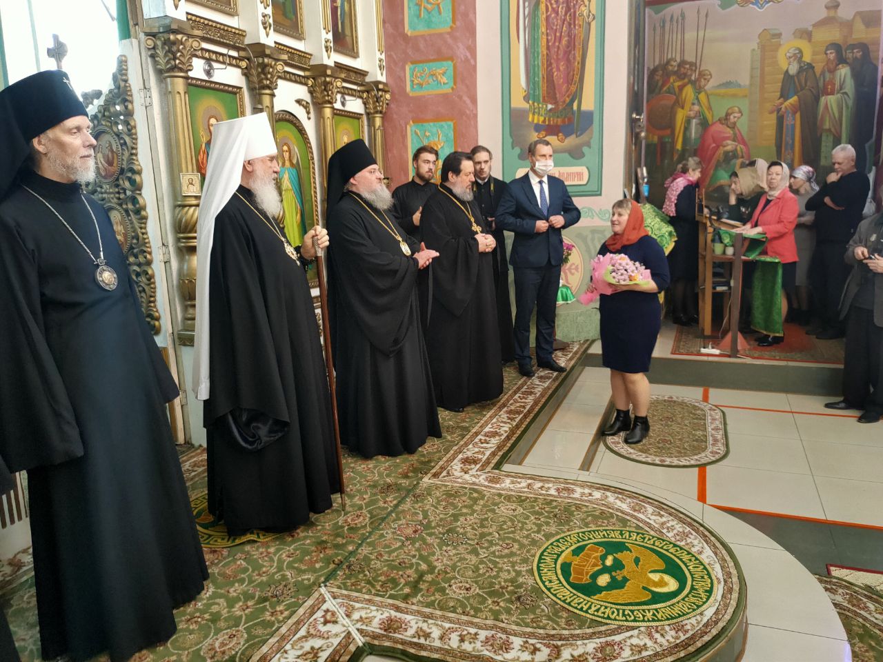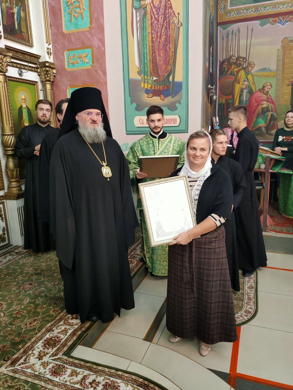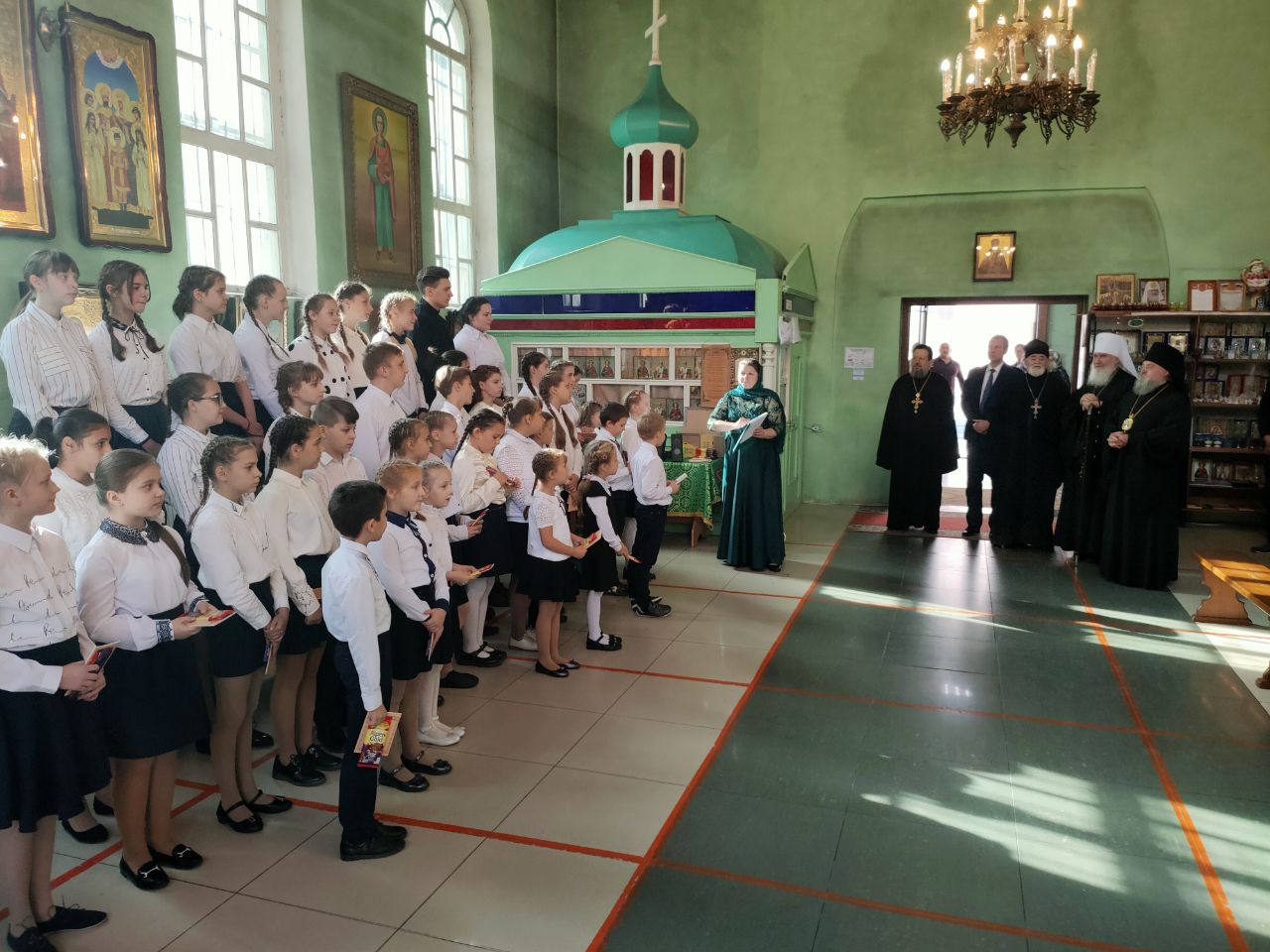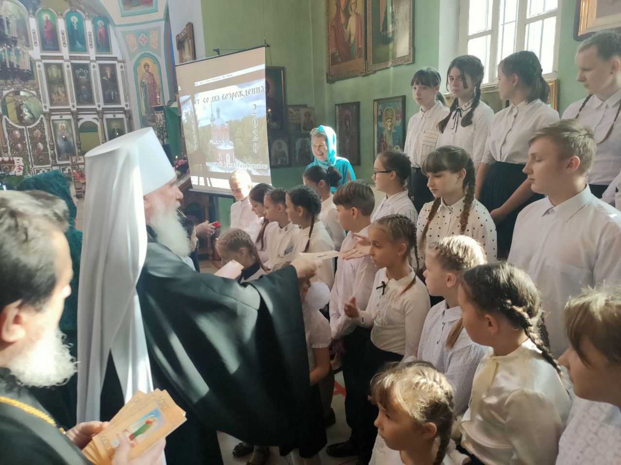 В ответном слове руководитель школы и ученики поблагодарили архипастырей за внимание к храму, теплые слова и подарили подарки выполненные руками детей.