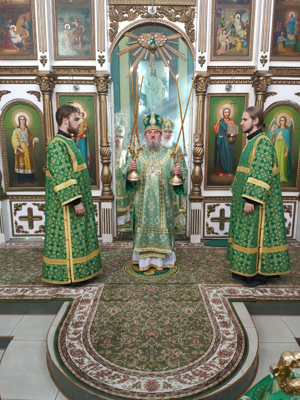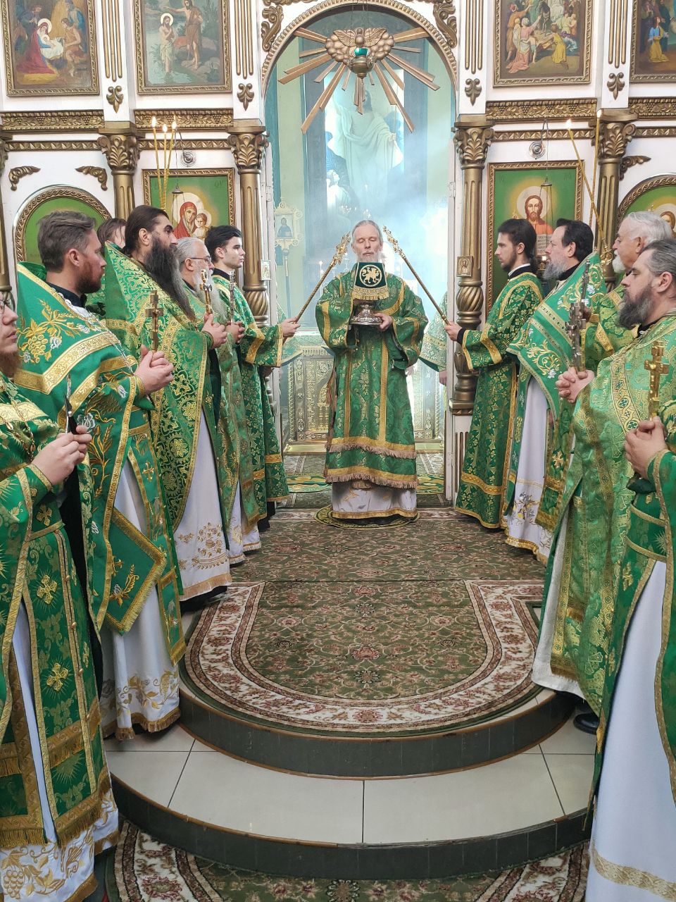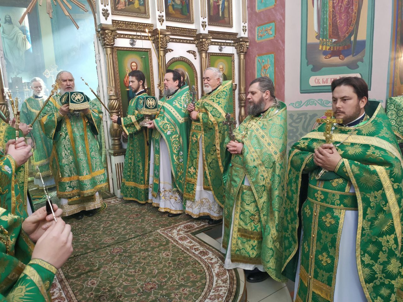 Праздничную Божественную литургию совершил митрополит Калужский и Боровский Климент в сослужении архиепископа Песоченского и Юхновского Максимилиана, епископа Козельского и Людиновского Никиты, епископа Тарусского Иосифа. Архипастырям сослужили: благочинный  округа, настоятель храма преподобного Сергия Радонежского города Людиново протоиерей Василий Биляк, наместник мужского Спаса Нерукотворного монастыря в селе Клыково игумен Михаил (Семенов), настоятель Казанского собора протоиерей Алексий Жиганов, настоятель храма святого праведного Лазаря протоиерей Михаил Карпенко, благочинный Хвастовического округа протоиерей Александр Карпов, протоиерей Димитрий Губаль клирик храма преподобного Сергия, протоиерей Антоний Хатунцев, иерей Дионисий Лобанов, протодиакон Сергий Комаров и  диакон Евгений Васильев.
