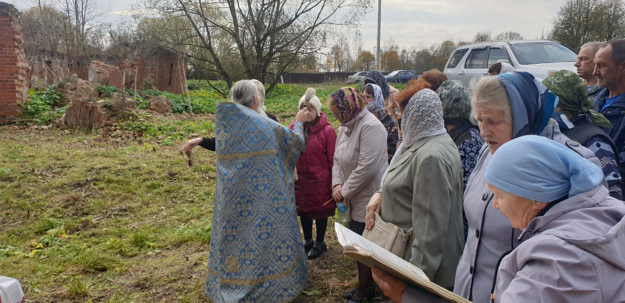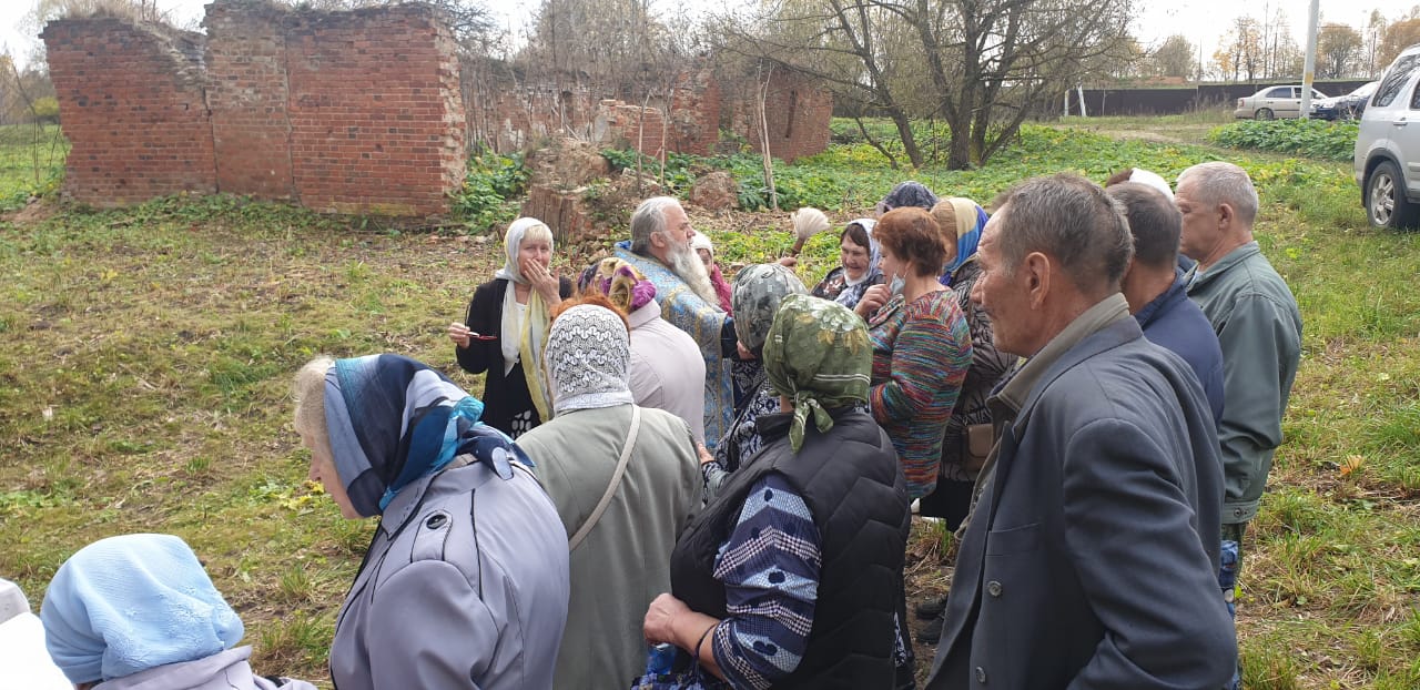 14 октября 2020 года, в Праздник Покрова Пресвятой Богородицы, после богослужений в Казанском соборе города Людиново настоятель собора протоиерей Алексий Жиганов с певчими посетил деревню Космачево Людиновского района, где на территории разрушенного храма в честь Покрова Пресвятой Богородицы совершил водосвятный молебен с акафистом.