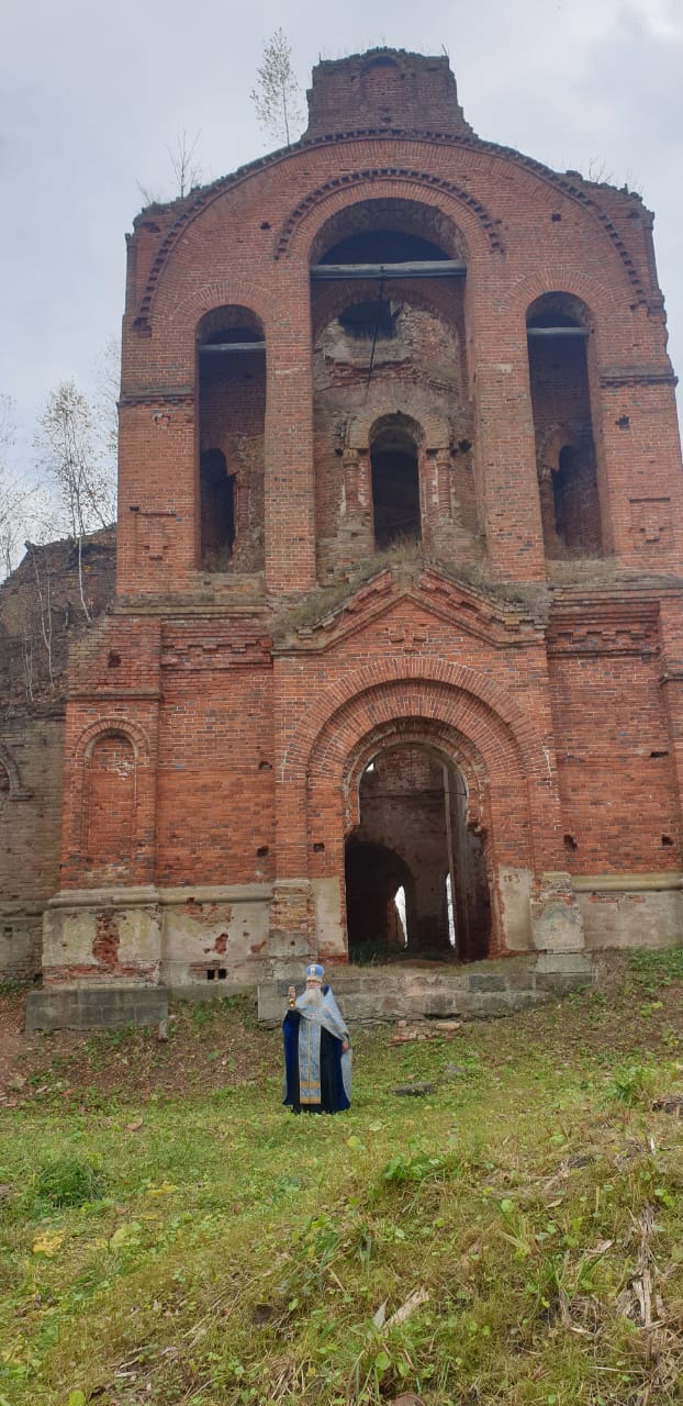 Вместо сгоревшей деревянной в 1906 году была выстроена кирпичная церковь. Здание храма сохраняется в полуразрушенном виде. Интересна архитектура колокольни, формы которой восходят к формам звонниц древнерусских храмов.