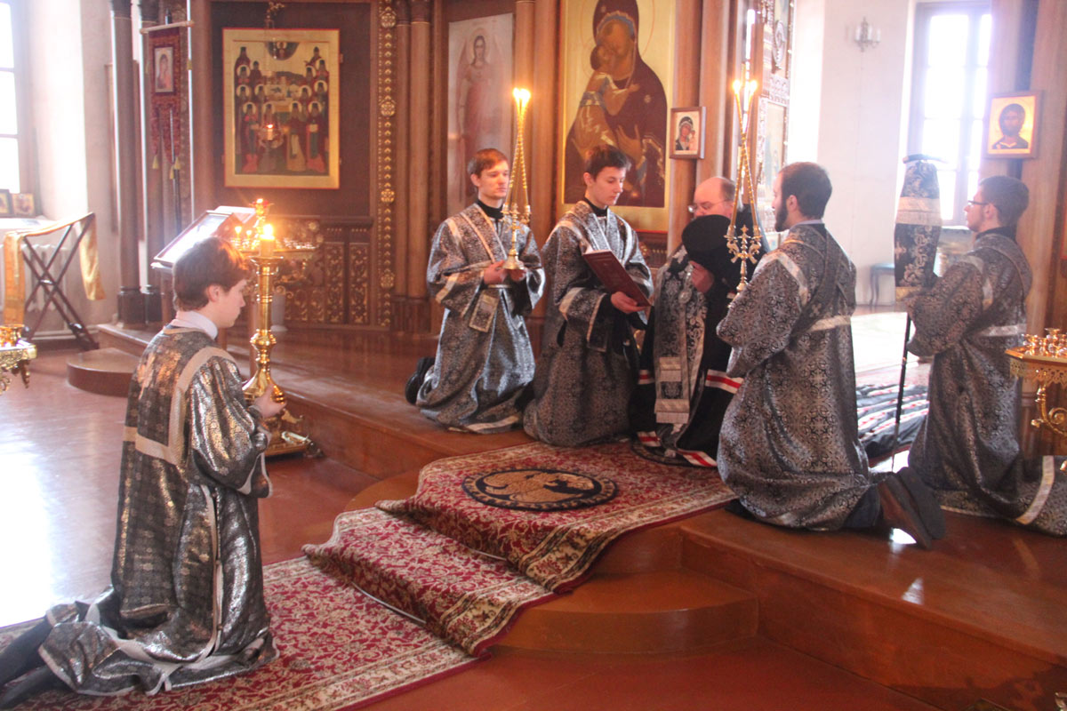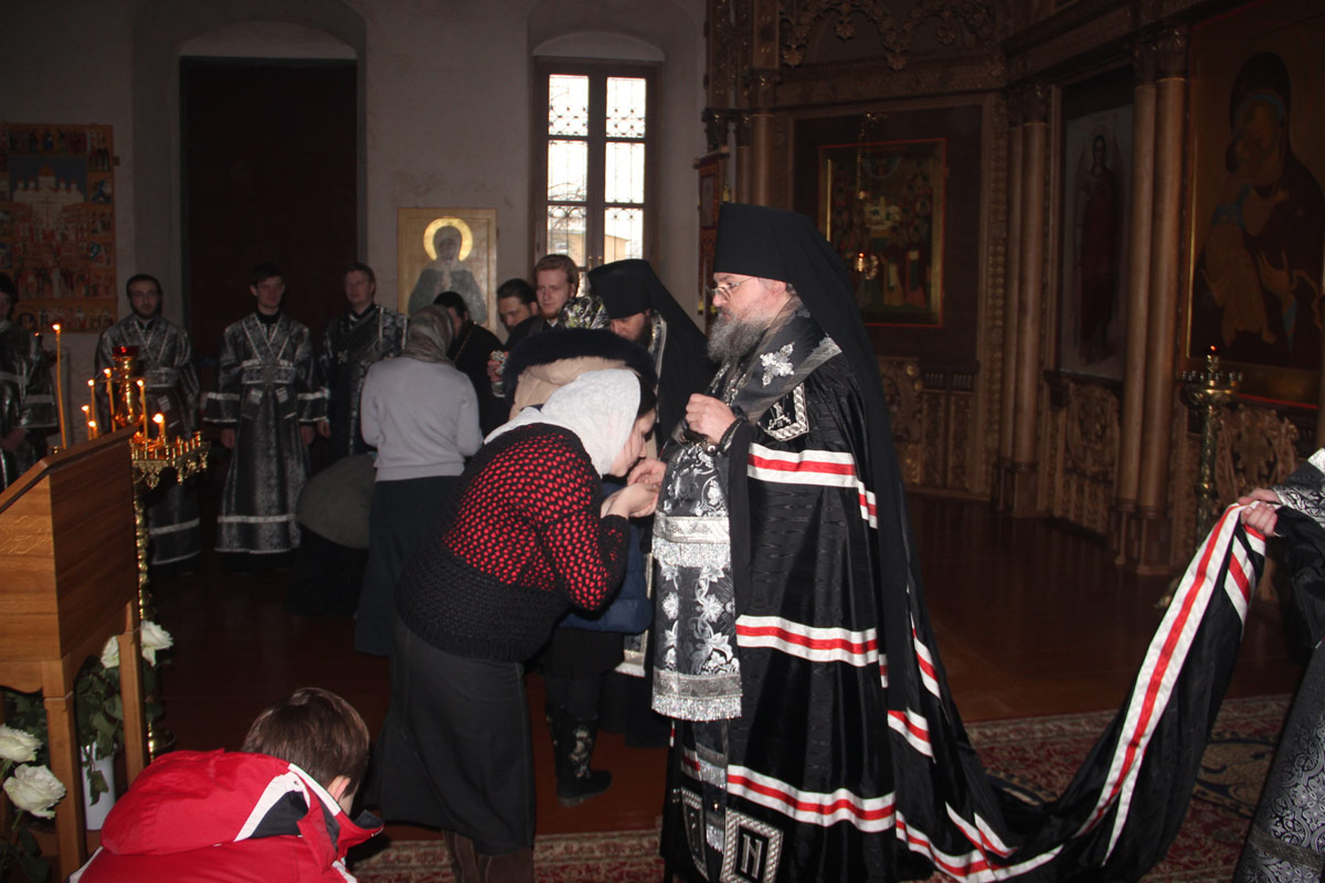 После отпуста вечерни архипастырь прочитал коленопреклонные молитвы пред началом Святой Четыредесятницы, а затем обратился к молящимся со словом назидания.