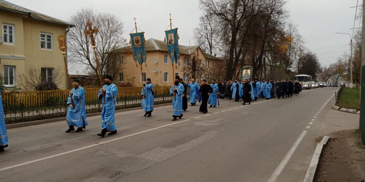 29-го октября состоялся крестный ход с Калужской иконой Пресвятой Богородицы из ставропигиального монастыря Введенская Оптина пустынь в Успенский кафедральный собор города Козельска.