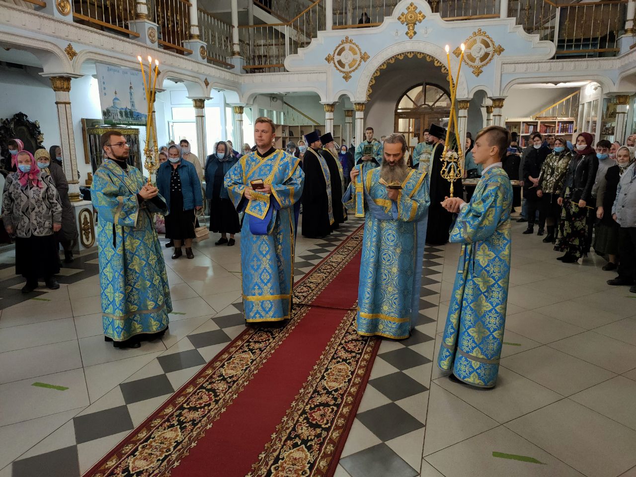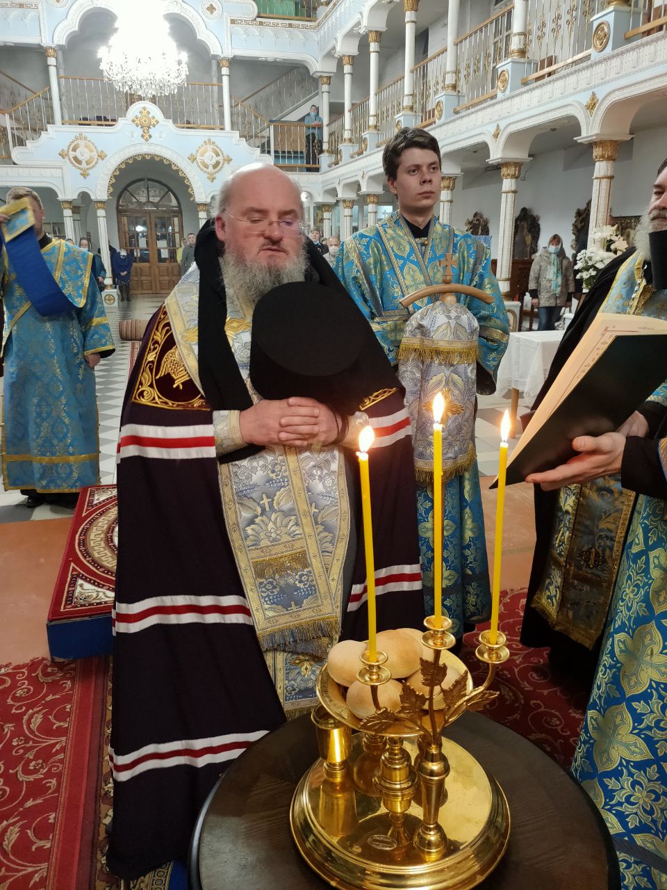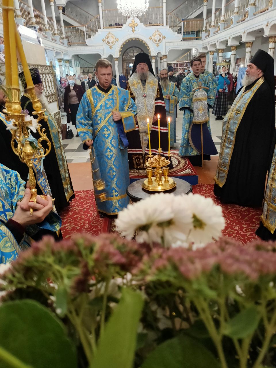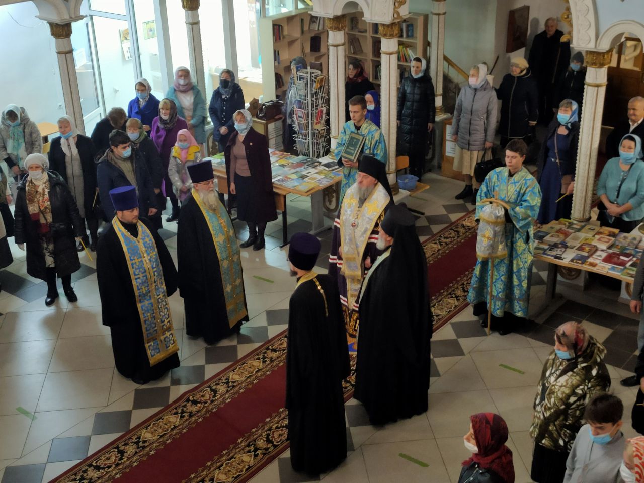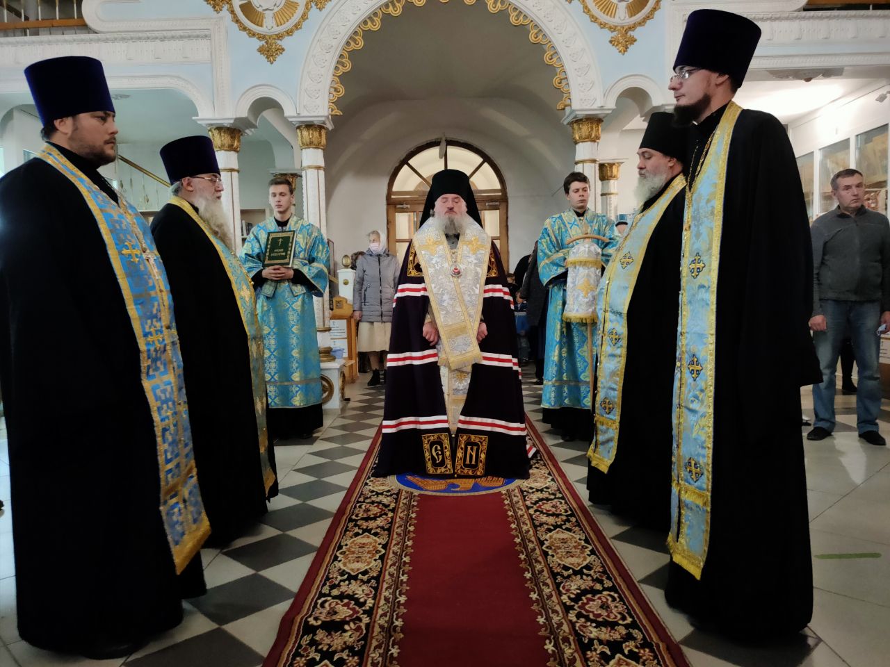 Преосвященному архипастырю сослужили: духовник епархии, настоятель собора, митрофорный протоиерей Алексий Жиганов, иеромонах Василий Лукашев, протоиерей Антоний Хатунцев, иерей Алексий Сначев, диакон Евгений Ковригин и диакон Андрей Соколов.