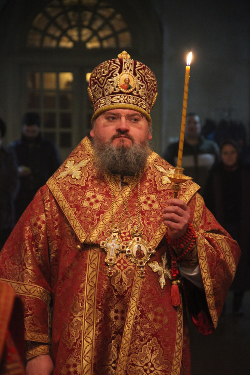 1 марта. Неделя первая Великого Поста. Торжество Православия. Управляющий Козельской епархией епископ Козельский и Людиновский Никита совершил всенощное бдение и Божественную литургию в Свято-Успенском кафедральном соборе города Козельска.